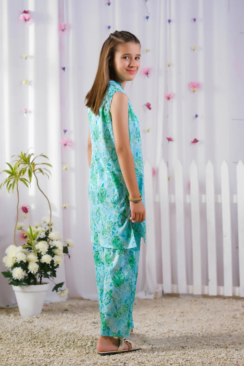 Embrace the allure of the sea with the "Turquoise" ensemble, featuring a captivating print of blue and green sea turtles designed for girls. This outfit captures the mesmerizing beauty of turquoise waters, where hues of blue and green blend seamlessly. With buttons delicately adorning the neckline, the "Turquoise" exudes elegance and charm. Each sea turtle print invites wearers to embark on underwater escapades, discovering the mysteries of the ocean. Whether paired with shorts for a day of beachside fun or layered with leggings for a casual outing, the "Turquoise" promises to inspire dreams of coastal adventures and aquatic wonders.
