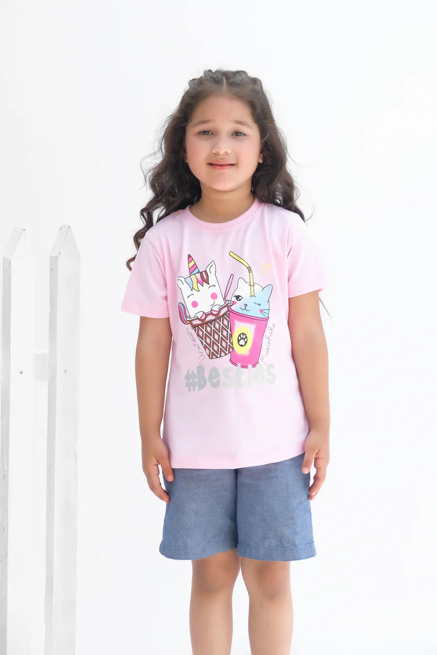 Home Unicorn # Besties - Half Sleeves T-Shirts For Kids - Light Pink
