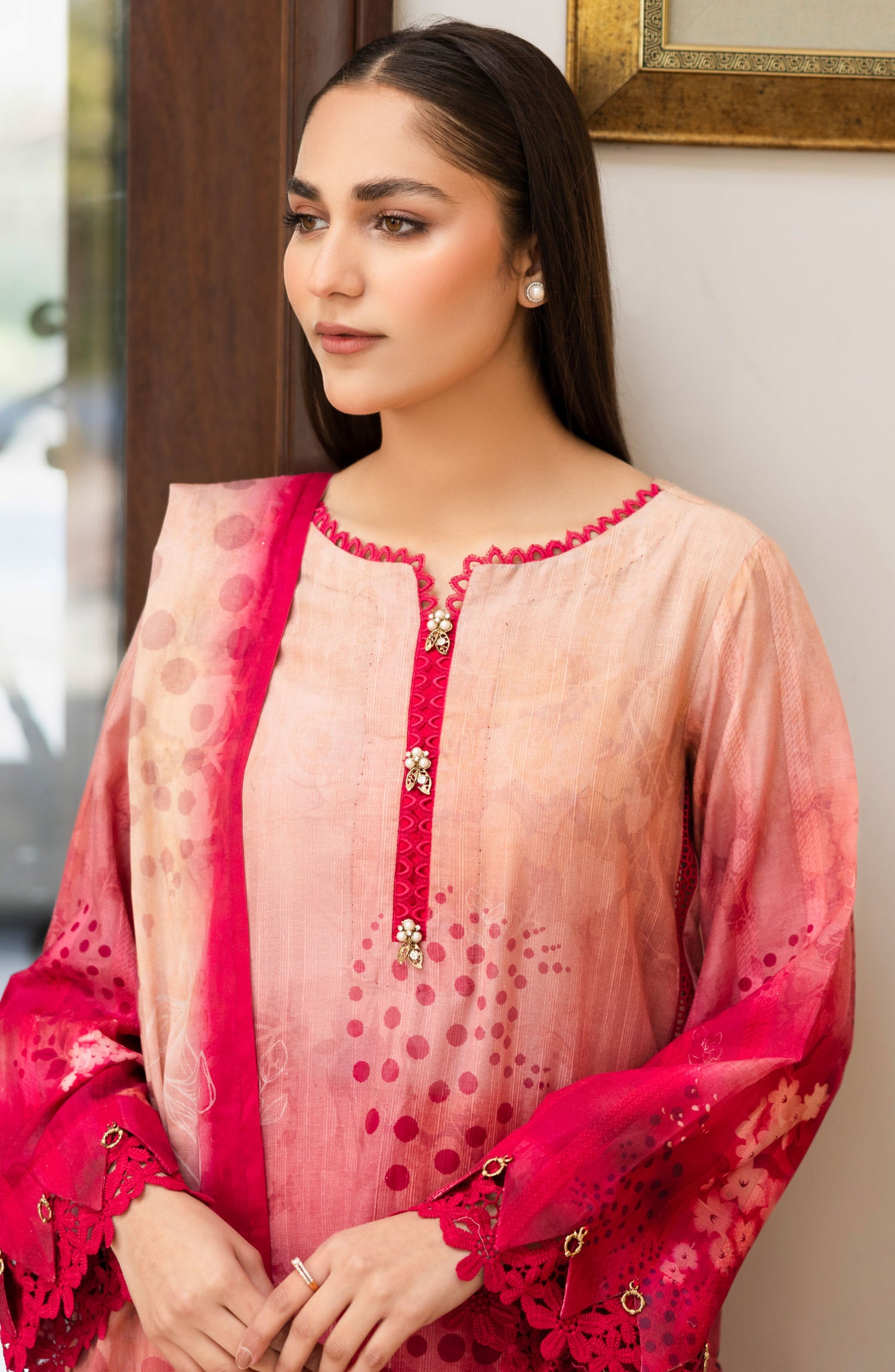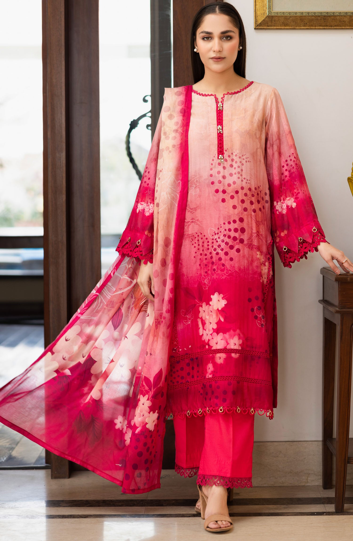 Home Ushna by Johra Embroidered Lawn Unstitched 3 Piece Suit - JH-214 - JH25UL - Pink - Summer Collection