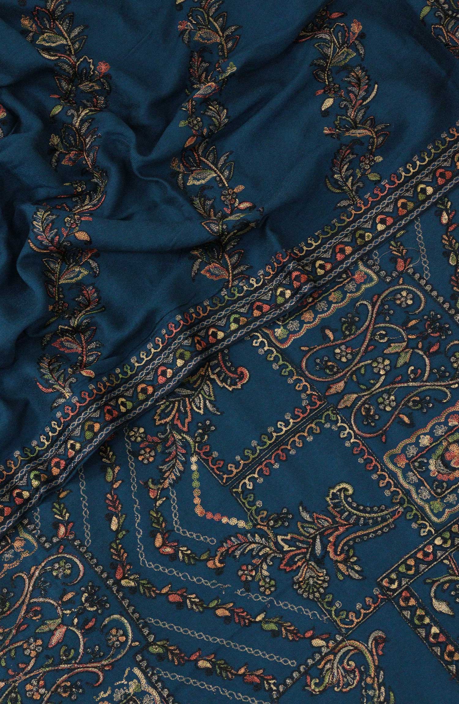Embroidered wool shawl