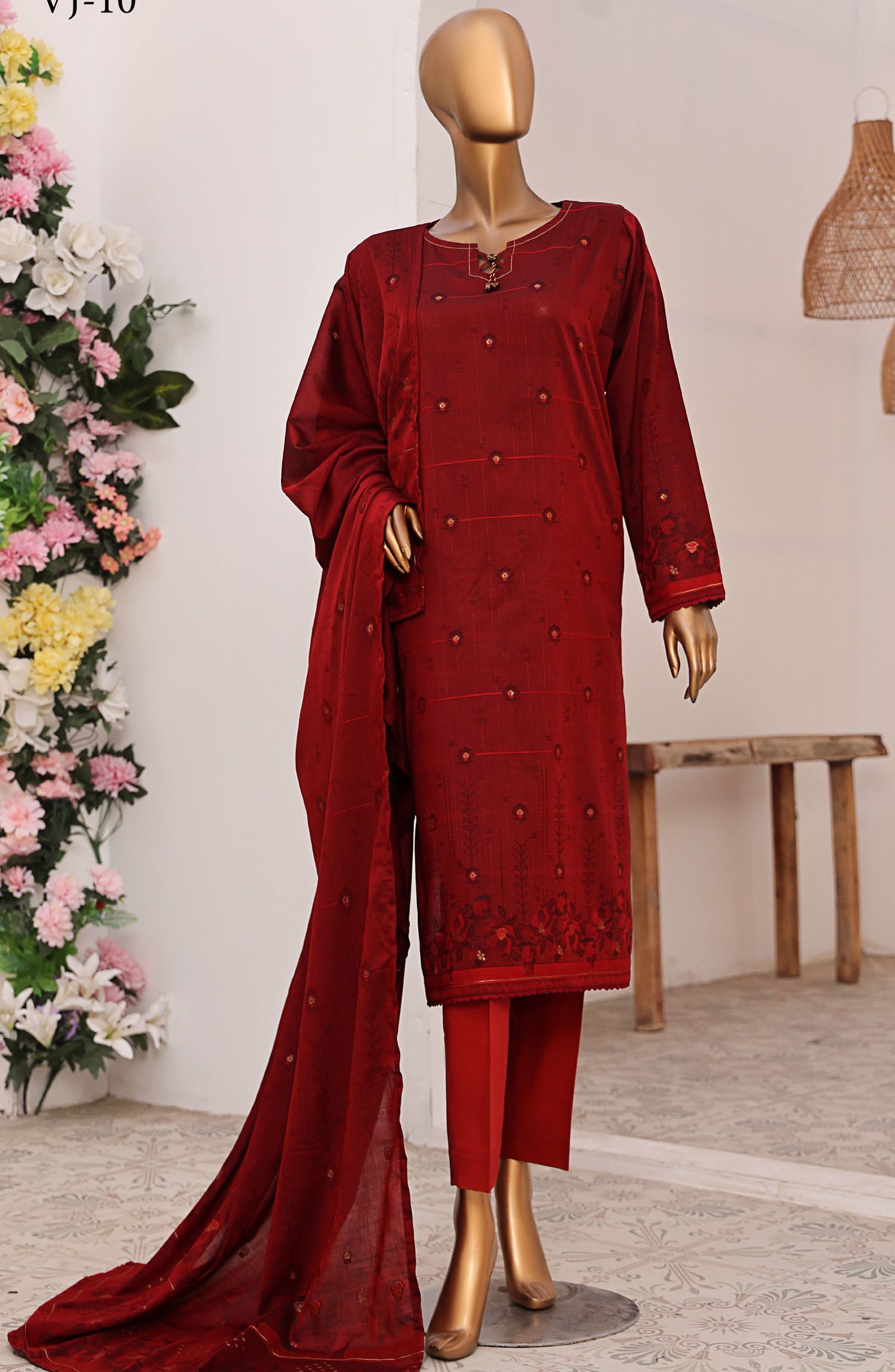 Valencia by HZ Textile Printed Jacquard Unstitched 3 Piece Suit - VJ-10 - HZ25VJ - Red - Summer Collection
