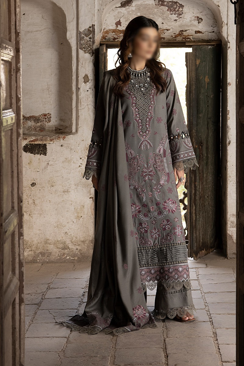 Rua by Casual Lite Embroidered Premium Linen Stitched 3 Piece Suit - D-03 Shadow Bloom - CL25RU - Black - Winter Collection