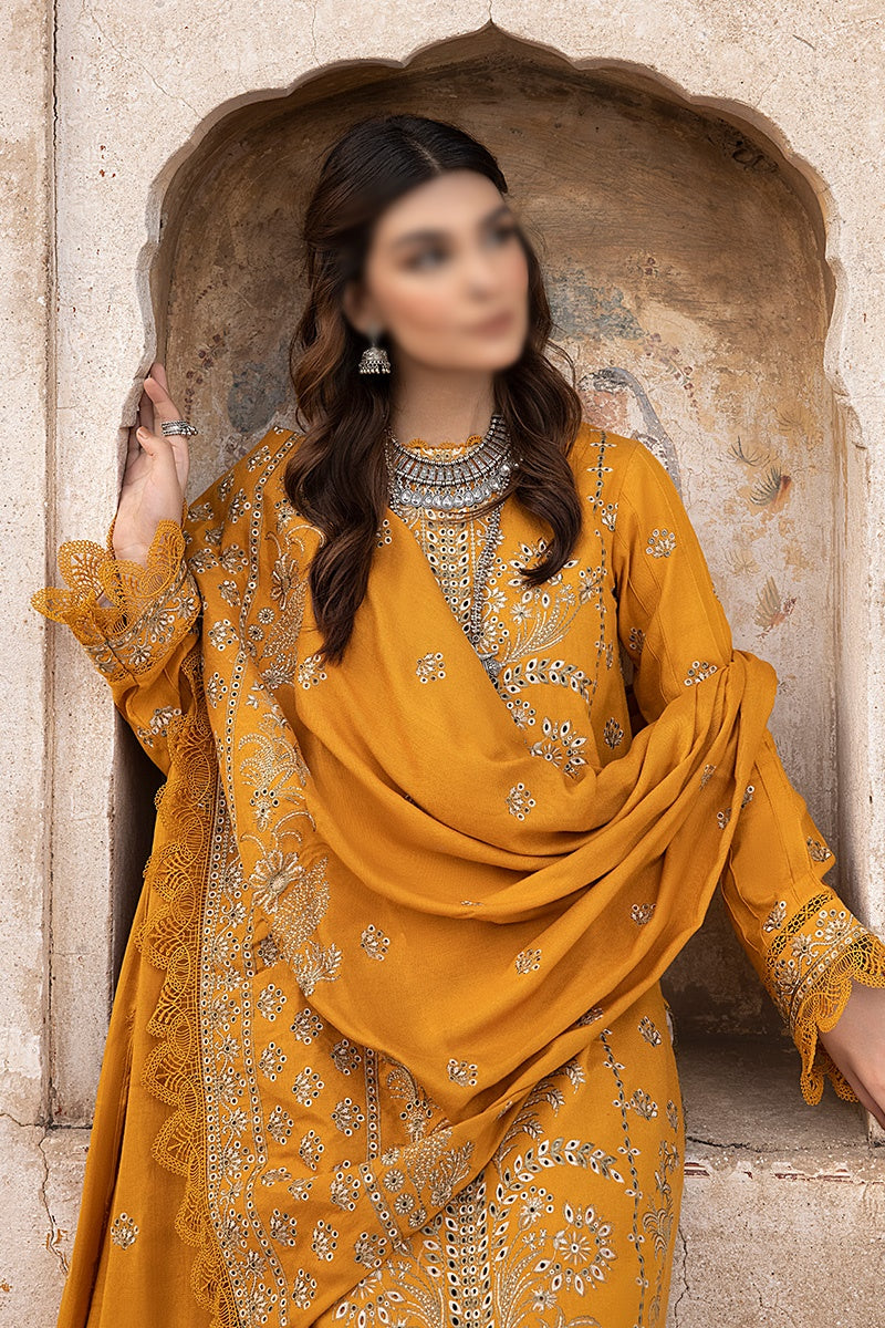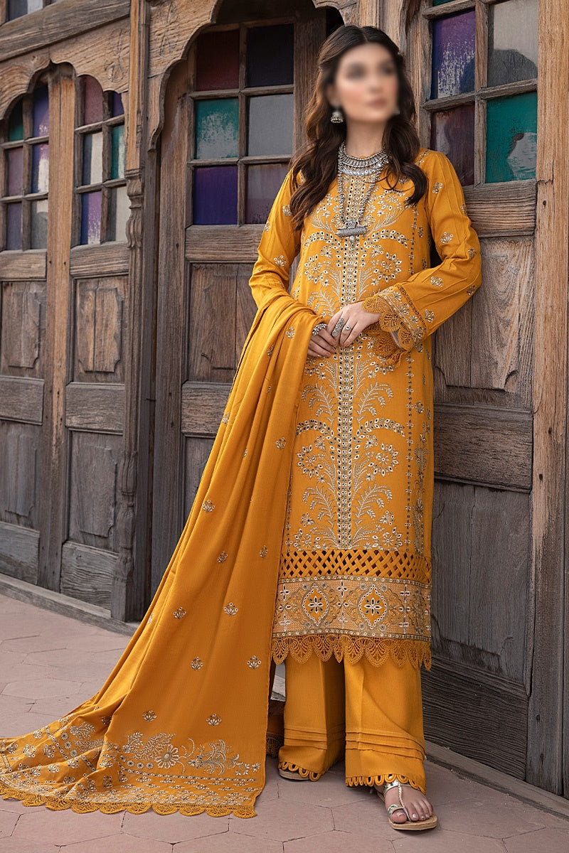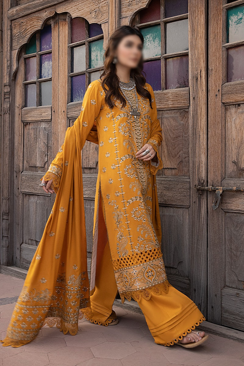 Modest Embroidered Chiffon Stitched 3 Piece Suit - 9840-Cblu - MOD25PRF - Blue - Festive Girls Collection