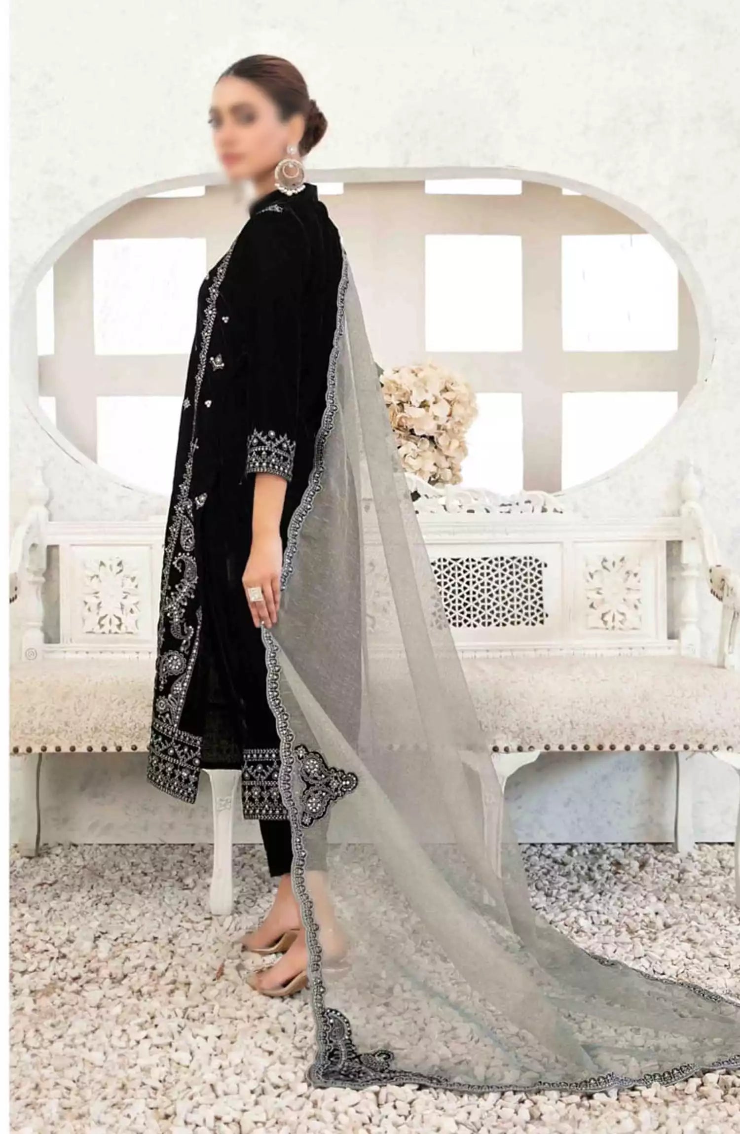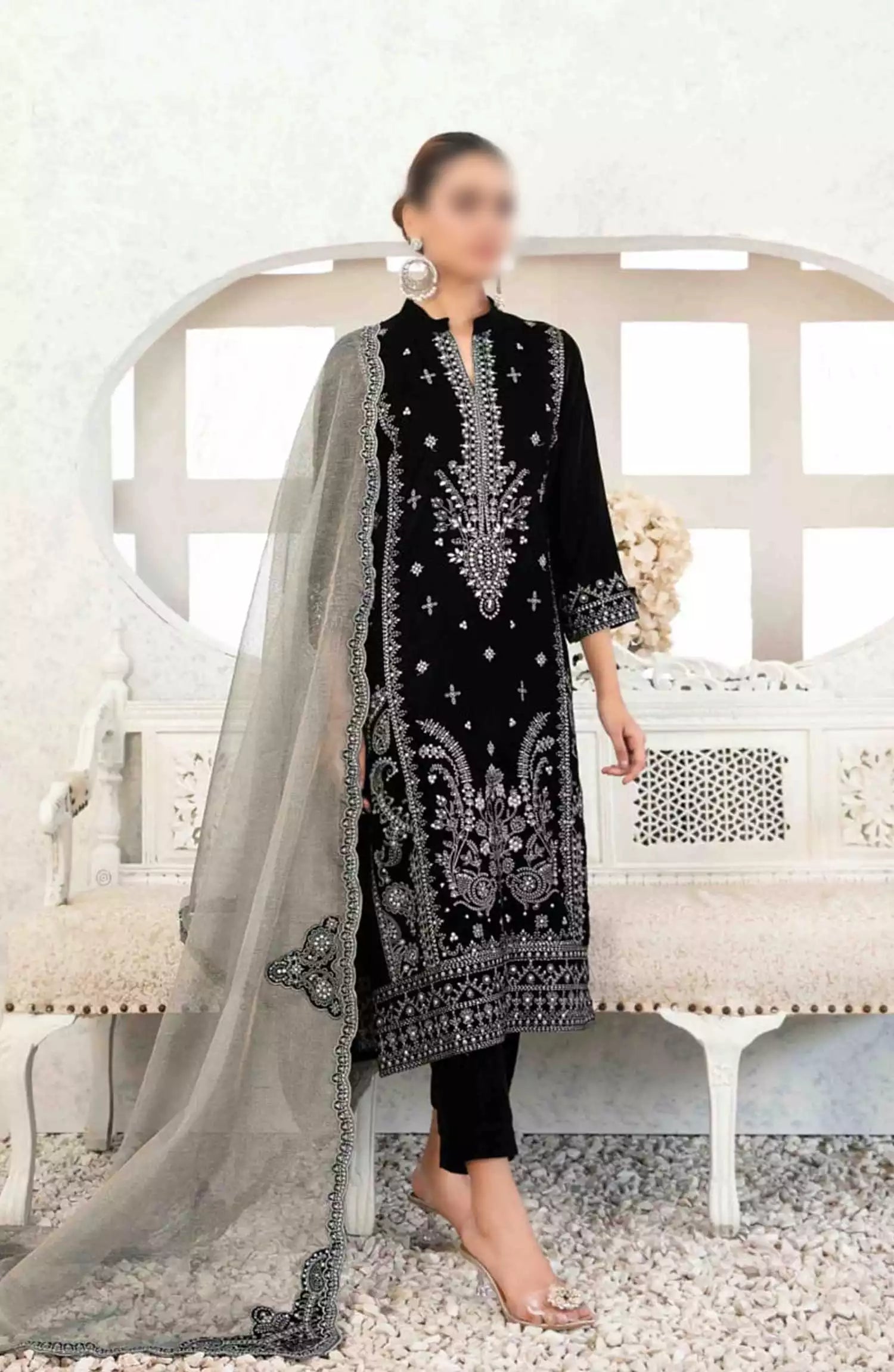 Un-Stitched Fancy Heavy Embroidered Velvet Shirt with Exclusive Embellishments
