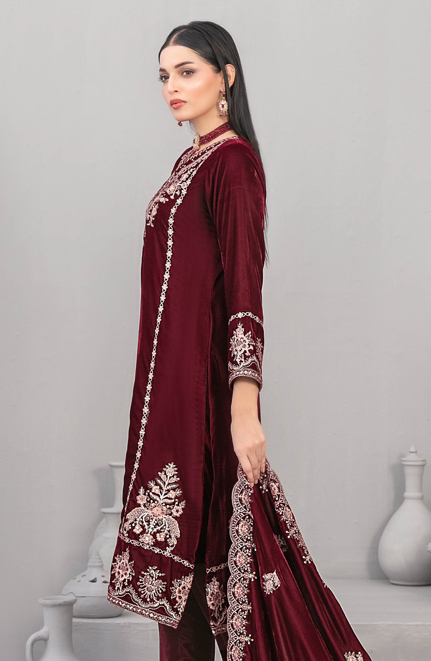 Luxury Embroidered Velvet Unstitched 3 Piece Suit