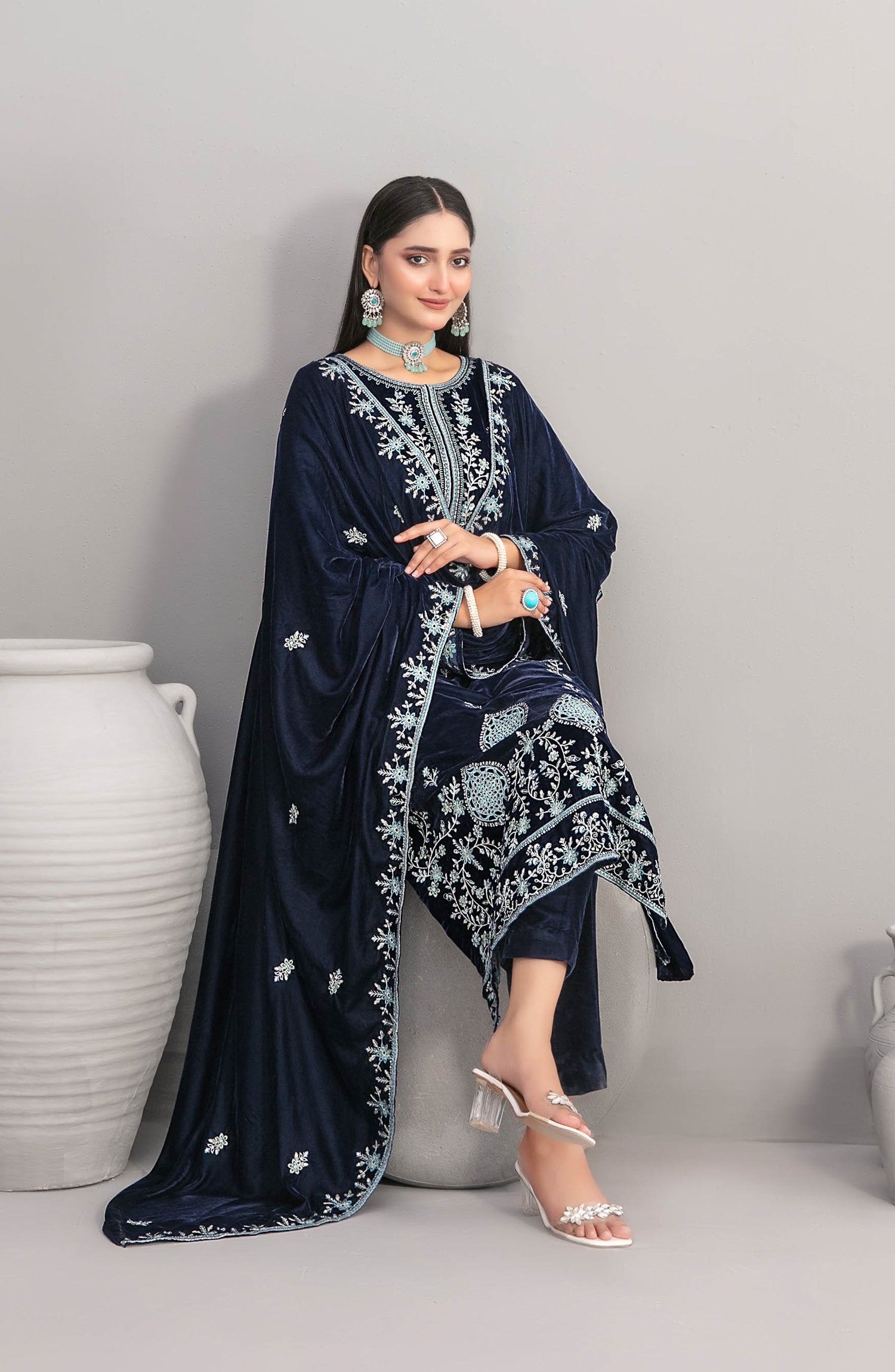 Luxury Embroidered Velvet Unstitched 3 Piece Suit