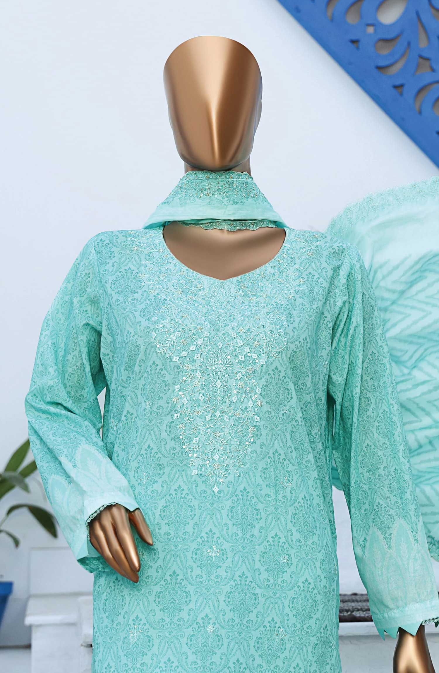 Modest Embroidered Chiffon Stitched 3 Piece Suit - 9740-Grn - MOD25PRF - Green - Festive Girls Collection