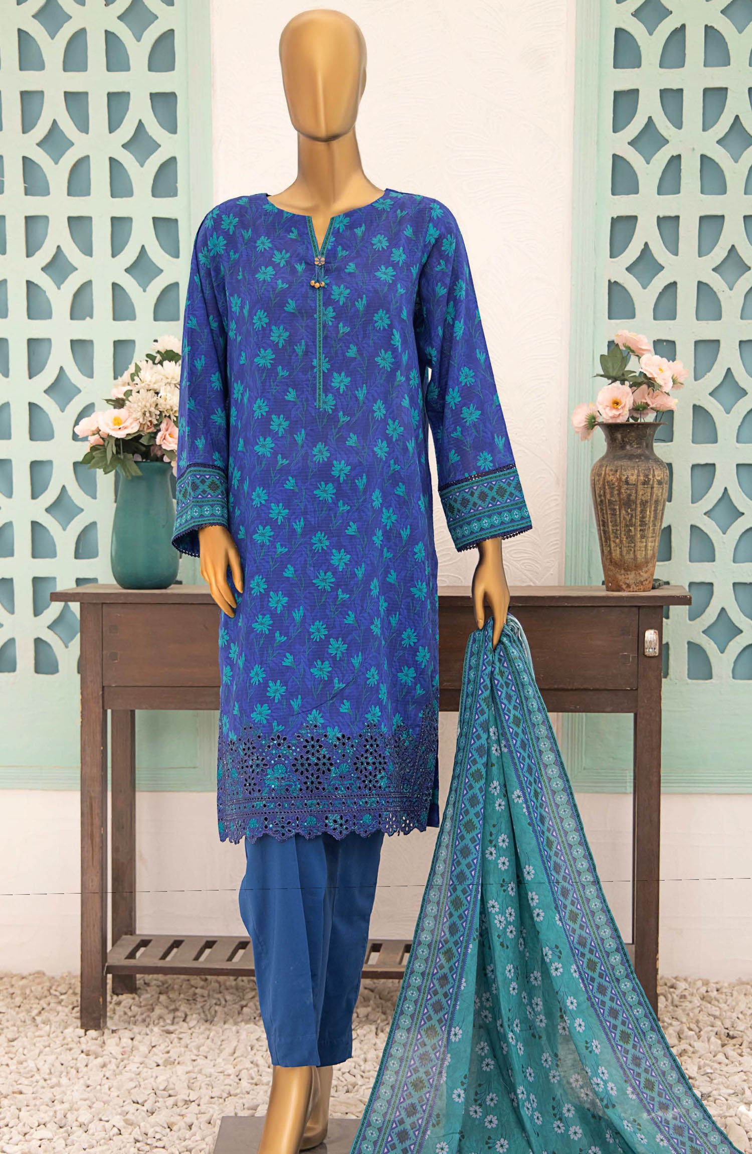 The standard style comes as a long-sleeved kameez with dupatta and trouser/shawlar.