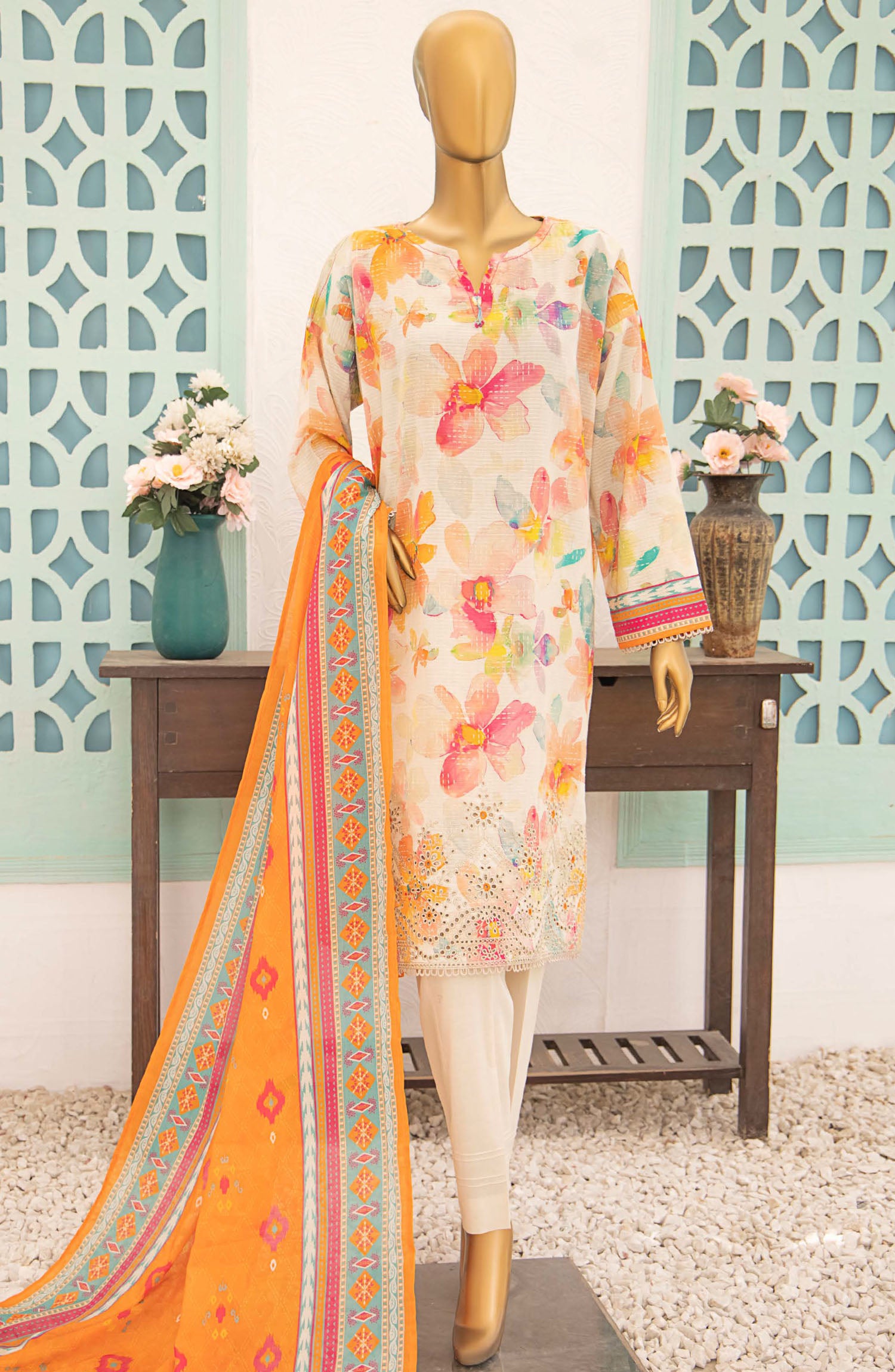 Home Vital by HZ Textile Embroidered Lawn Unstitched 3 Piece Suit - VEC-113 - HZ25VEBD - Off White - Summer Collection