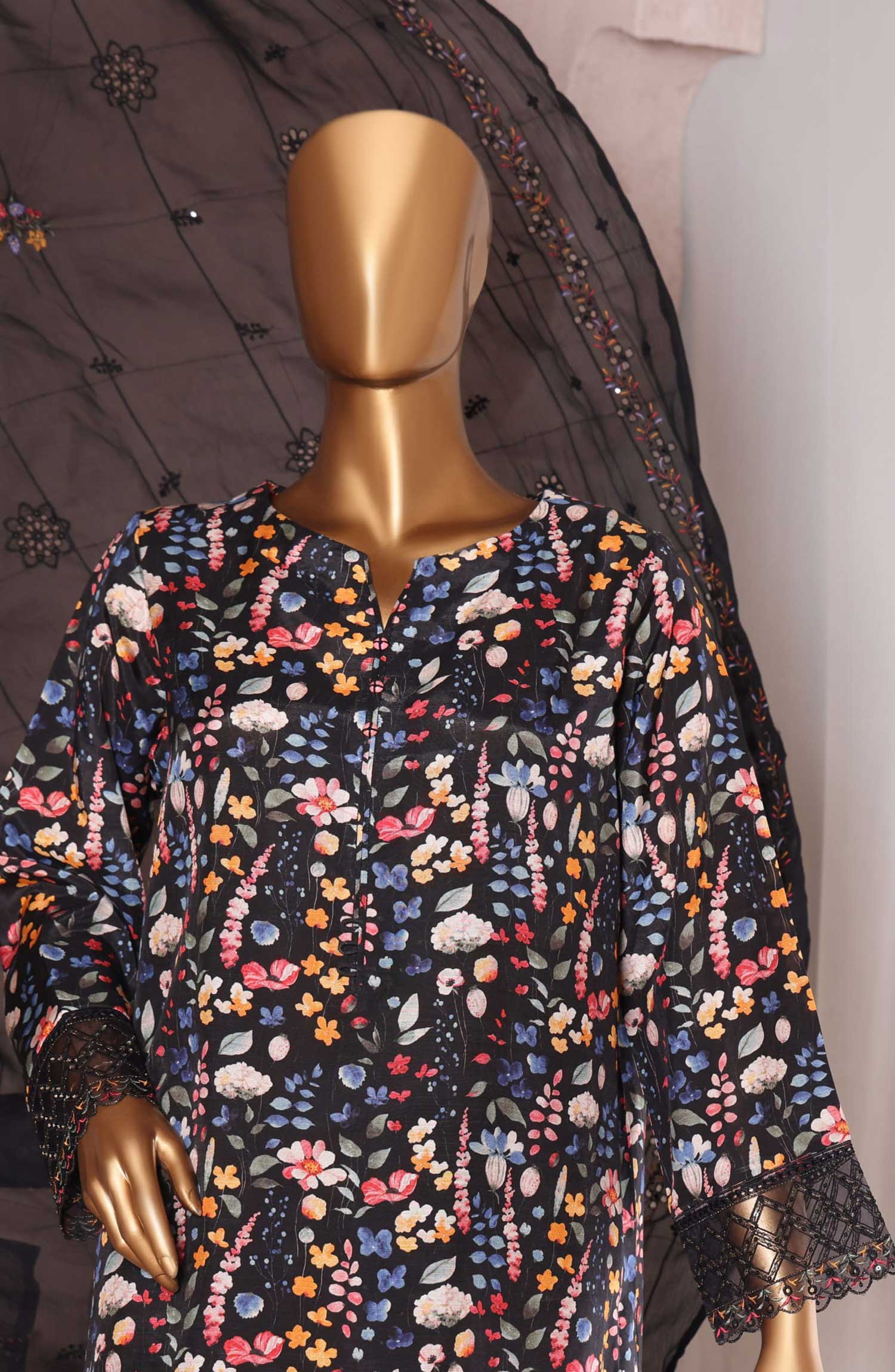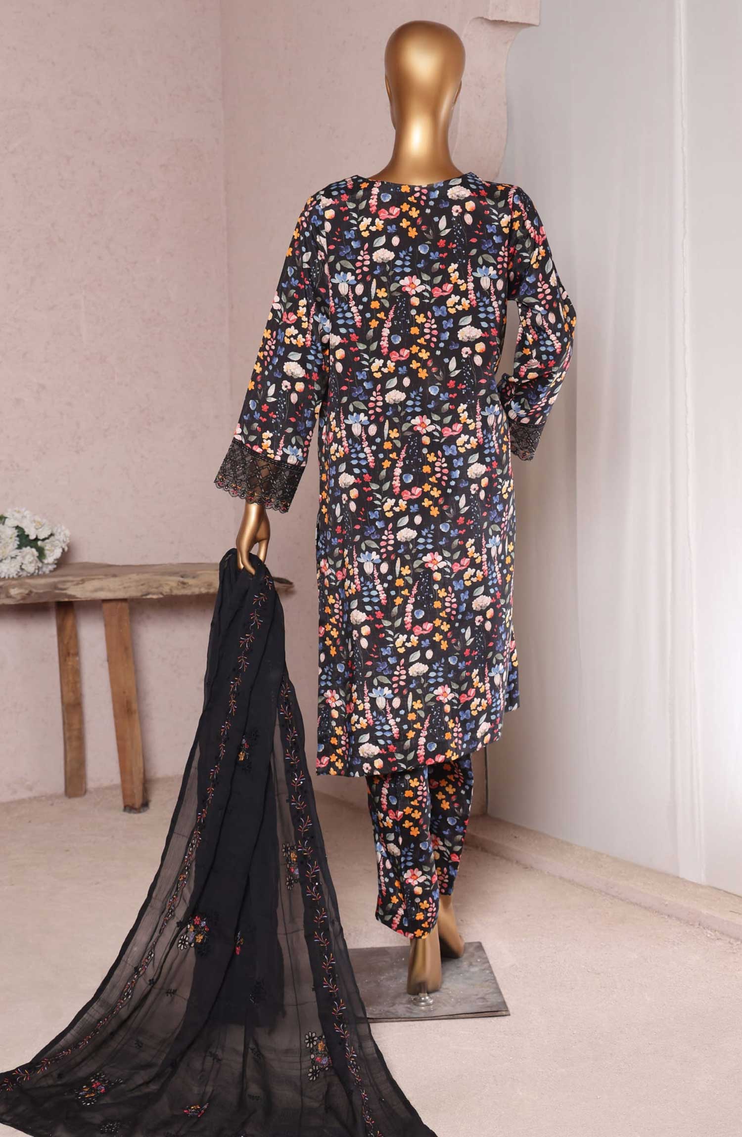 Vogue by HZ Textile Printed Raw Silk Unstitched 3 Piece - VRS 1111 - HZ25V - Black - Winter Collection