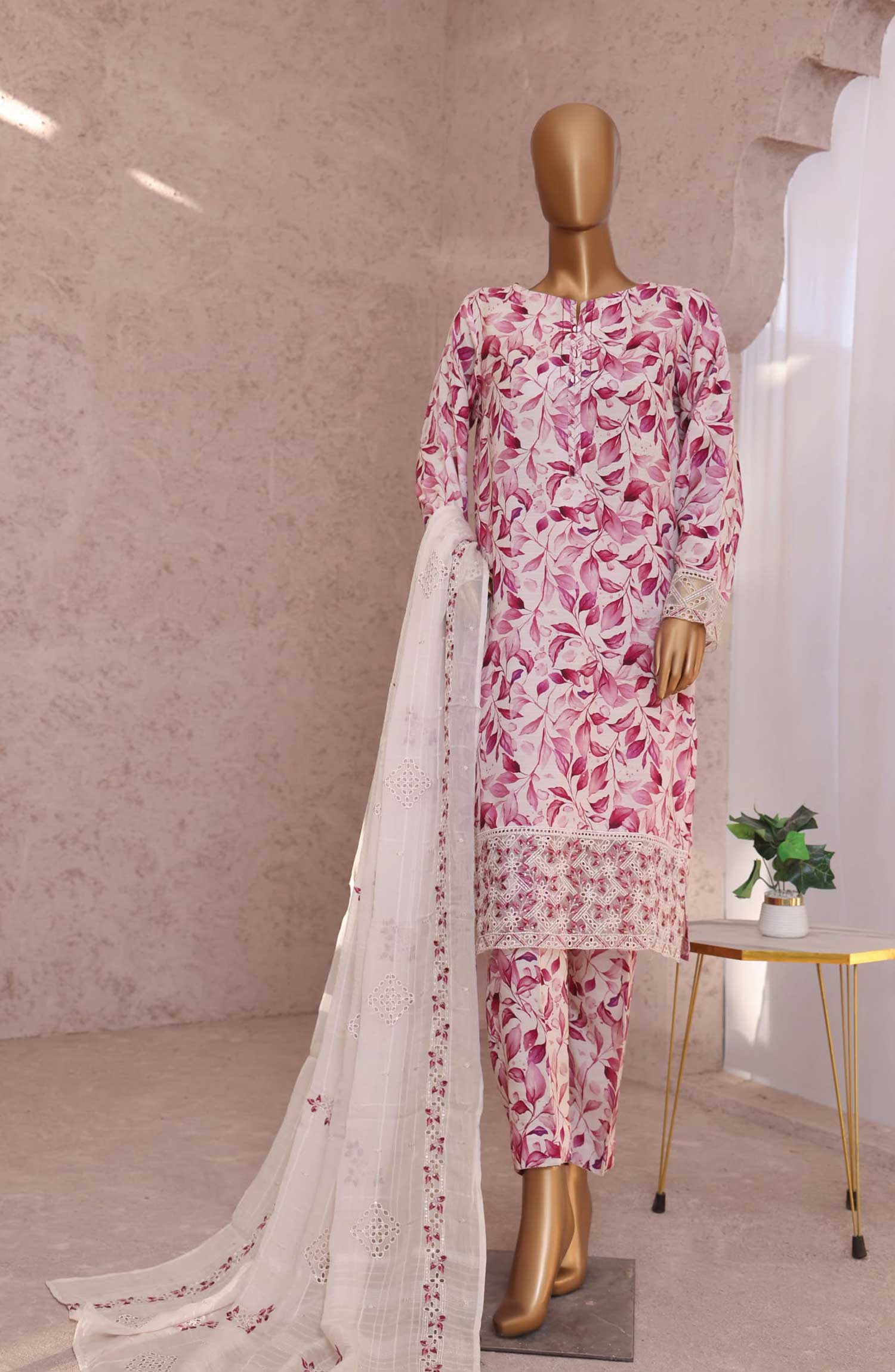 Shanzey Printed Cambric Stitched 3 Piece Suit - SHK-4904 - SHZ25CAM - Pink - Girls Winter Collection