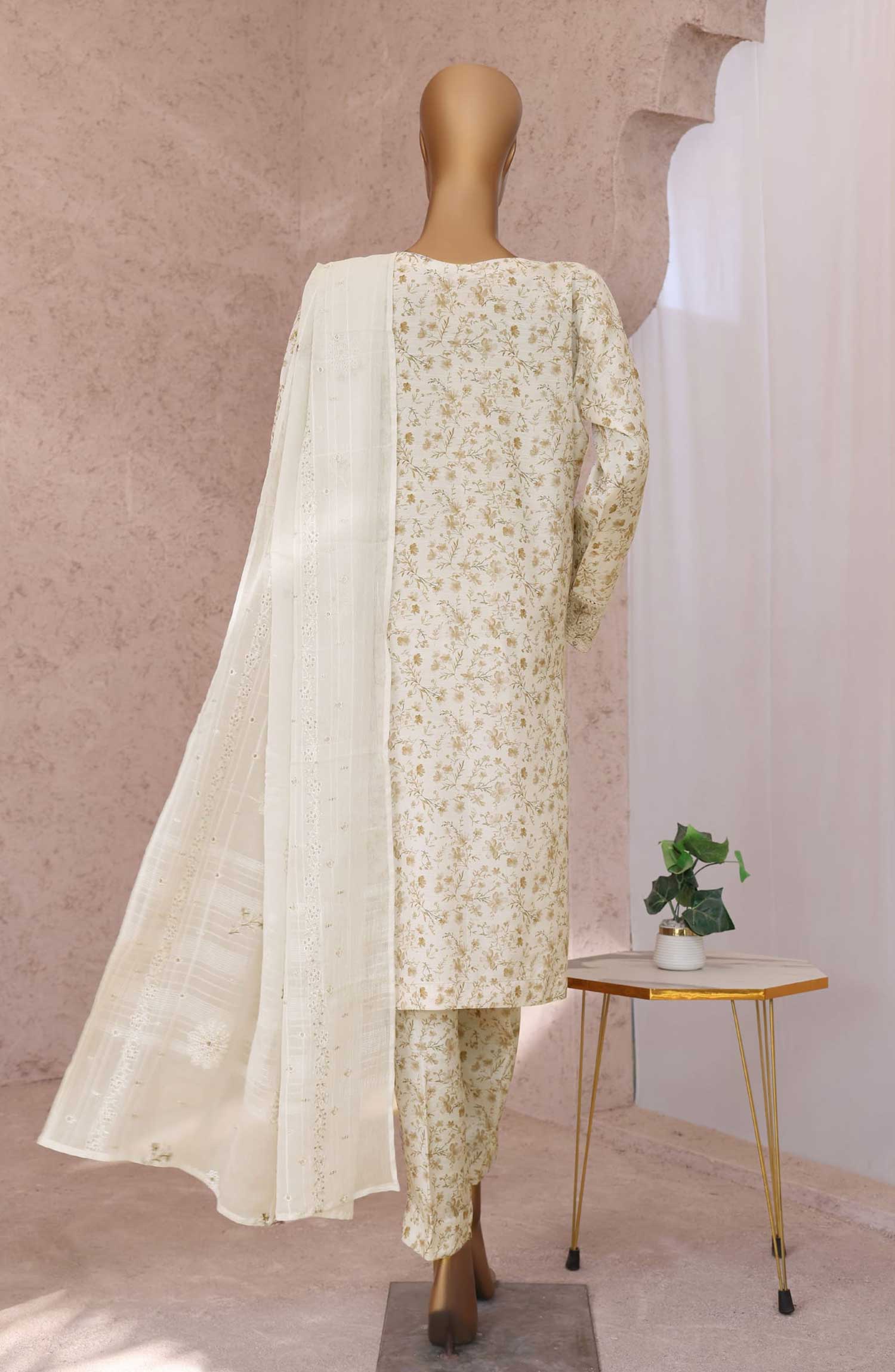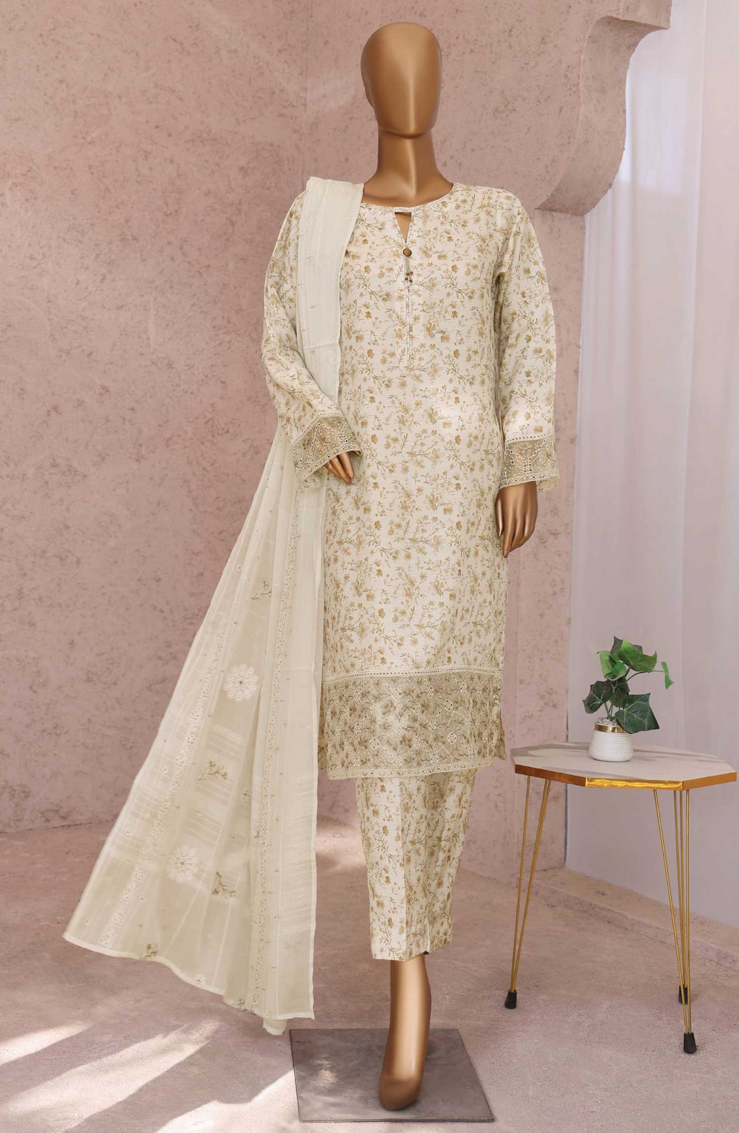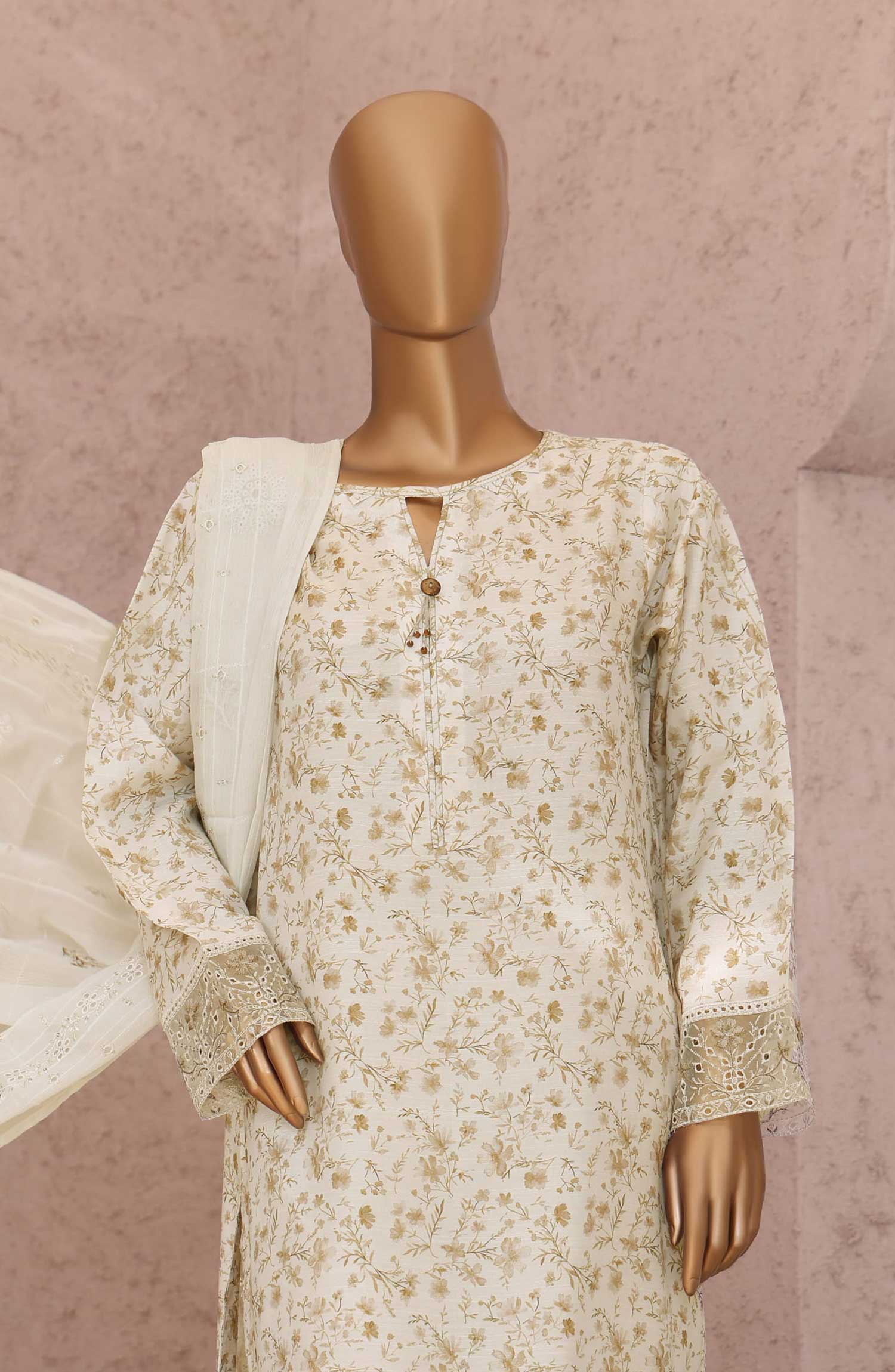 Shanzey Printed Cambric Stitched 3 Piece Suit - SHK-4901 - SHZ25CAM - Off White - Girls Winter Collection