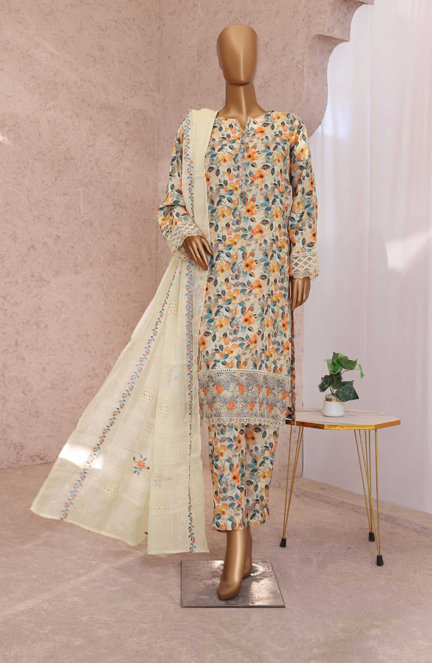 Shanzey Printed Cambric Stitched 3 Piece Suit - SHK-4903 - SHZ25CAM - Lemon - Girls Winter Collection