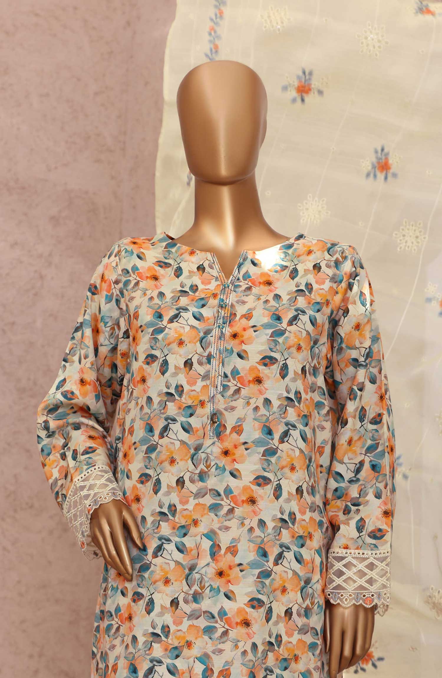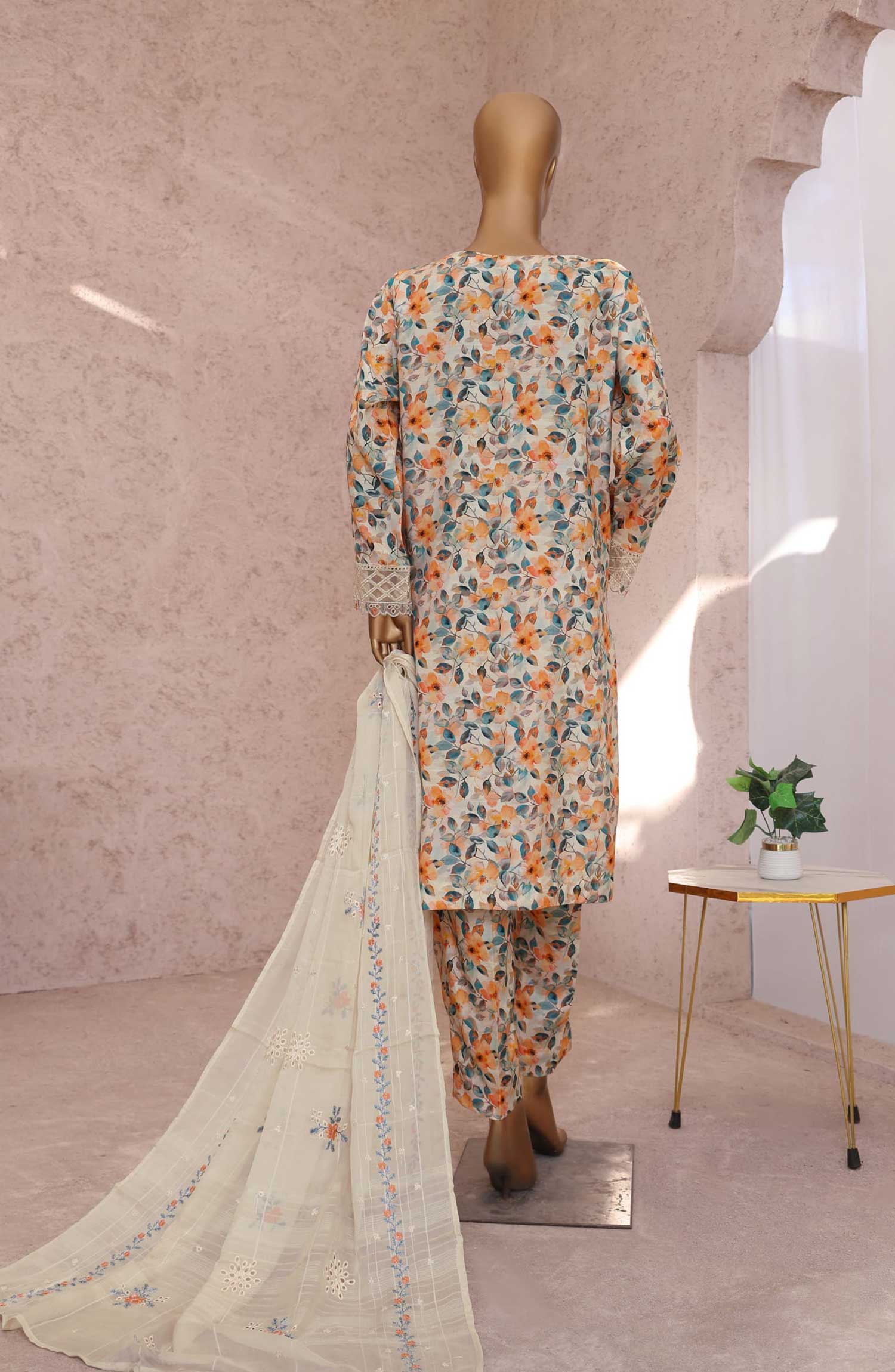 Shanzey Printed Cambric Stitched 3 Piece Suit - SHK-4901 - SHZ25CAM - Off White - Girls Winter Collection