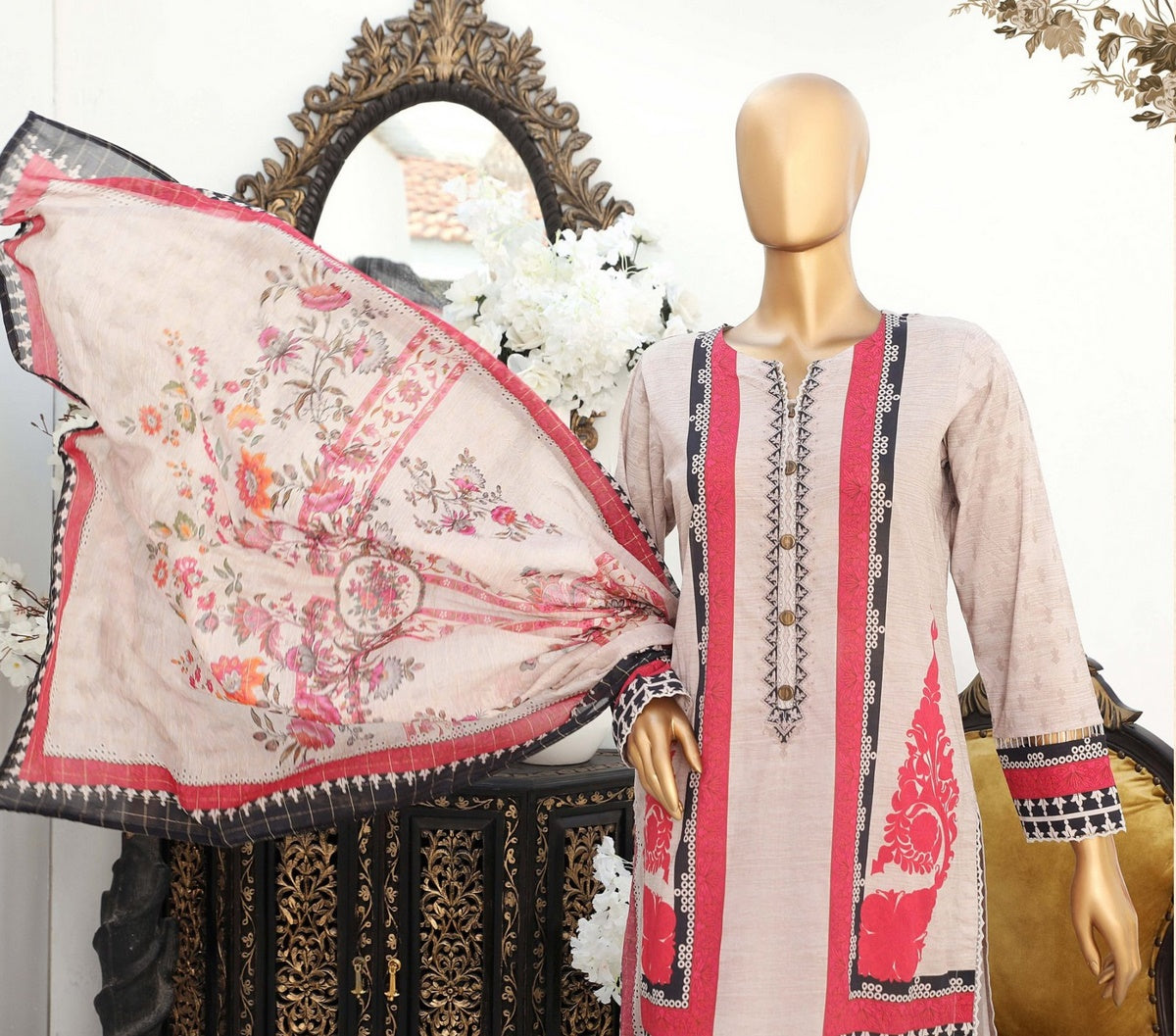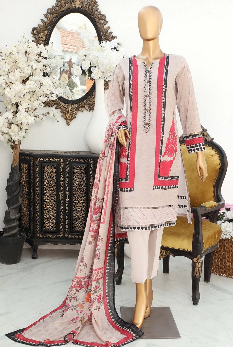 The standard style comes as a long-sleeved kameez with dupatta and trouser/shawlar.