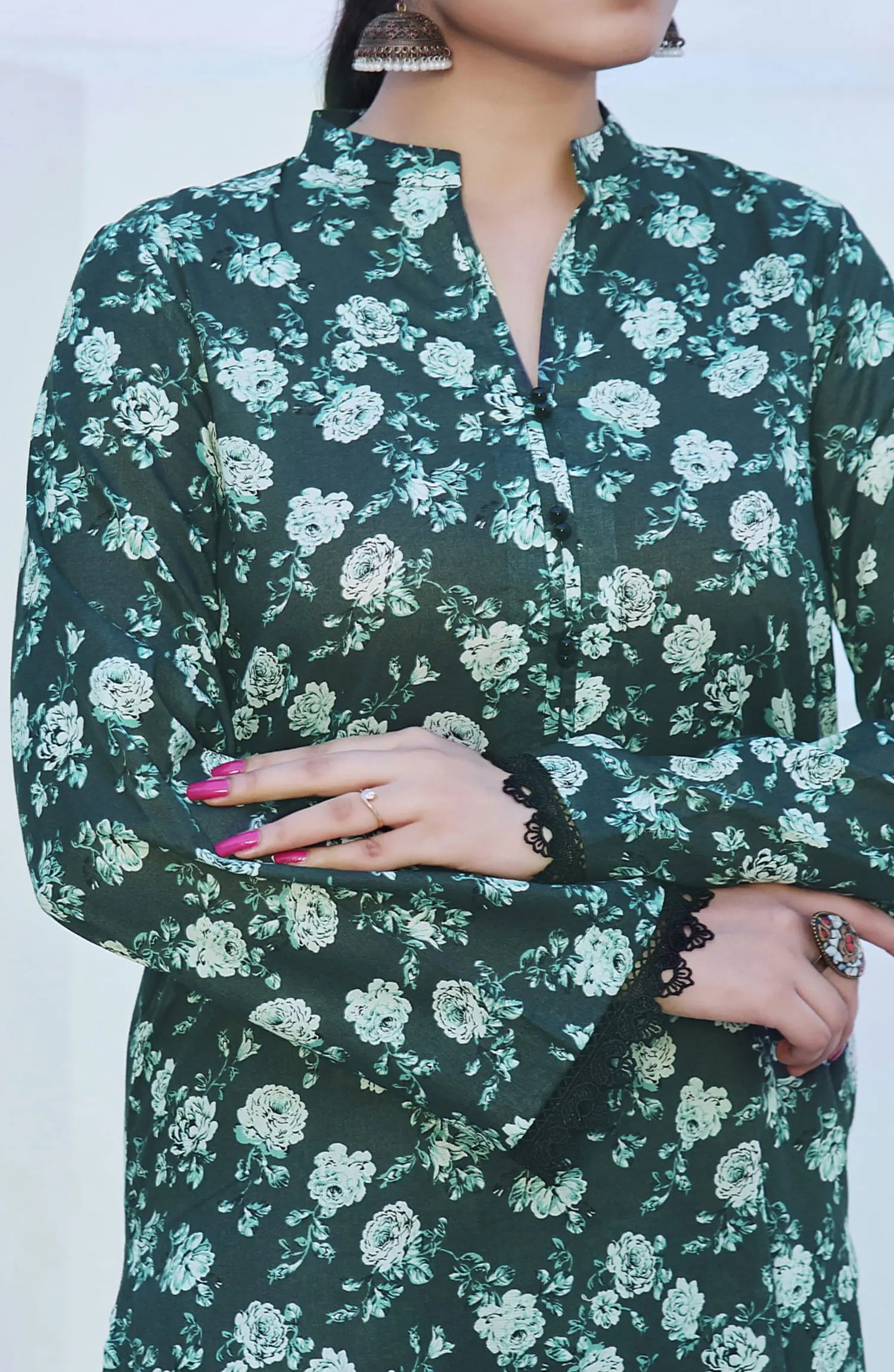 Ayla Printed Lawn Jacquard Stitched 3 Piece Suit - Neel Kamal - AY26ED - Teal - Eid Collection
