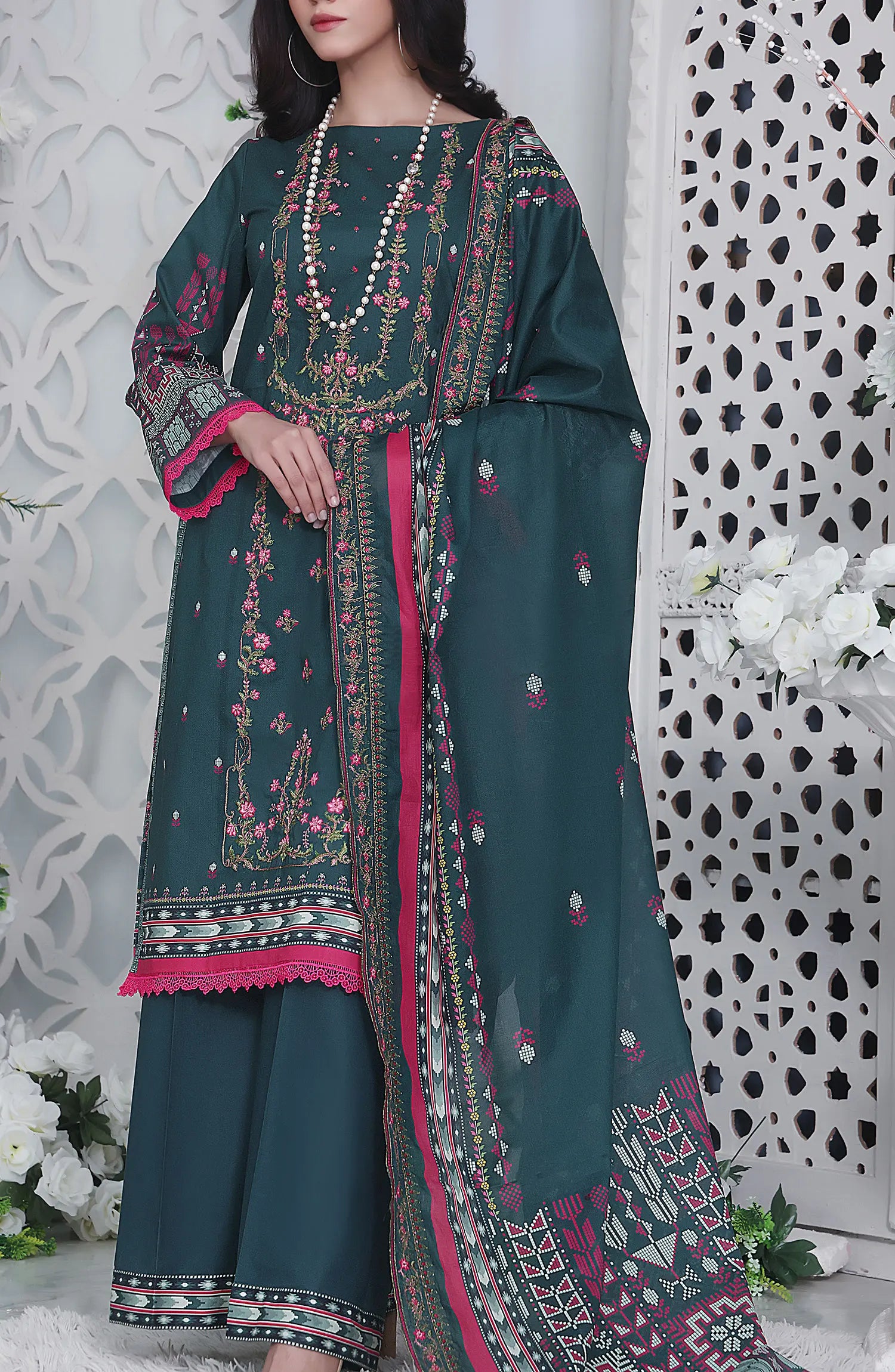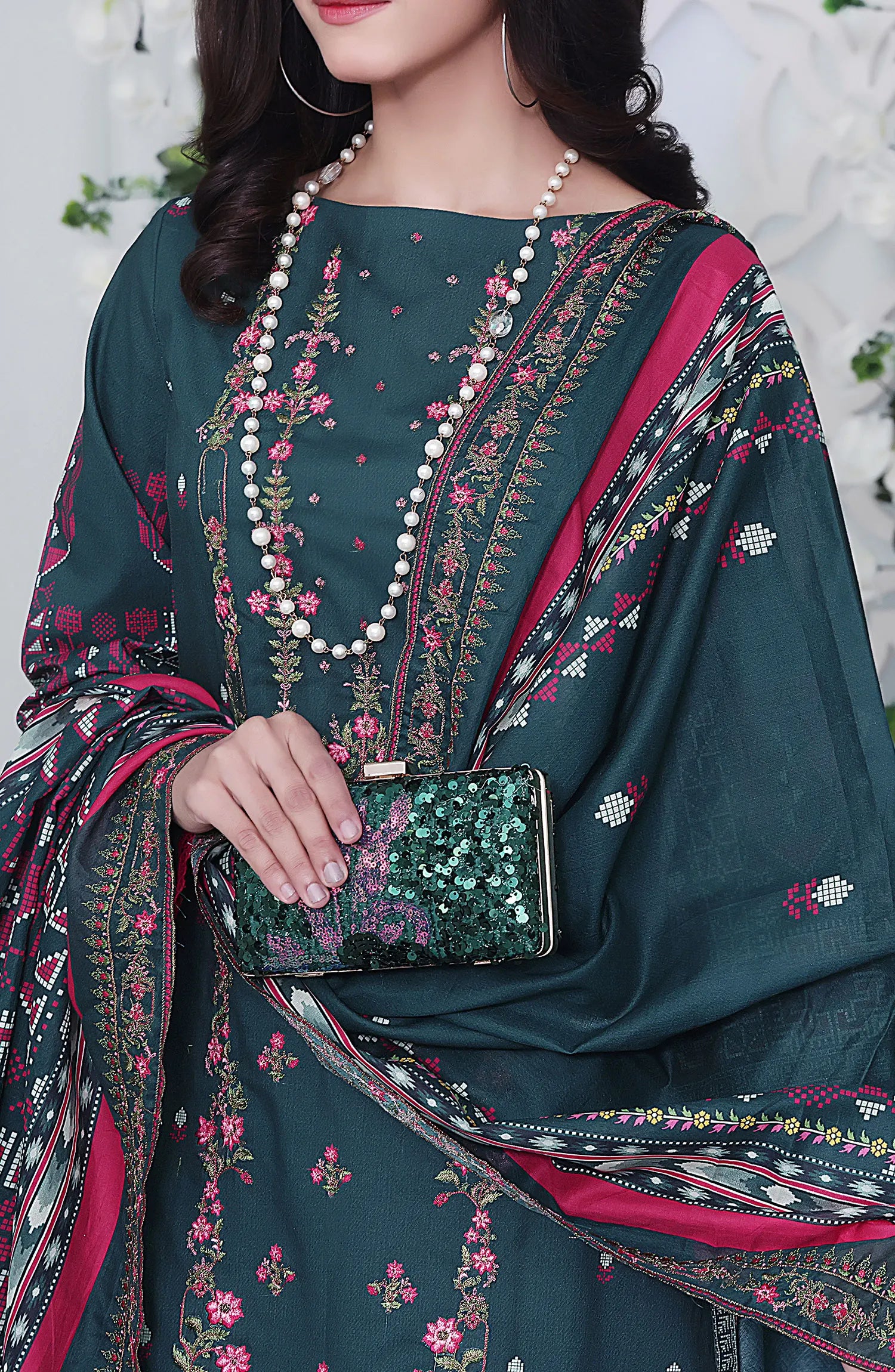 Modest Embroidered Chiffon Stitched 3 Piece Suit - 9740-Grn - MOD25PRF - Green - Festive Girls Collection