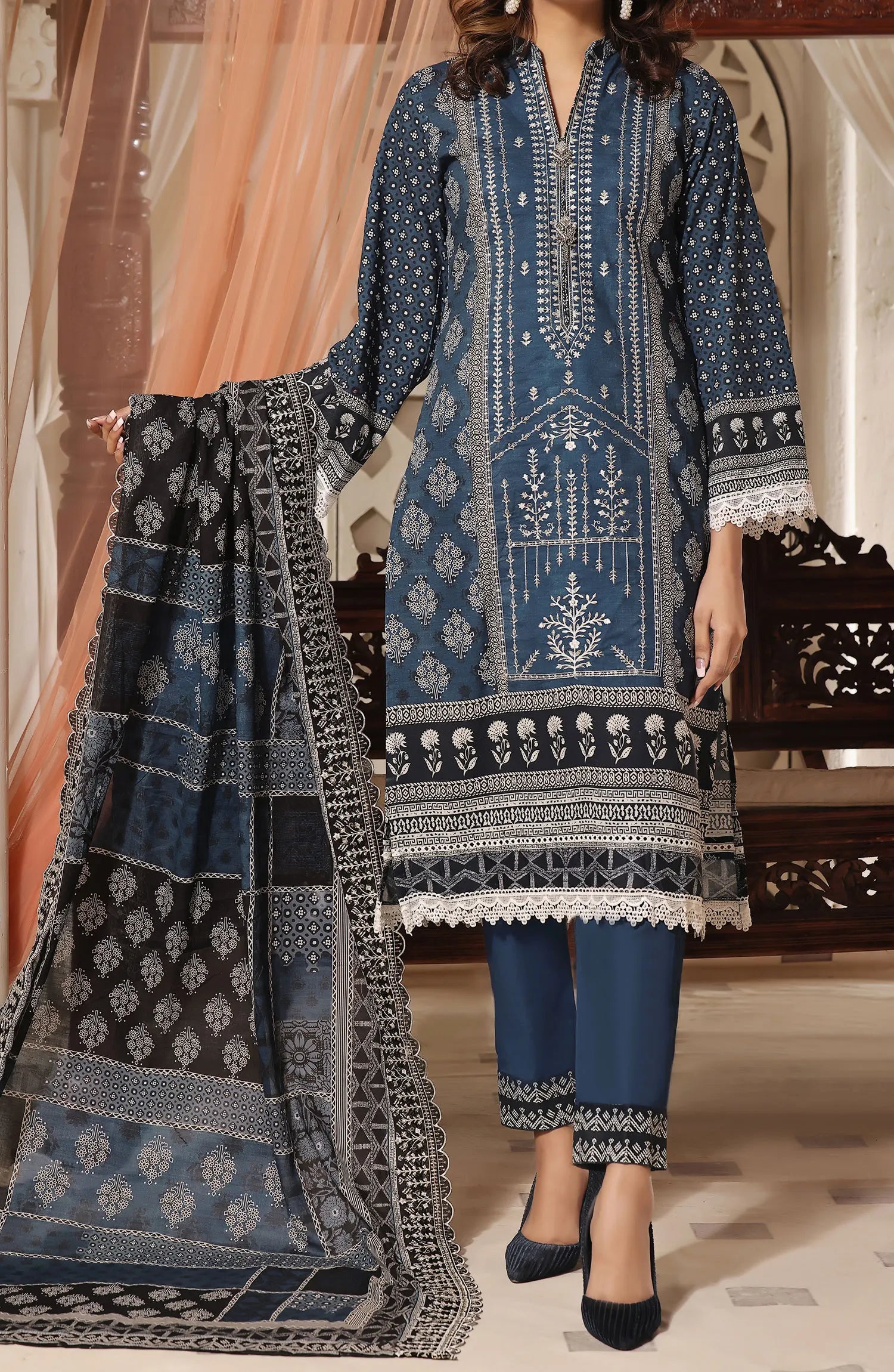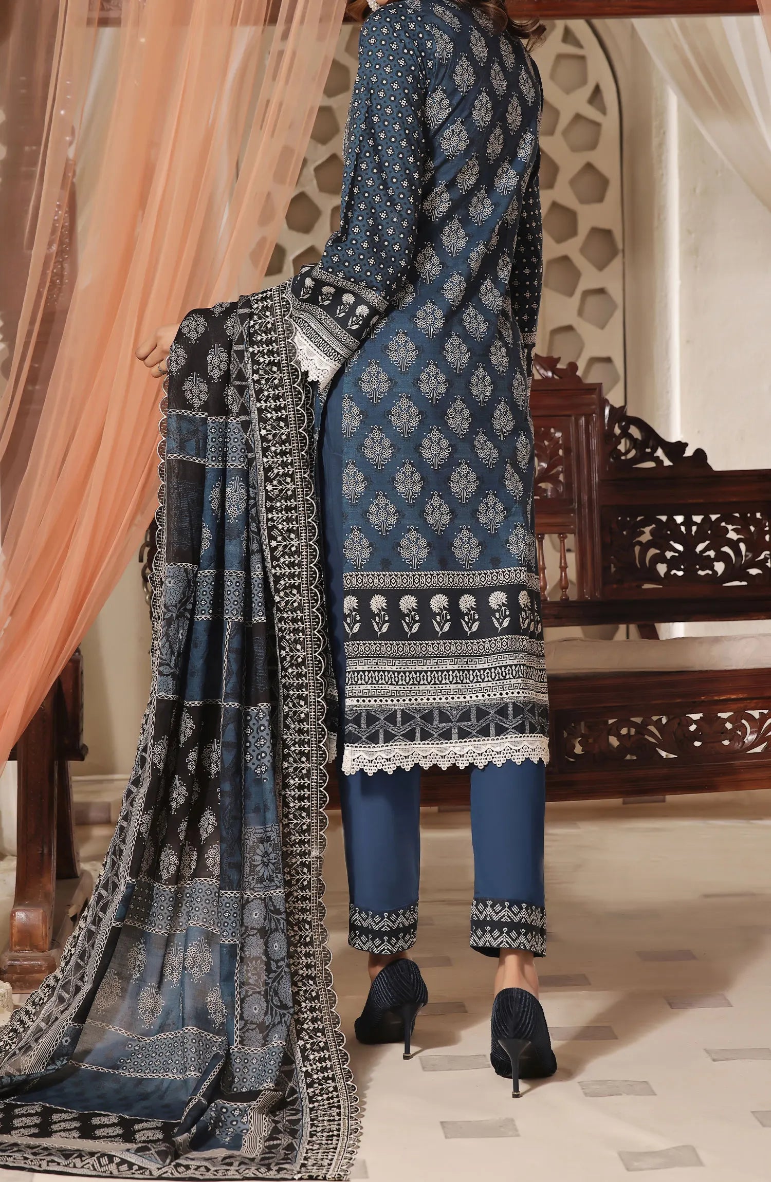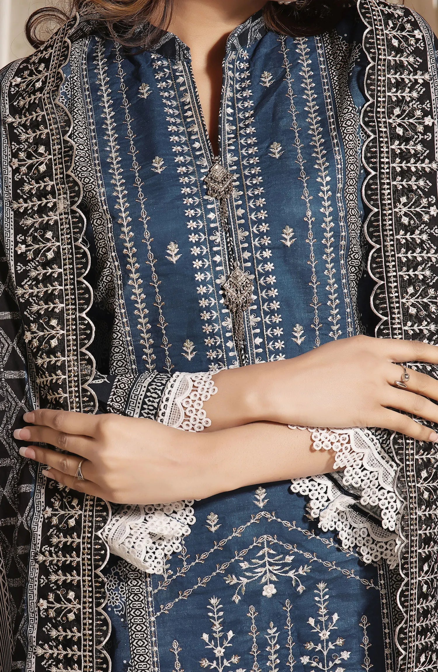 Modest Embroidered Chiffon Stitched 3 Piece Suit - 9615-Nblu - MOD25PRF - Blue - Festive Girls Collection