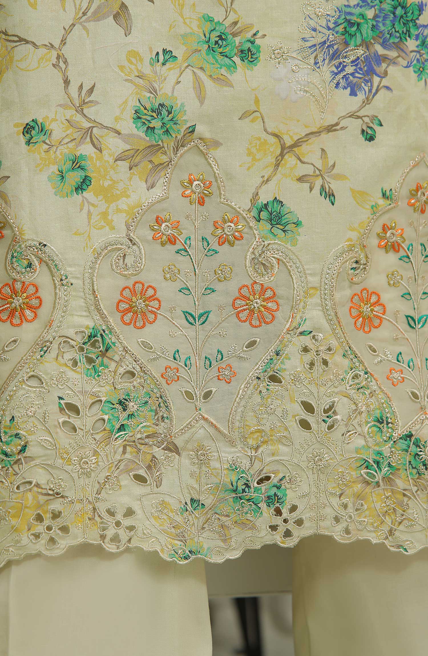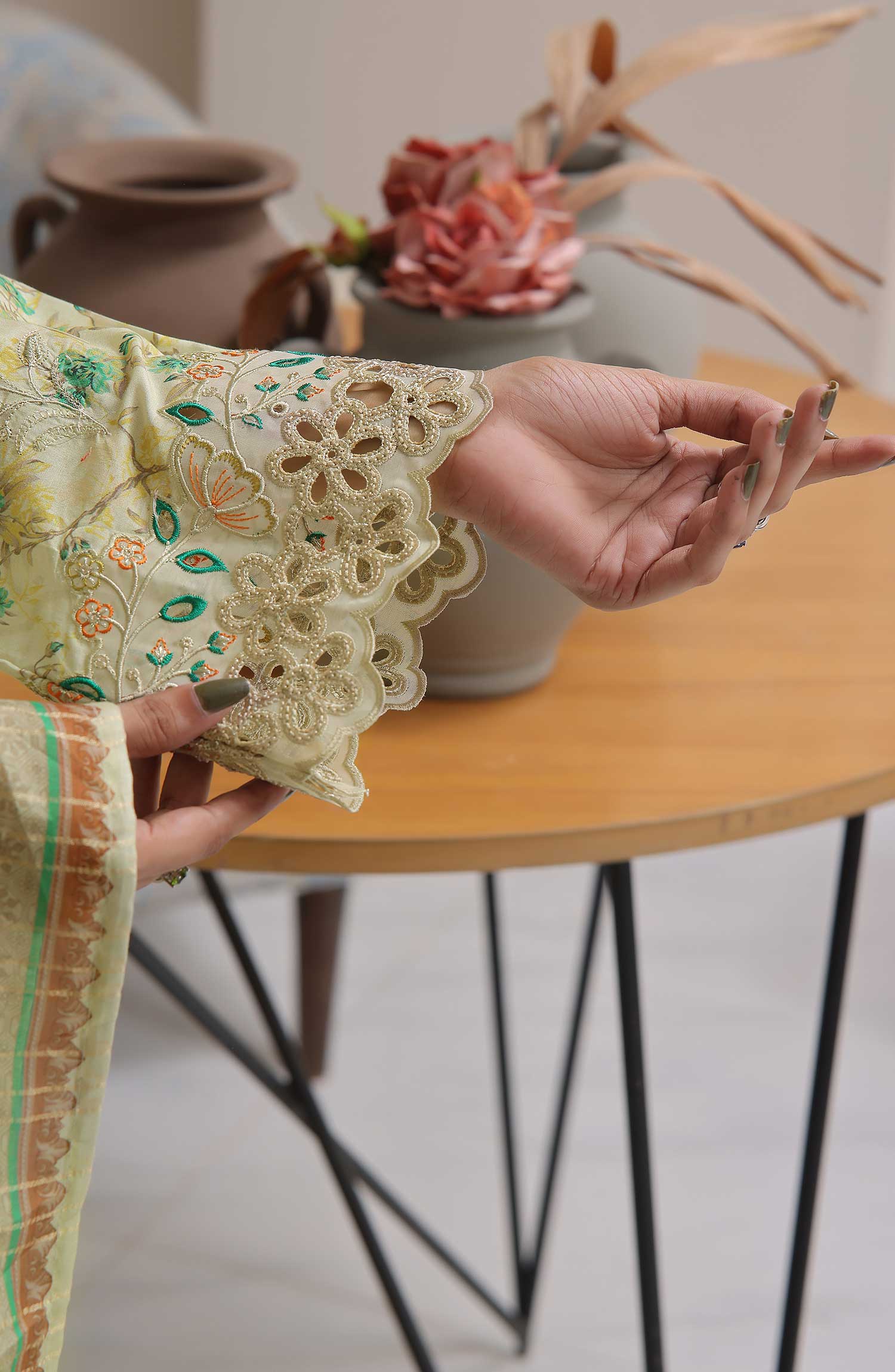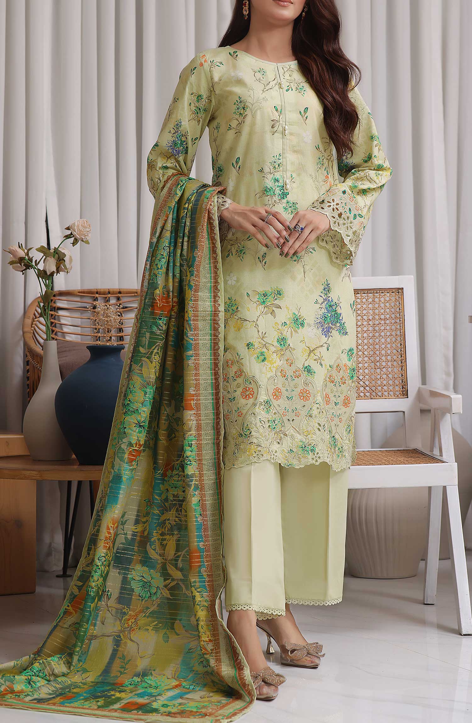 VS Zynah Premium Digital Chikankari Unstitched Collection has been styled in the image for photography and illustrative purposes.