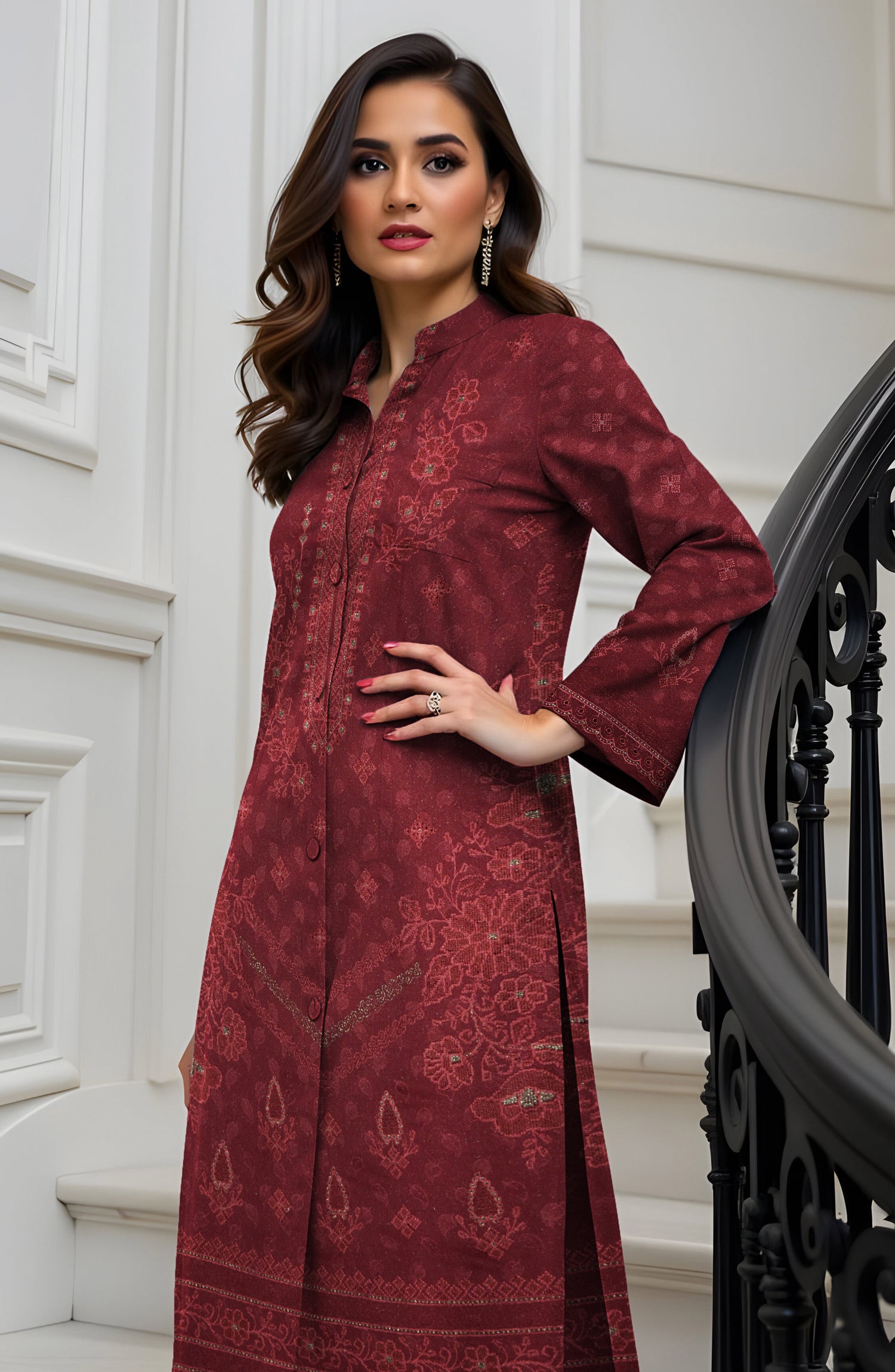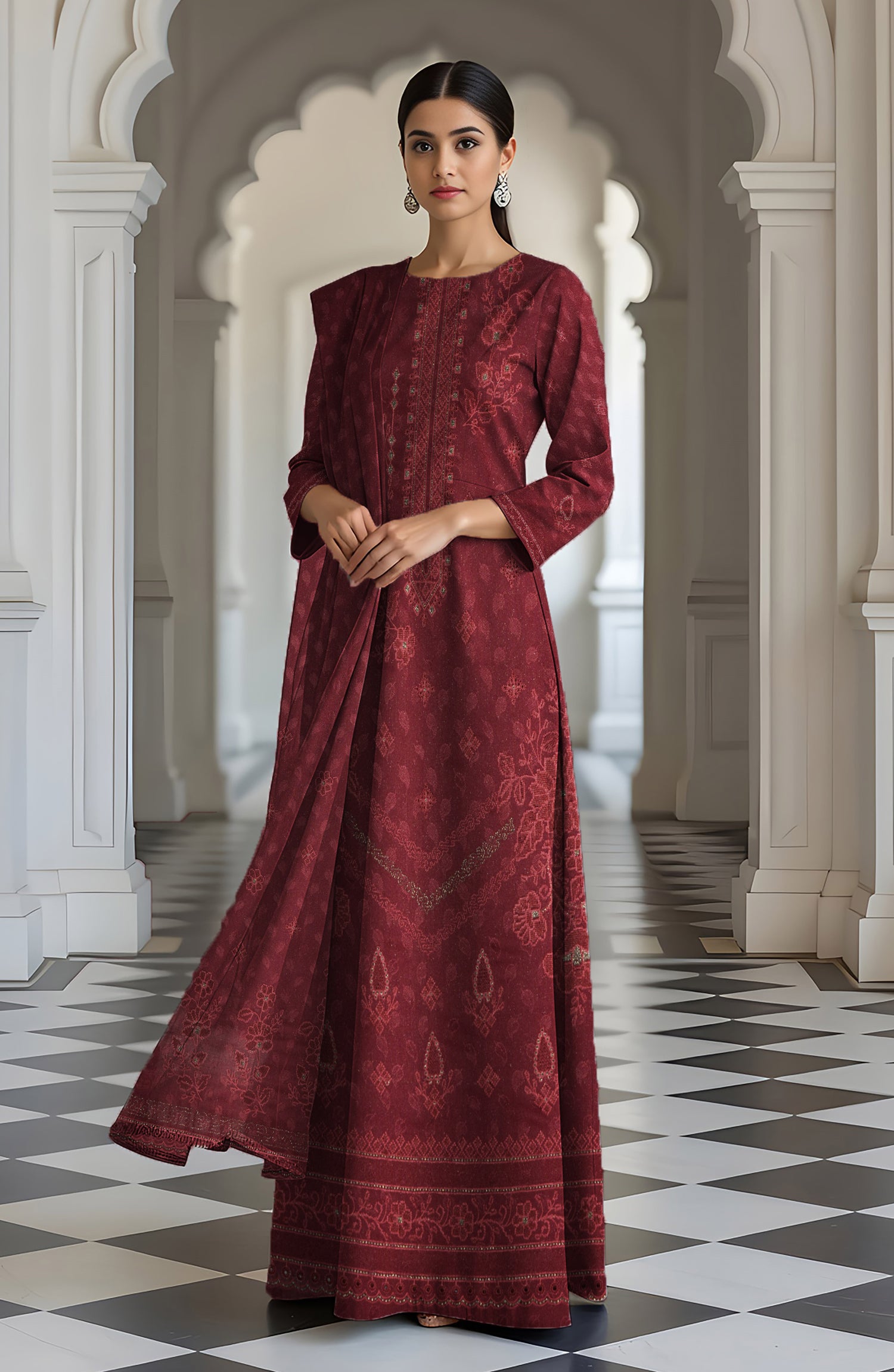 Dyed Dhanak Jacquard Chamki Embroidered Shirt with Bumble Shawl & Dyed Trouser