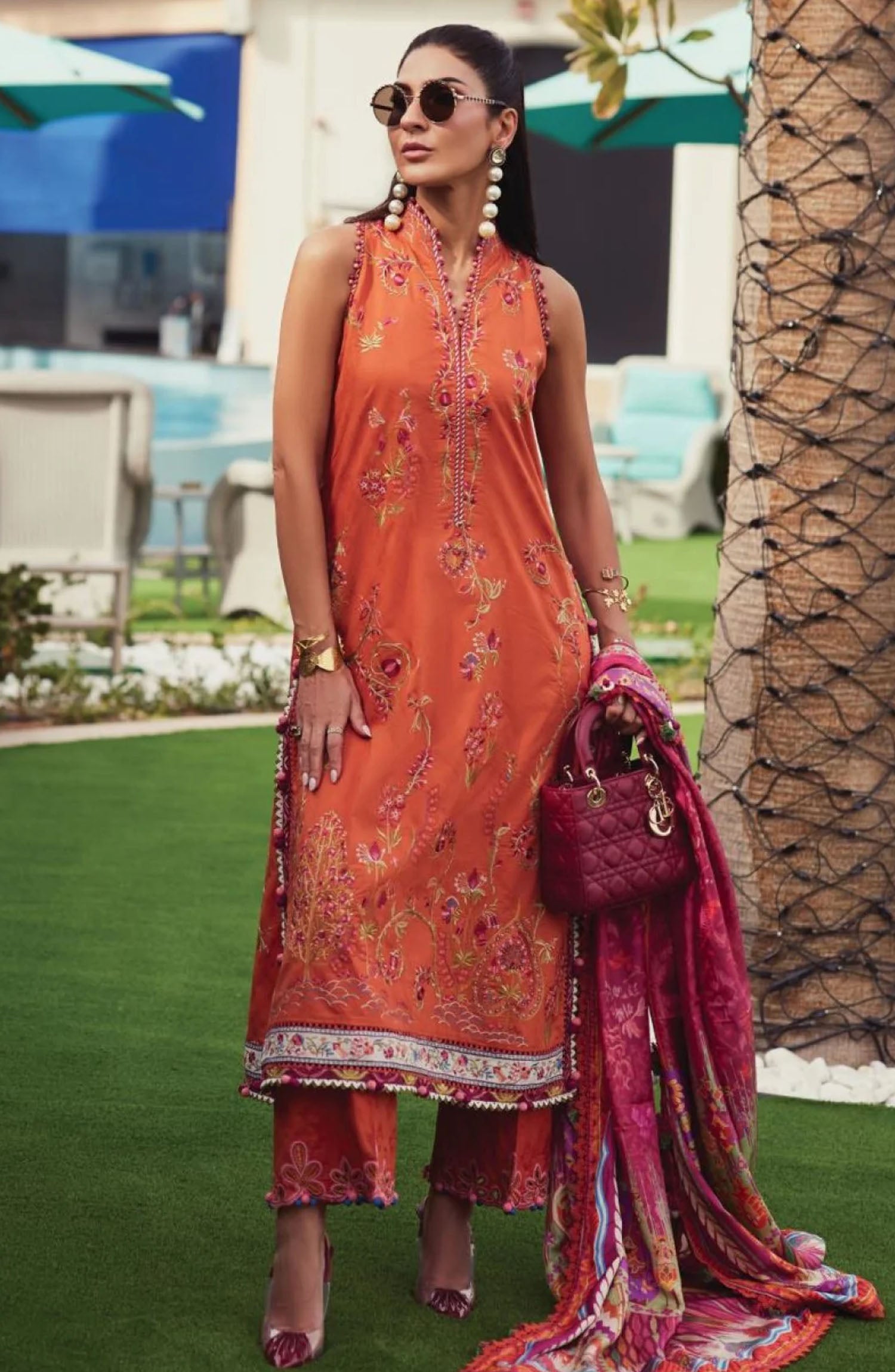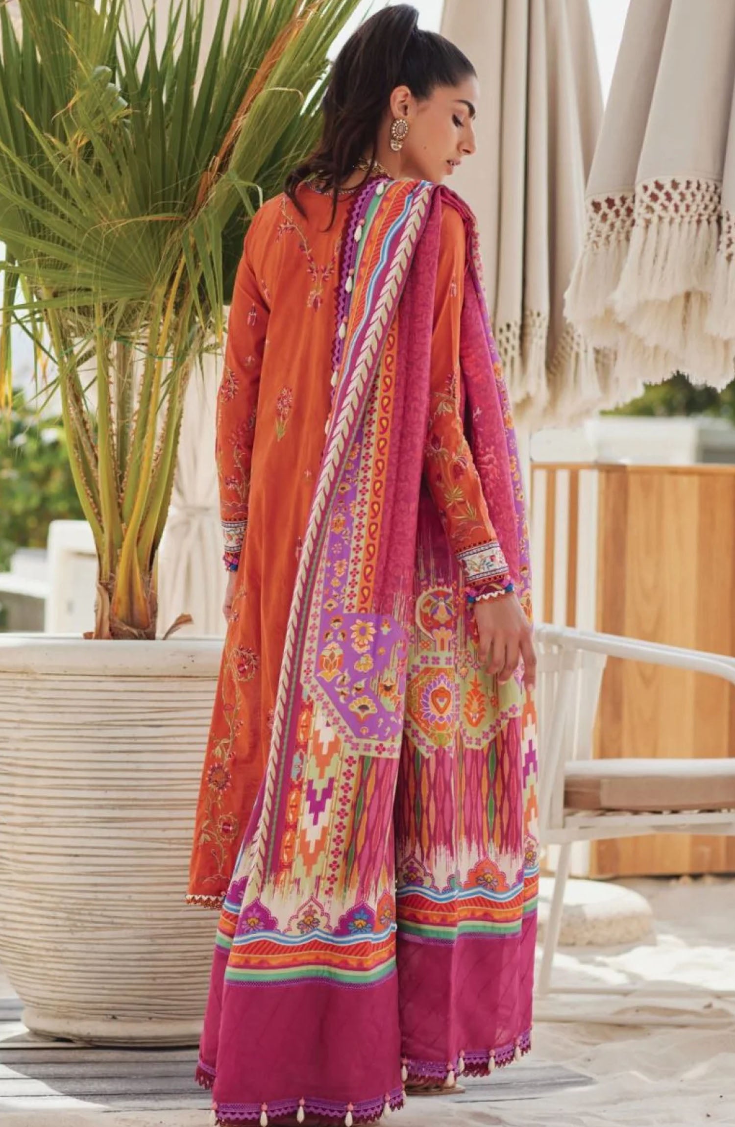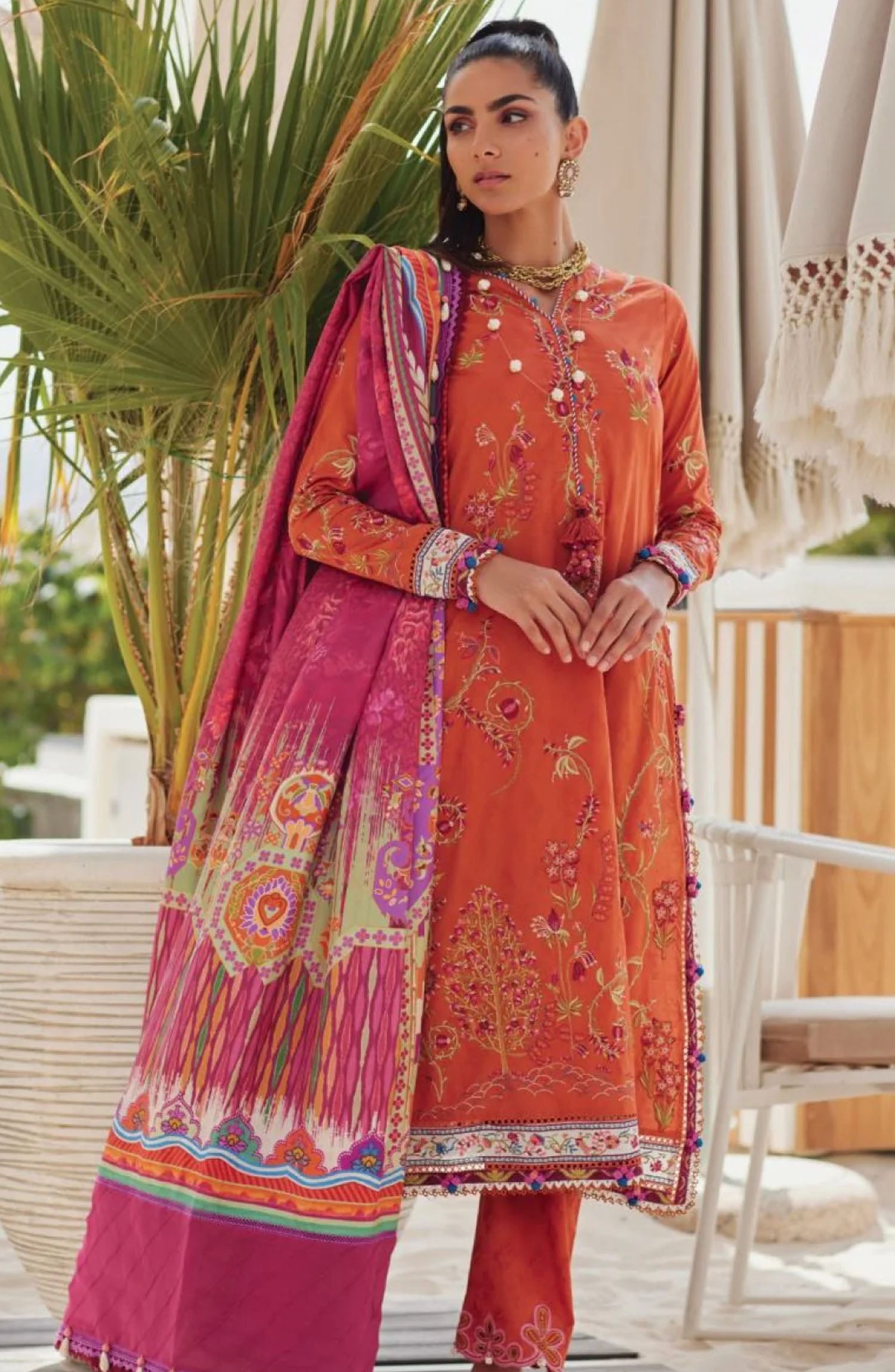 Wes by Farah Talib Embroidered Lawn Suits Unstitched 3 Piece FTA-01 Rita Rust FTA25WL - Orange - Luxury Collection