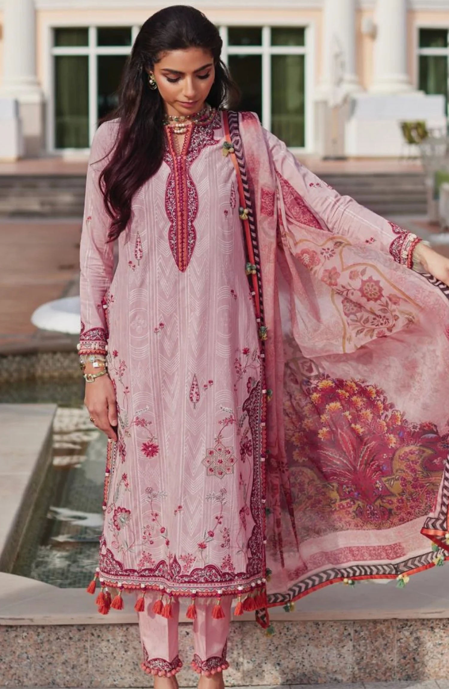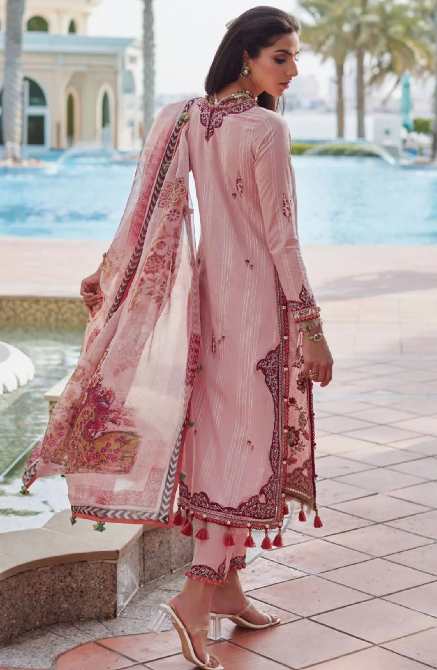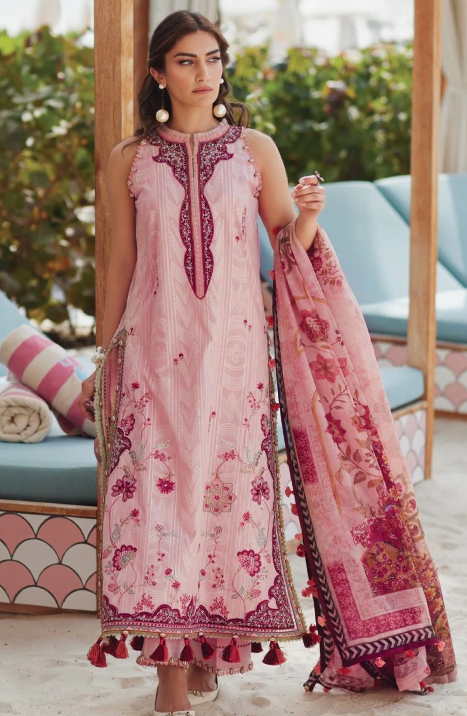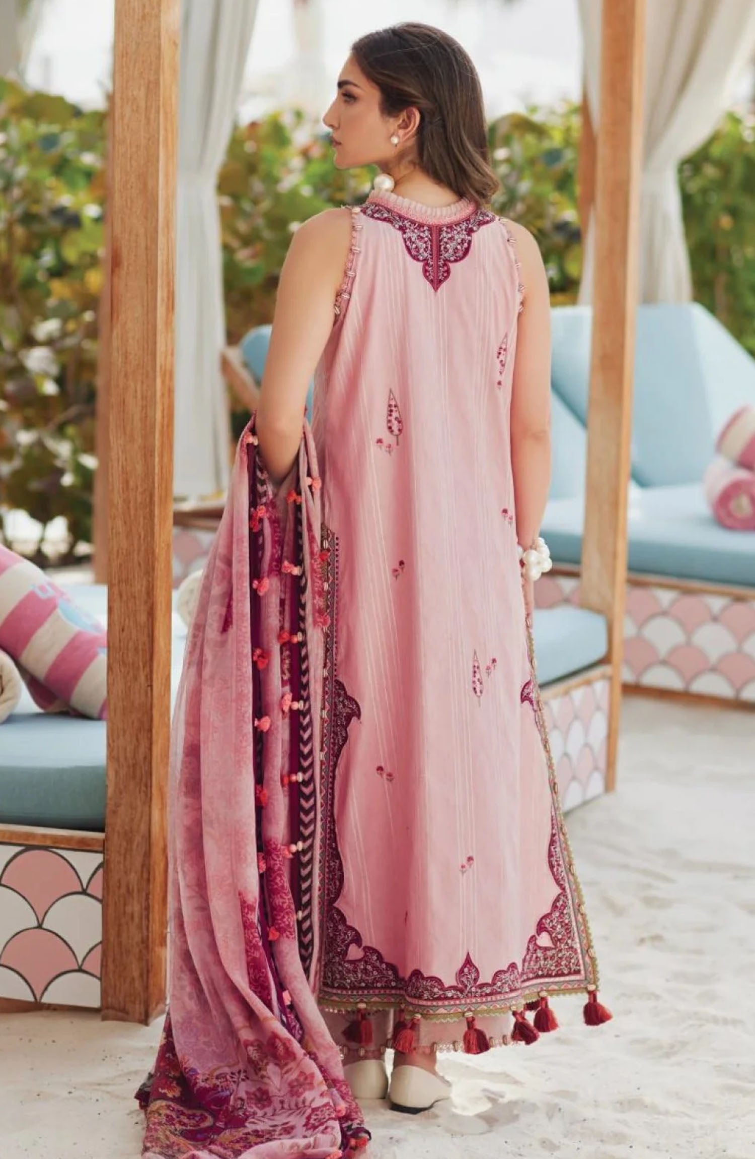 Wes by Farah Talib Embroidered Lawn Suits Unstitched 3 Piece FTA-03 Prciscilla Pink FTA25WL - Pink - Luxury Collection