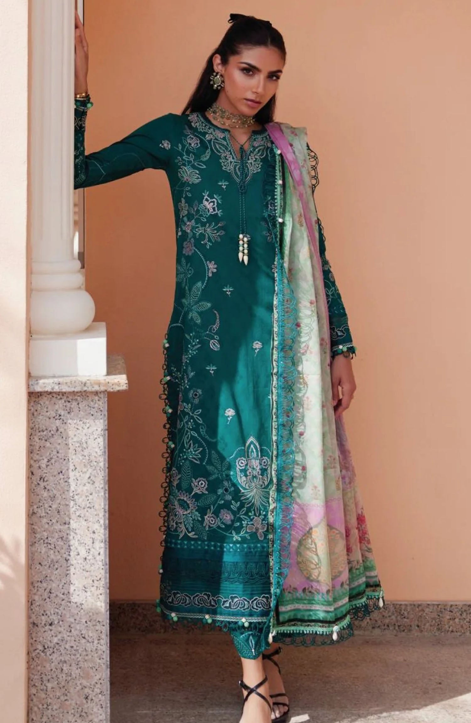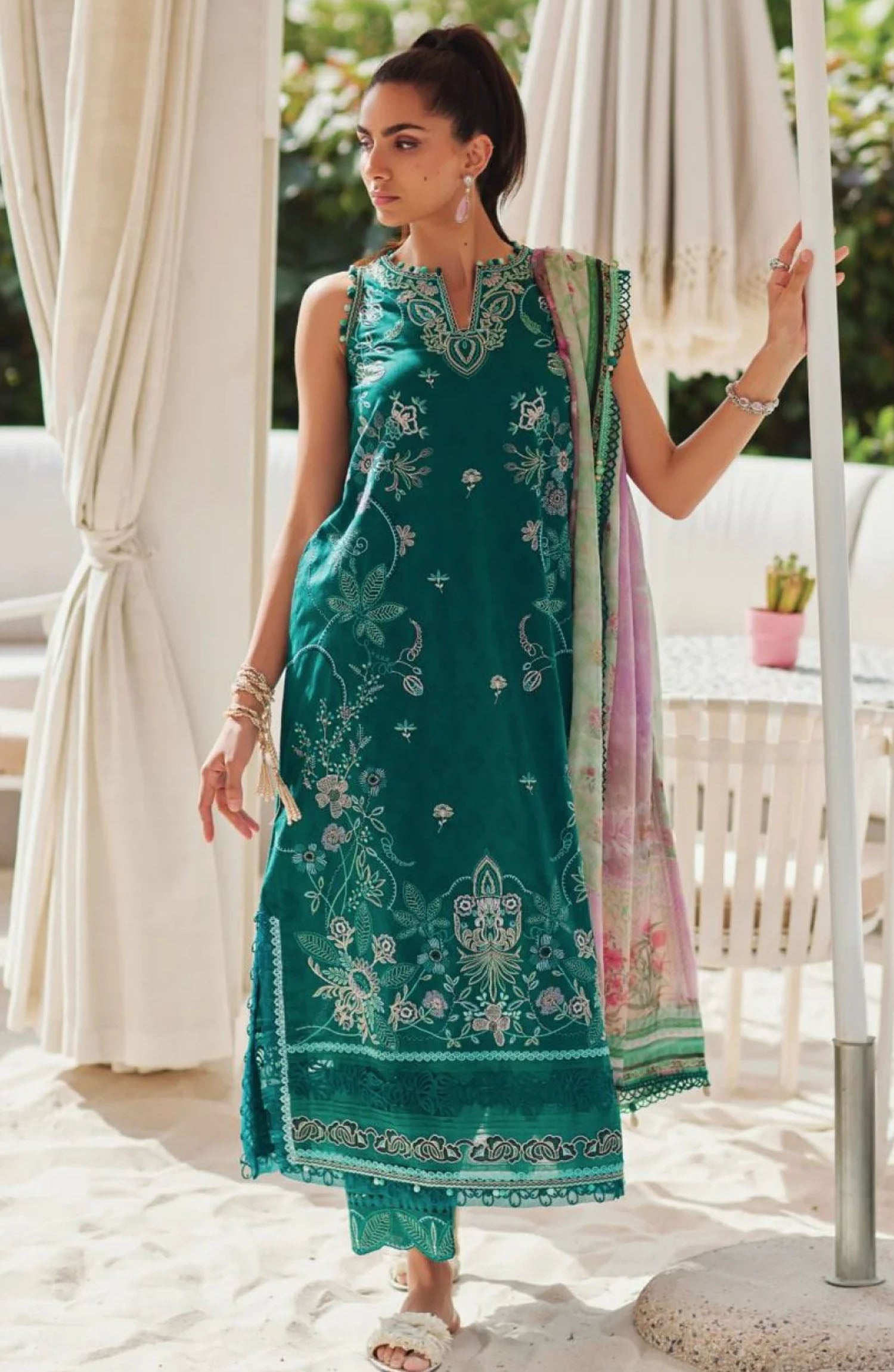 Home Wes by Farah Talib Embroidered Lawn Suits Unstitched 3 Piece FTA-04 Eileen Emerald FTA25WL - Green - Luxury Collection