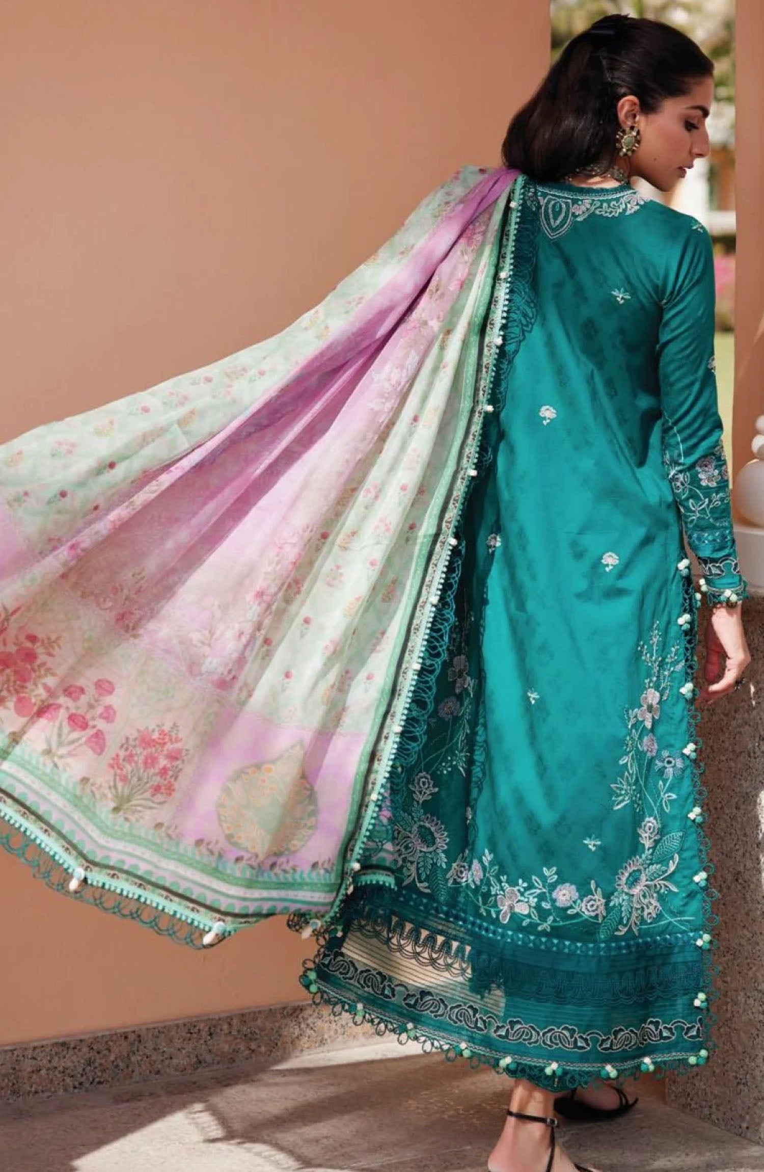 Wes by Farah Talib Embroidered Lawn Suits Unstitched 3 Piece FTA-04 Eileen Emerald FTA25WL - Green - Luxury Collection
