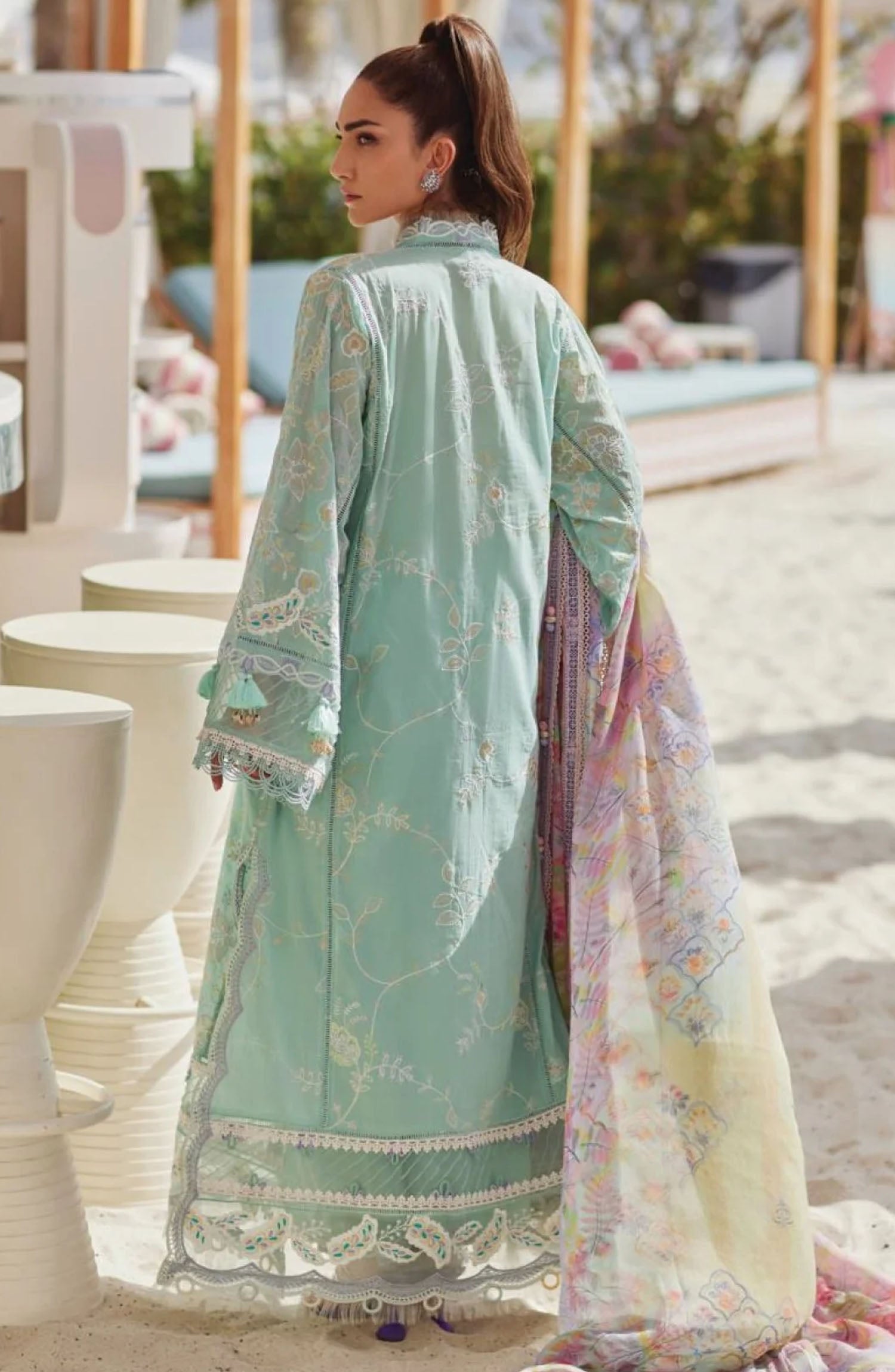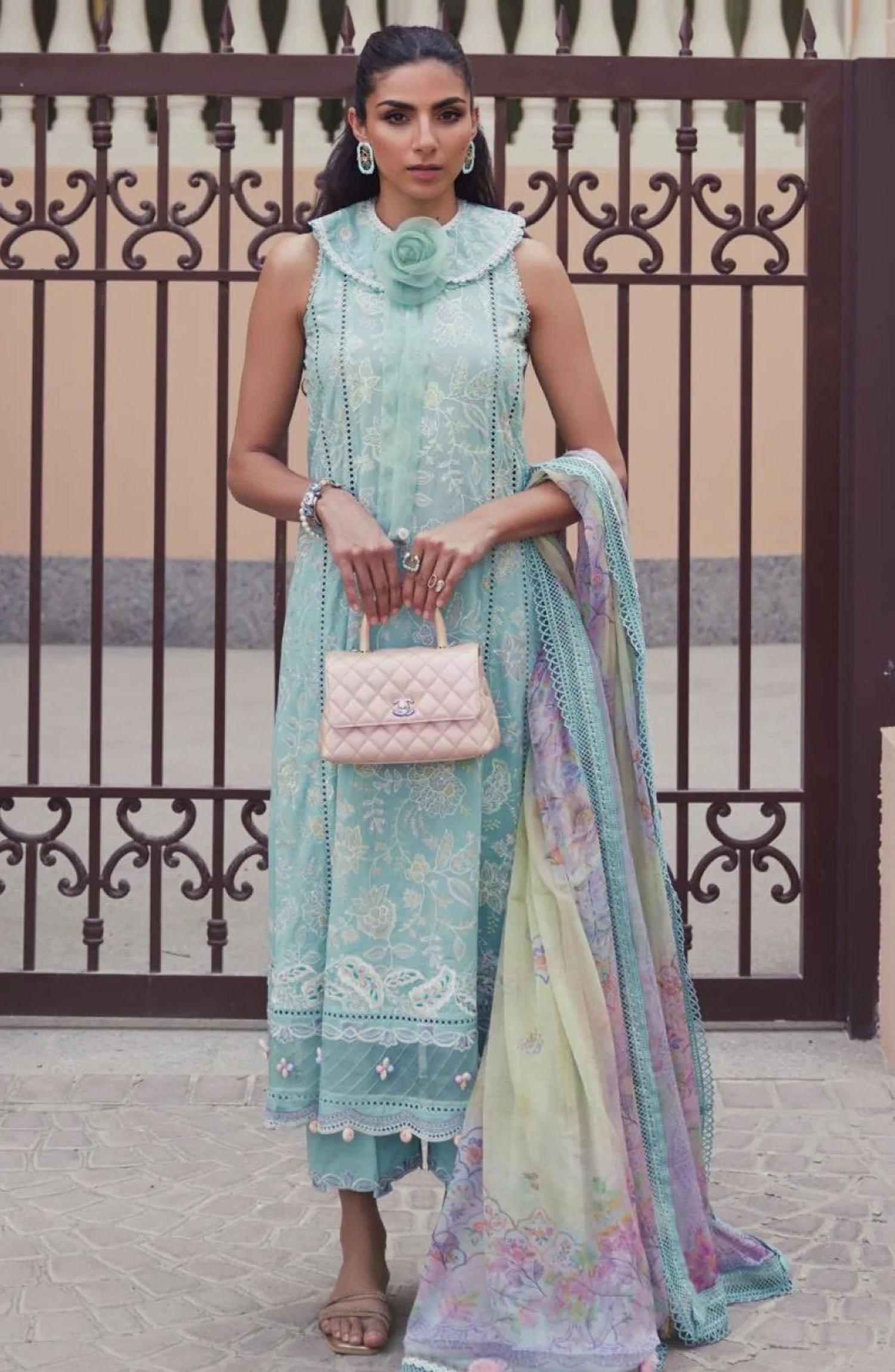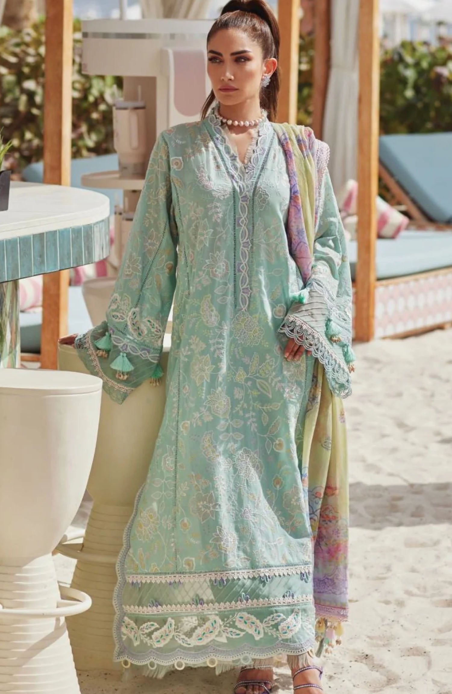 The standard style comes as a long-sleeved kameez with dupatta and trouser/shawlar.