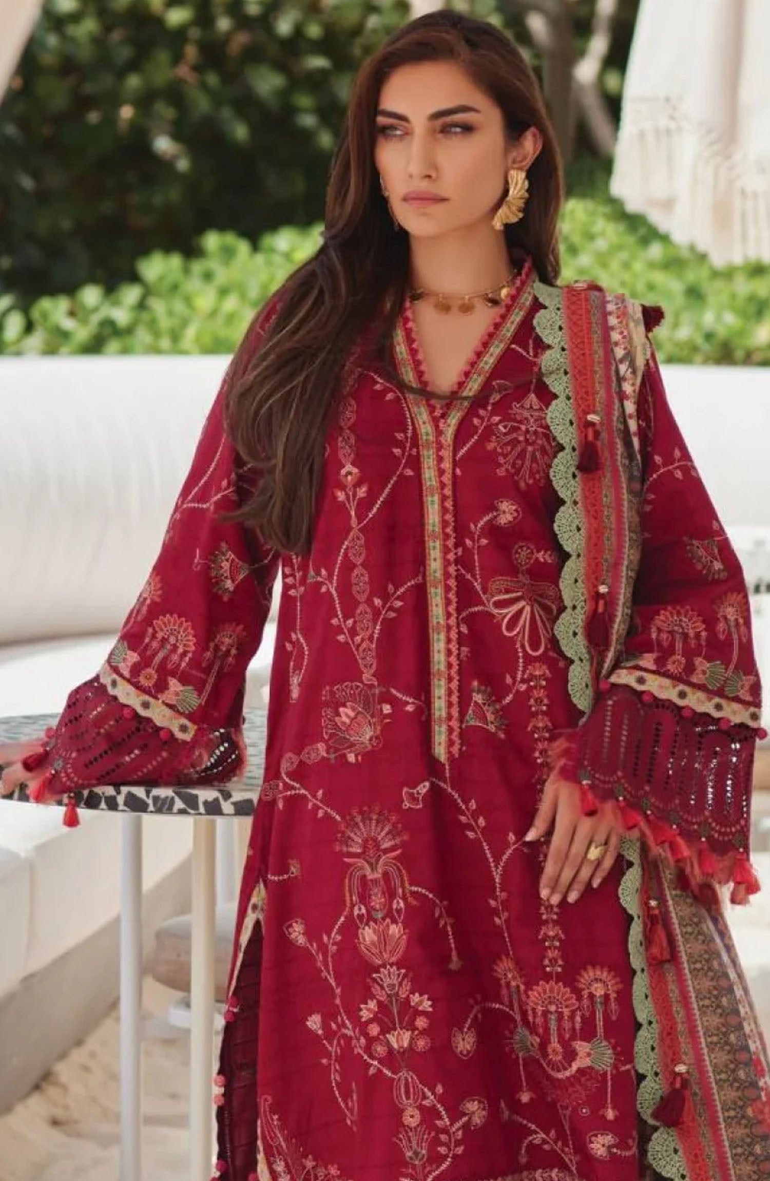 Home Wes by Farah Talib Embroidered Lawn Suits Unstitched 3 Piece FTA-10 Rosemary Red FTA25WL - Red - Luxury Collection