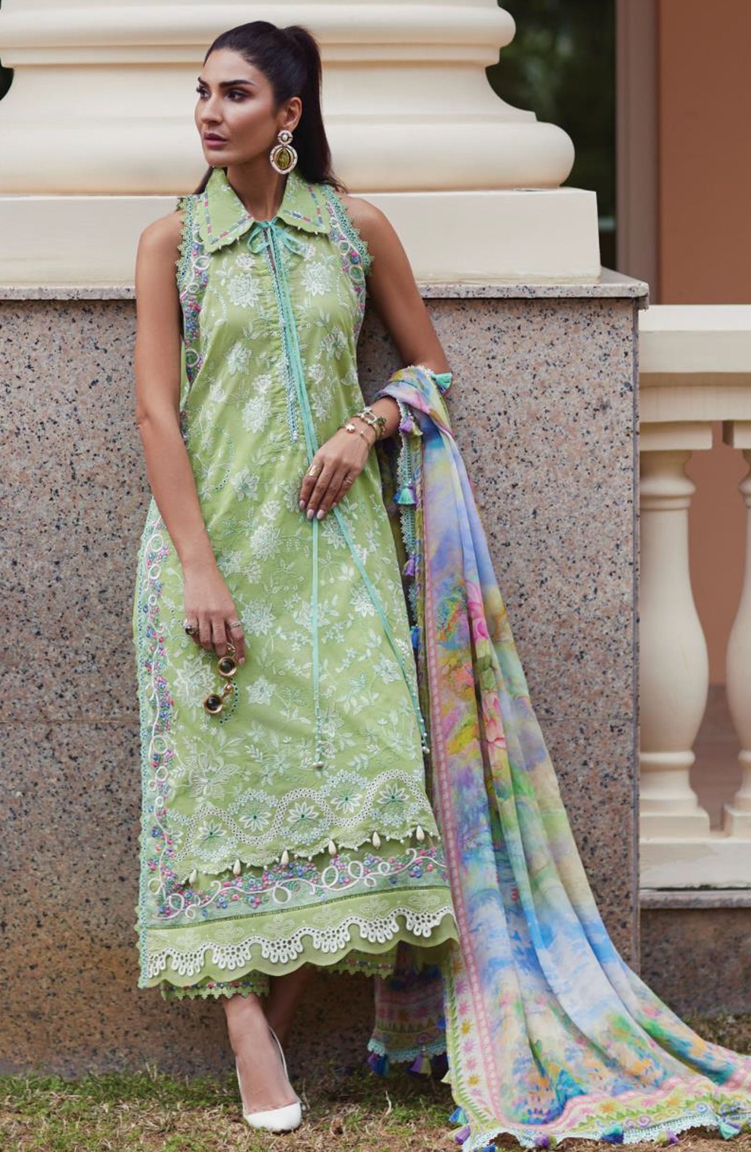 Wes by Farah Talib Embroidered Lawn Suits Unstitched 3 Piece FTA-12 Kiara Kiwi FTA25WL - Green - Luxury Collection