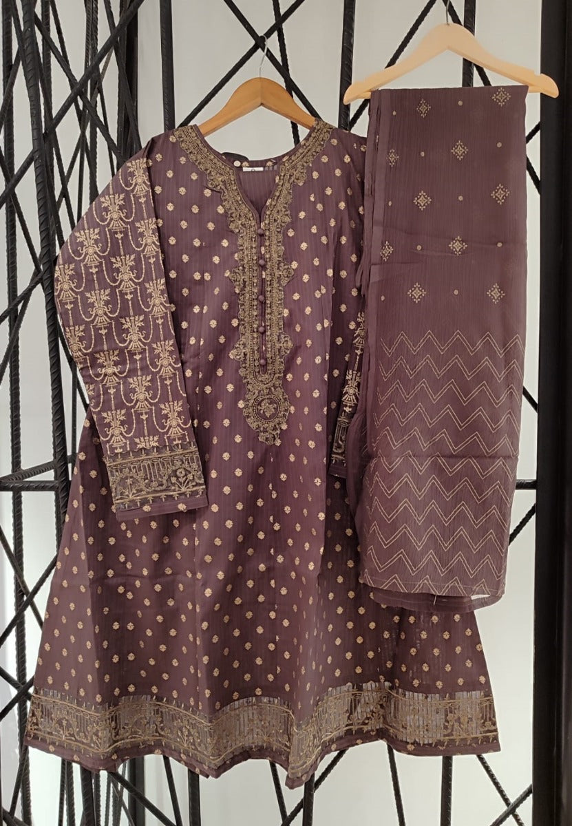 The standard style comes as a long-sleeved kameez with dupatta and trouser/shawlar.
