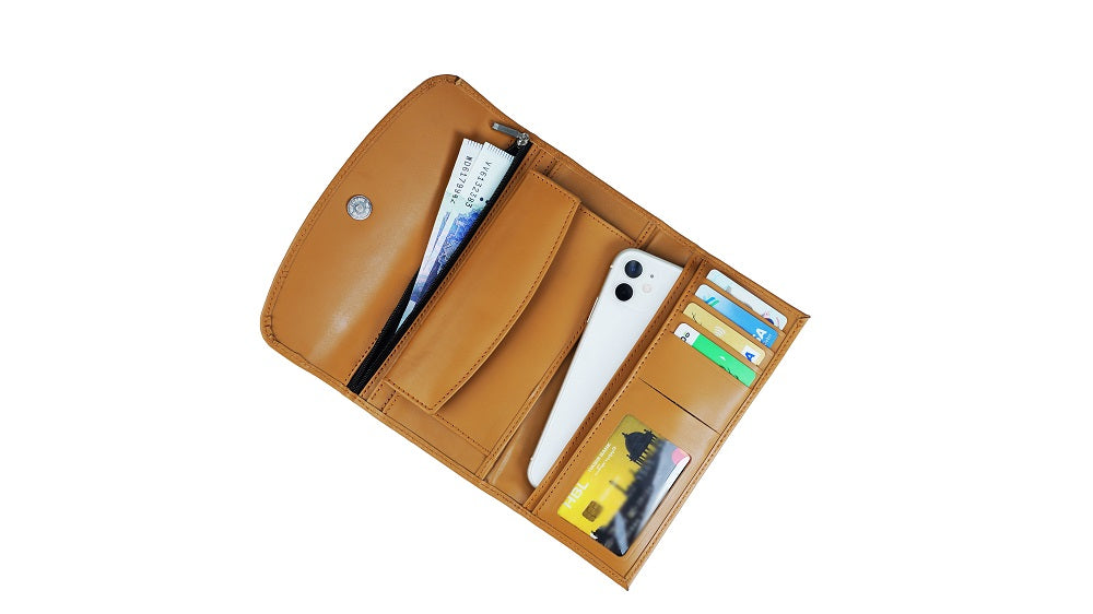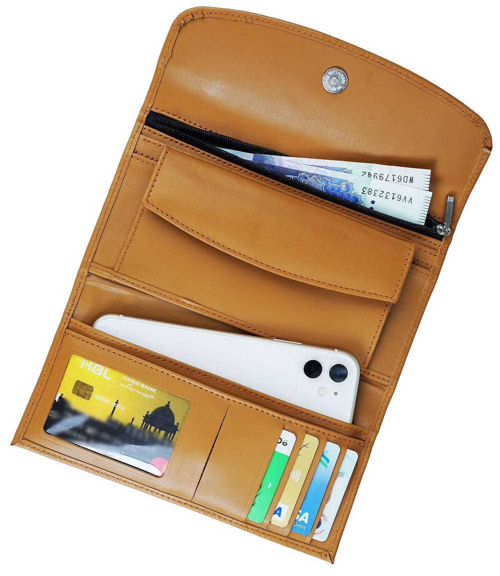 Keep your Mobile phone ID, cards, and cash safe and well-organized in this long women leather