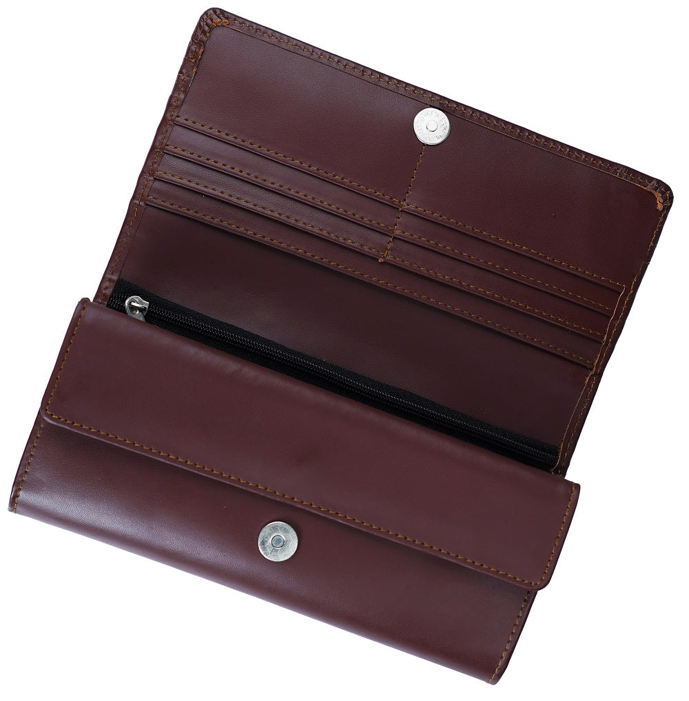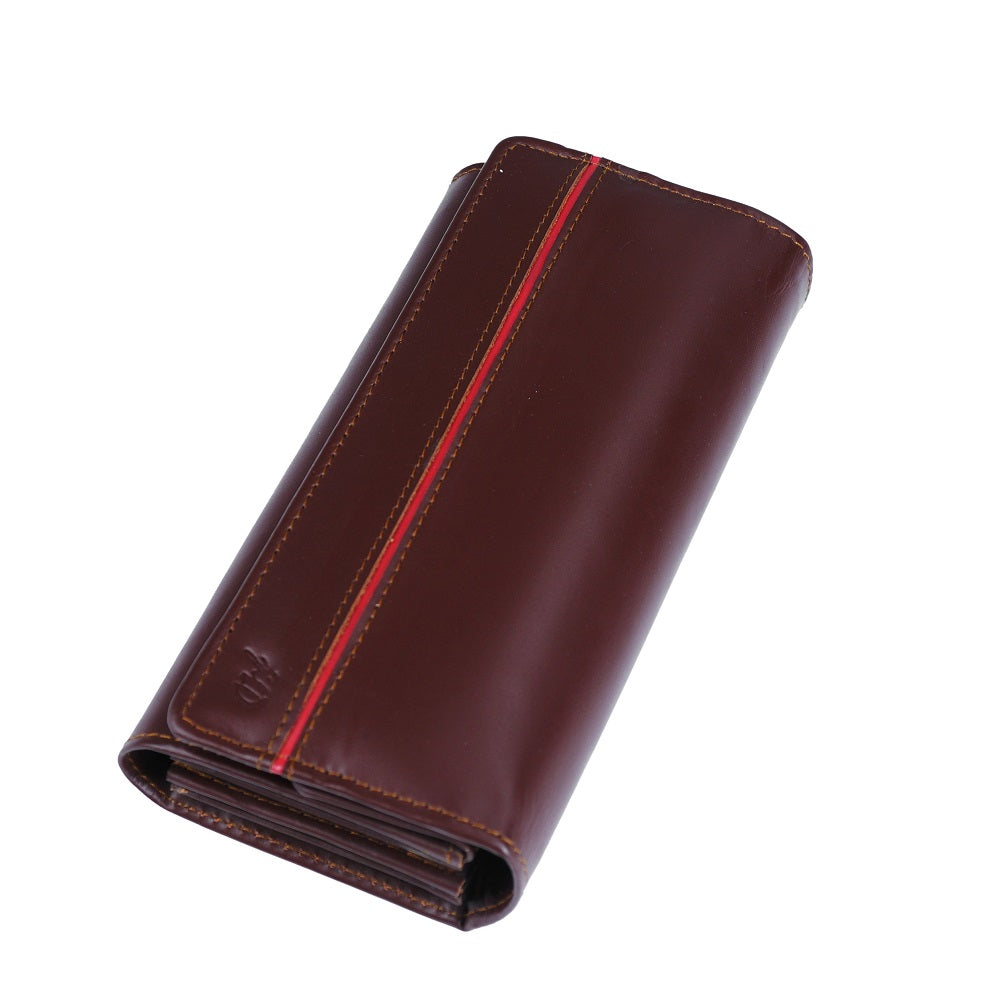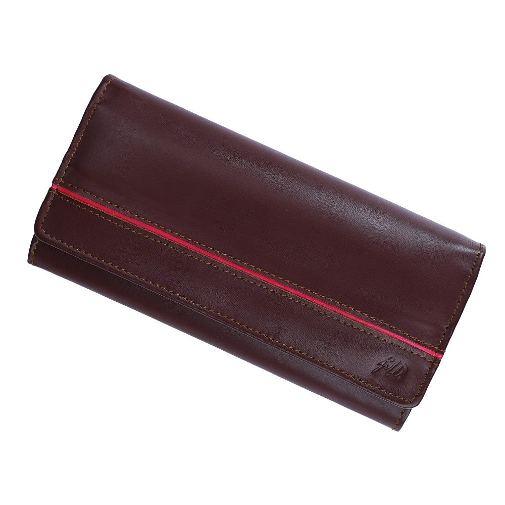 Home Women Round Stripe Leather Clutch Long Wallet PIPIN BURGUNDY