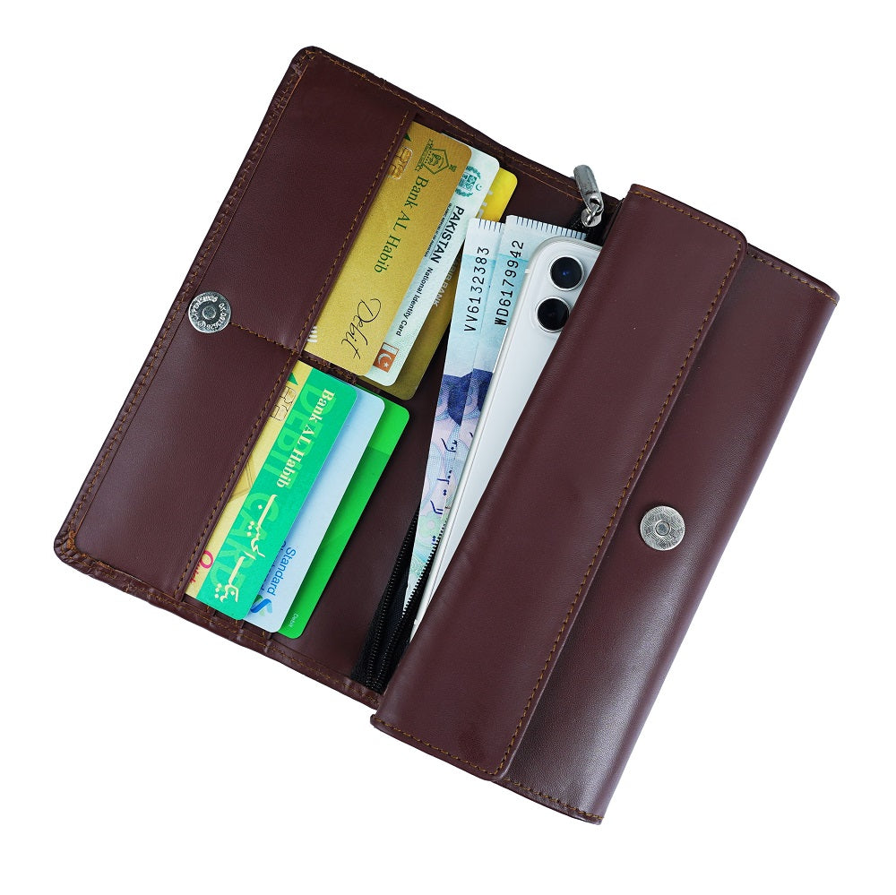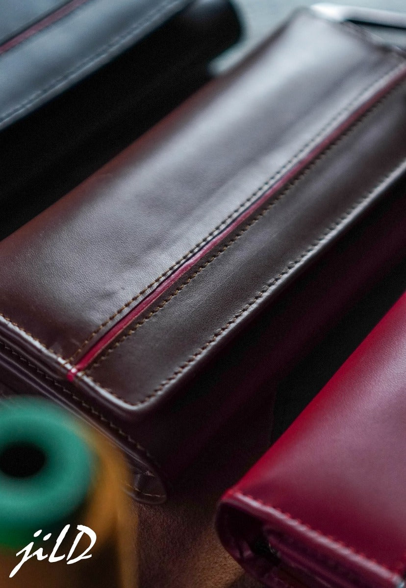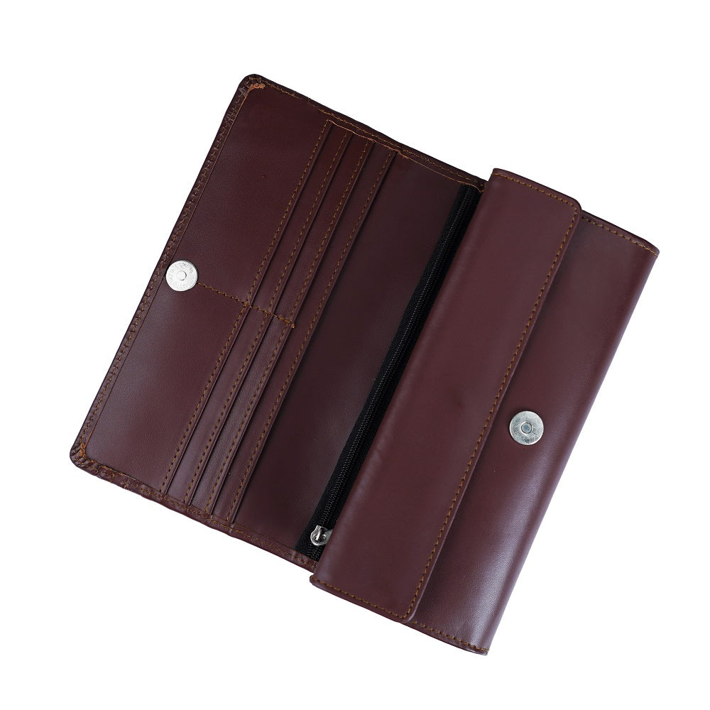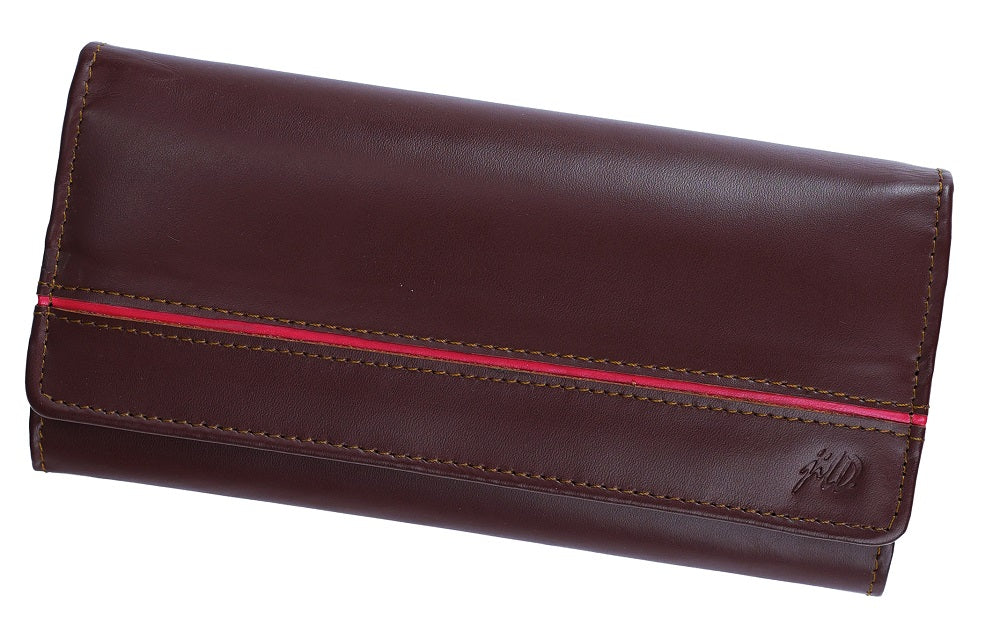 Home Women Round Stripe Leather Clutch Long Wallet PIPIN BURGUNDY