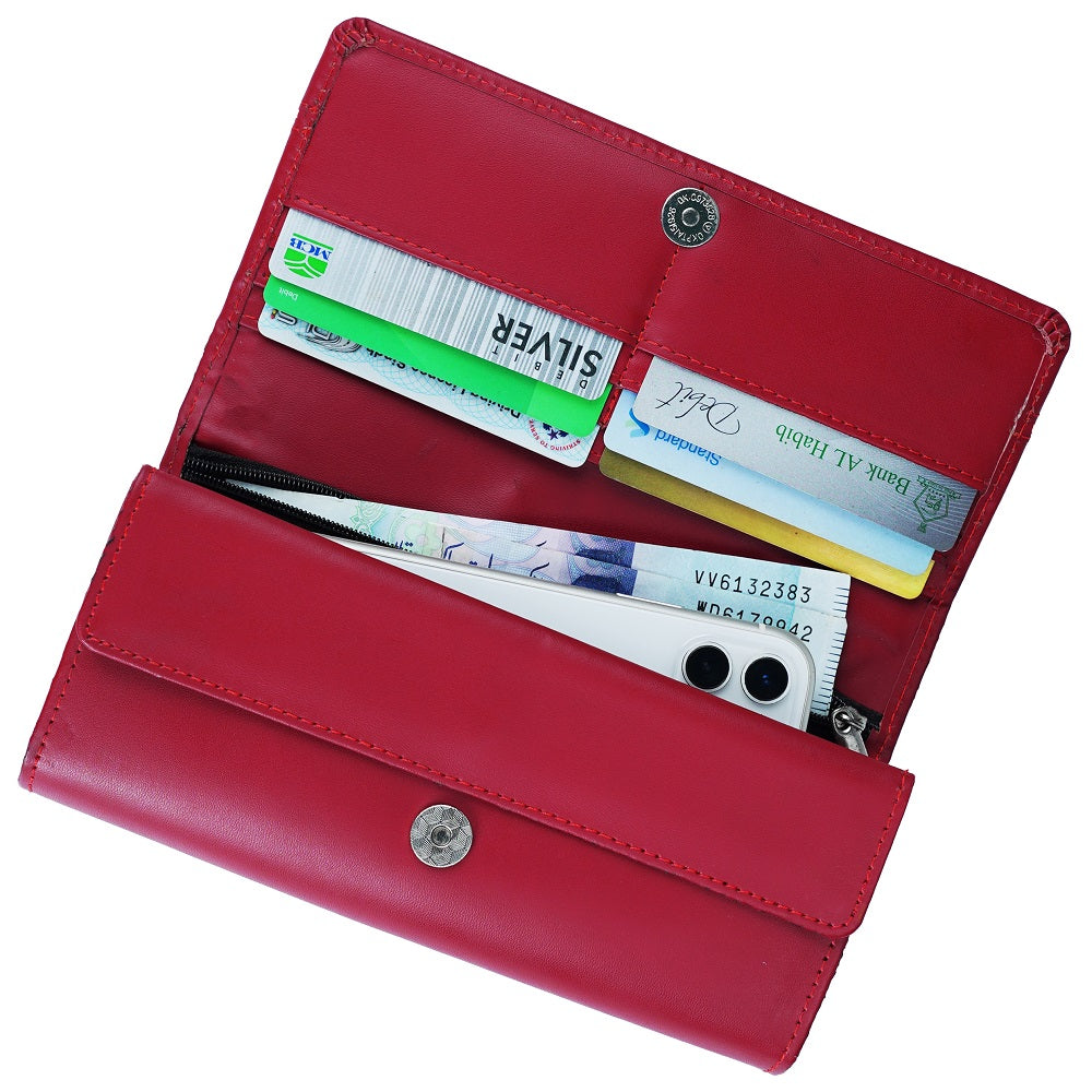 Keep your Mobile phone ID, cards, and cash safe and well-organized in this long women leather