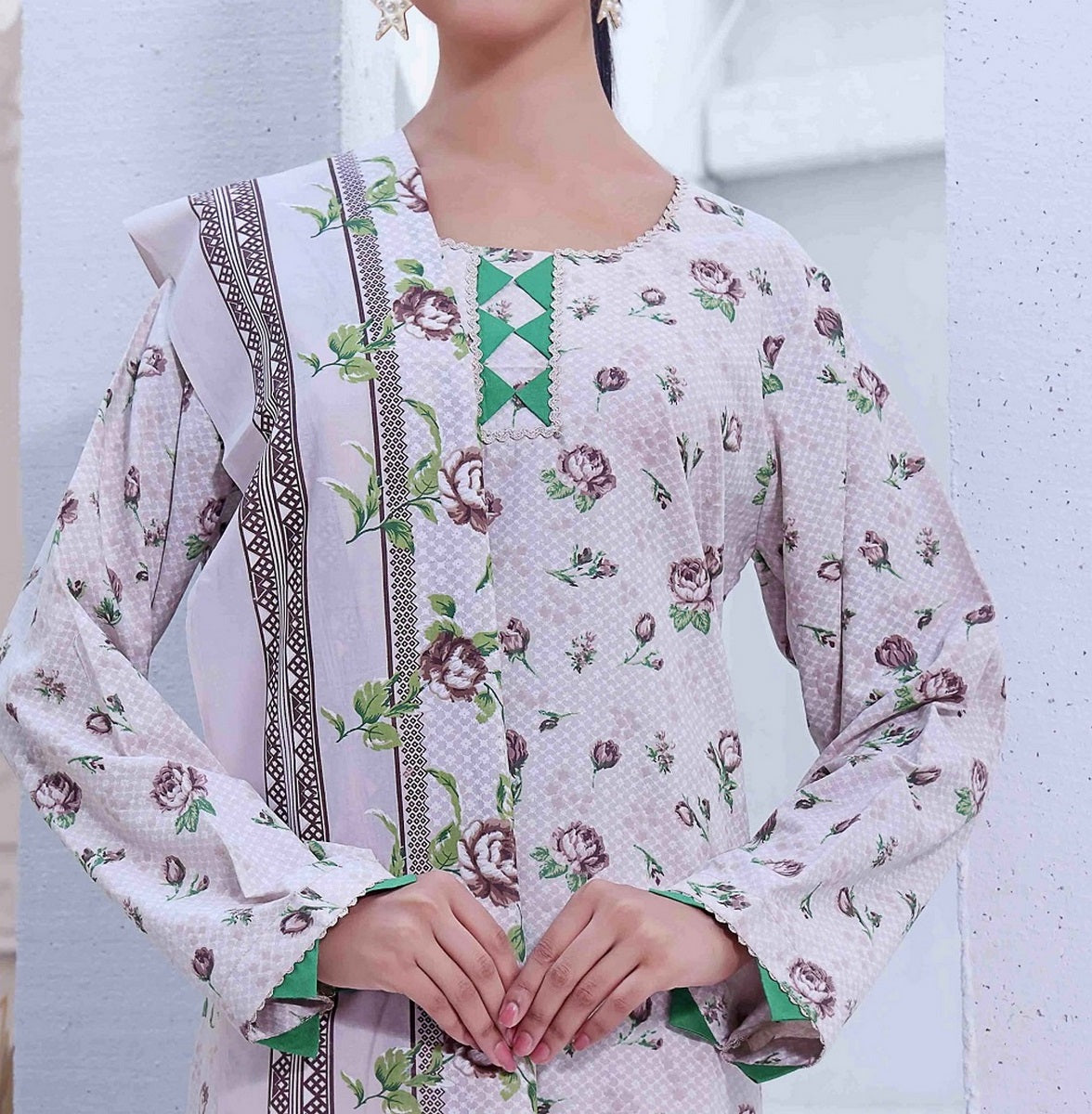 Amna Khadija Wrinkle Free Print Collection Vol 14 has been styled in the image for photography and illustrative purposes.