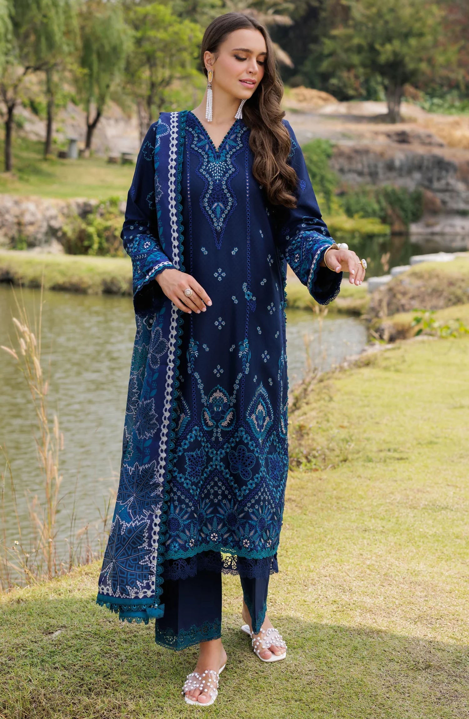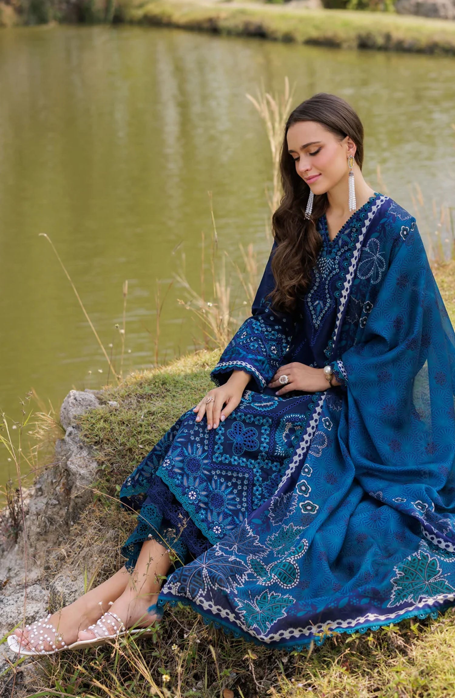 Xenia Embroidered Lawn Unstitched 3 Piece Suit - Murcia - XF25LL - Blue - Summer Collection