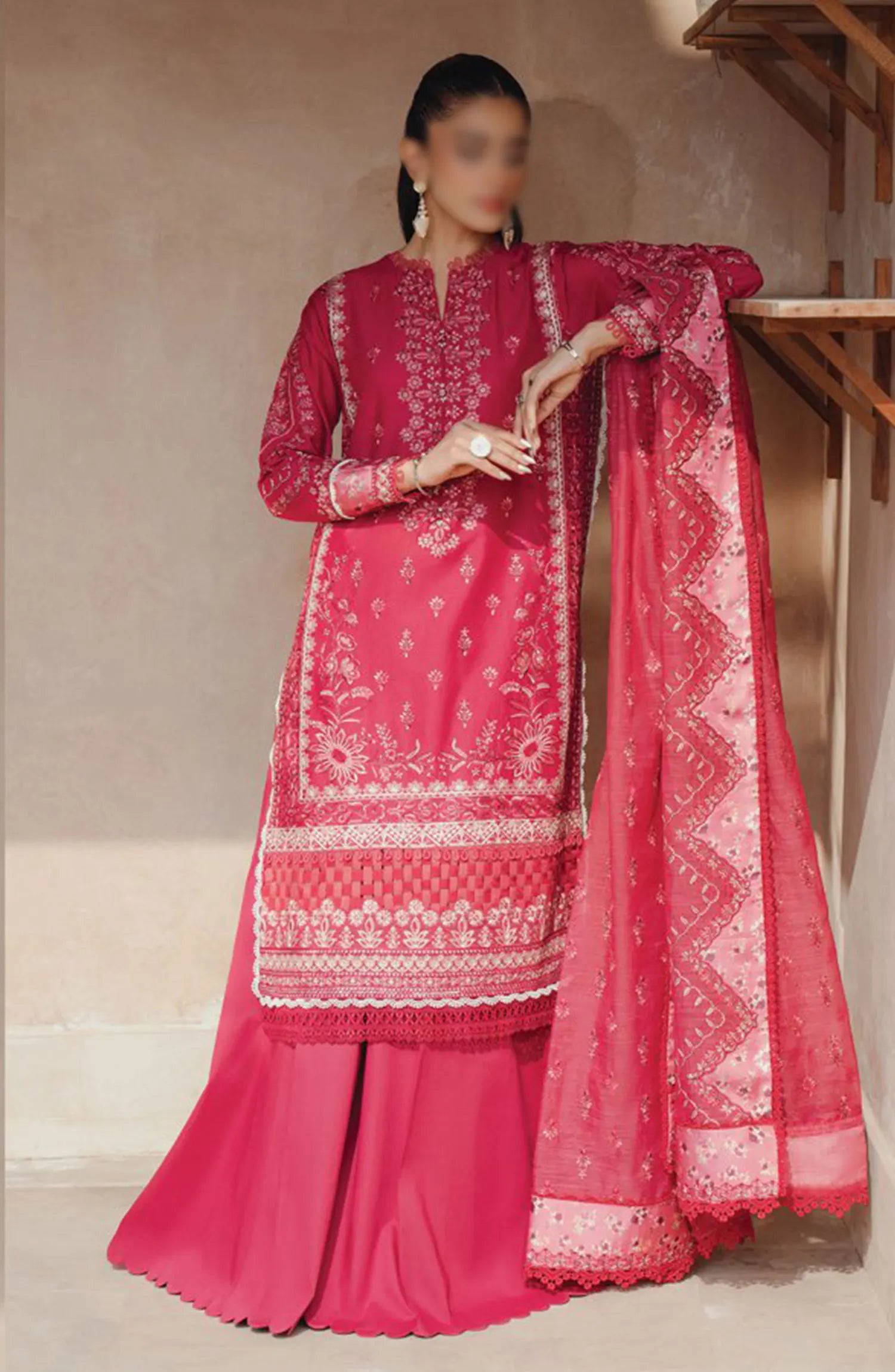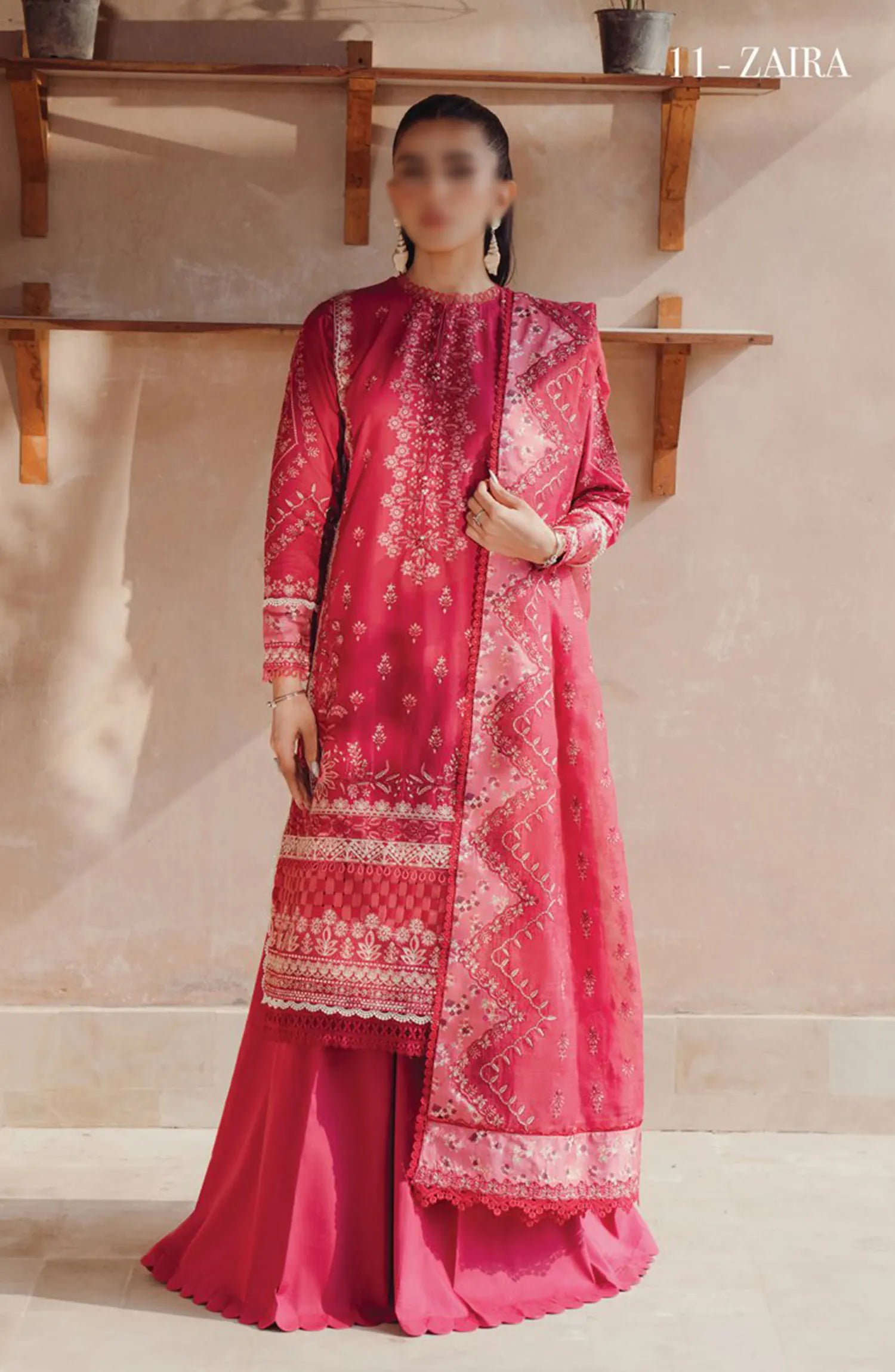 Xenia Farozaan Unstitched Lawn 2024 has been styled in the image for photography and illustrative purposes.