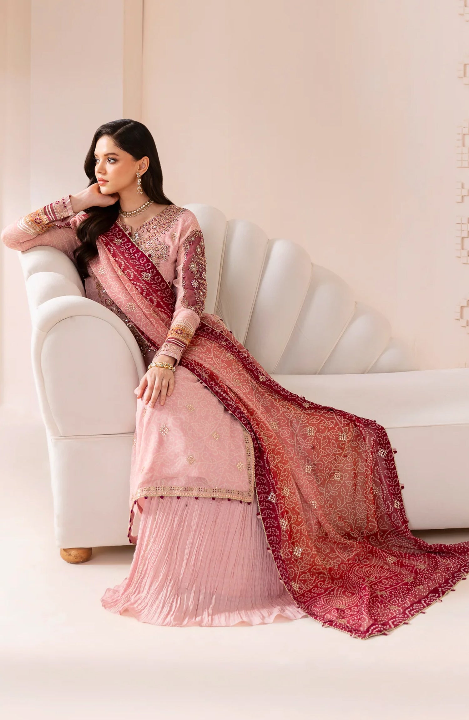 Xenia Formals Embroidered Chiffon Unstitched 3 Piece Suit - 01-Raniza - XF25FES - Pink - Luxury Festive Collection