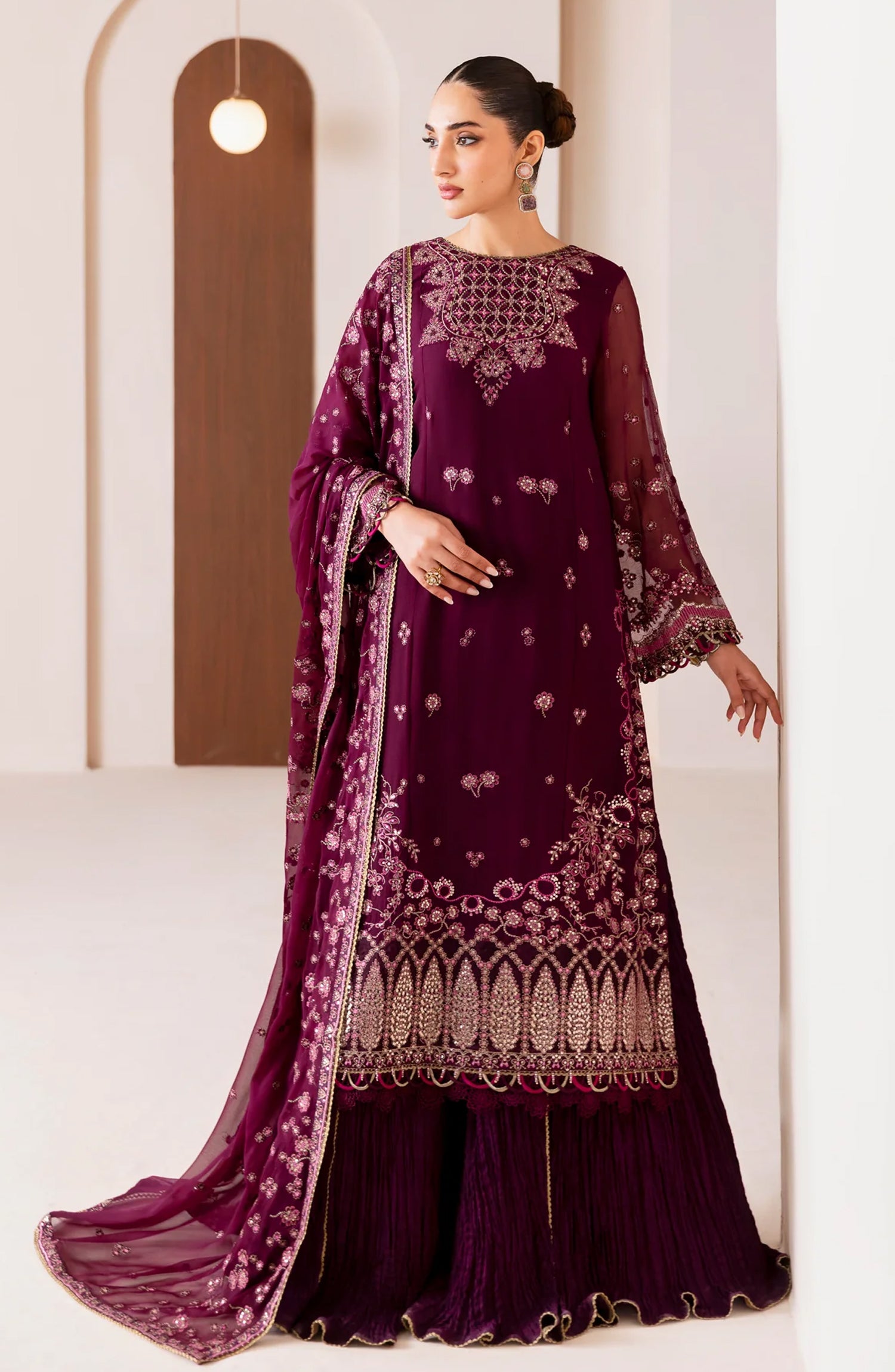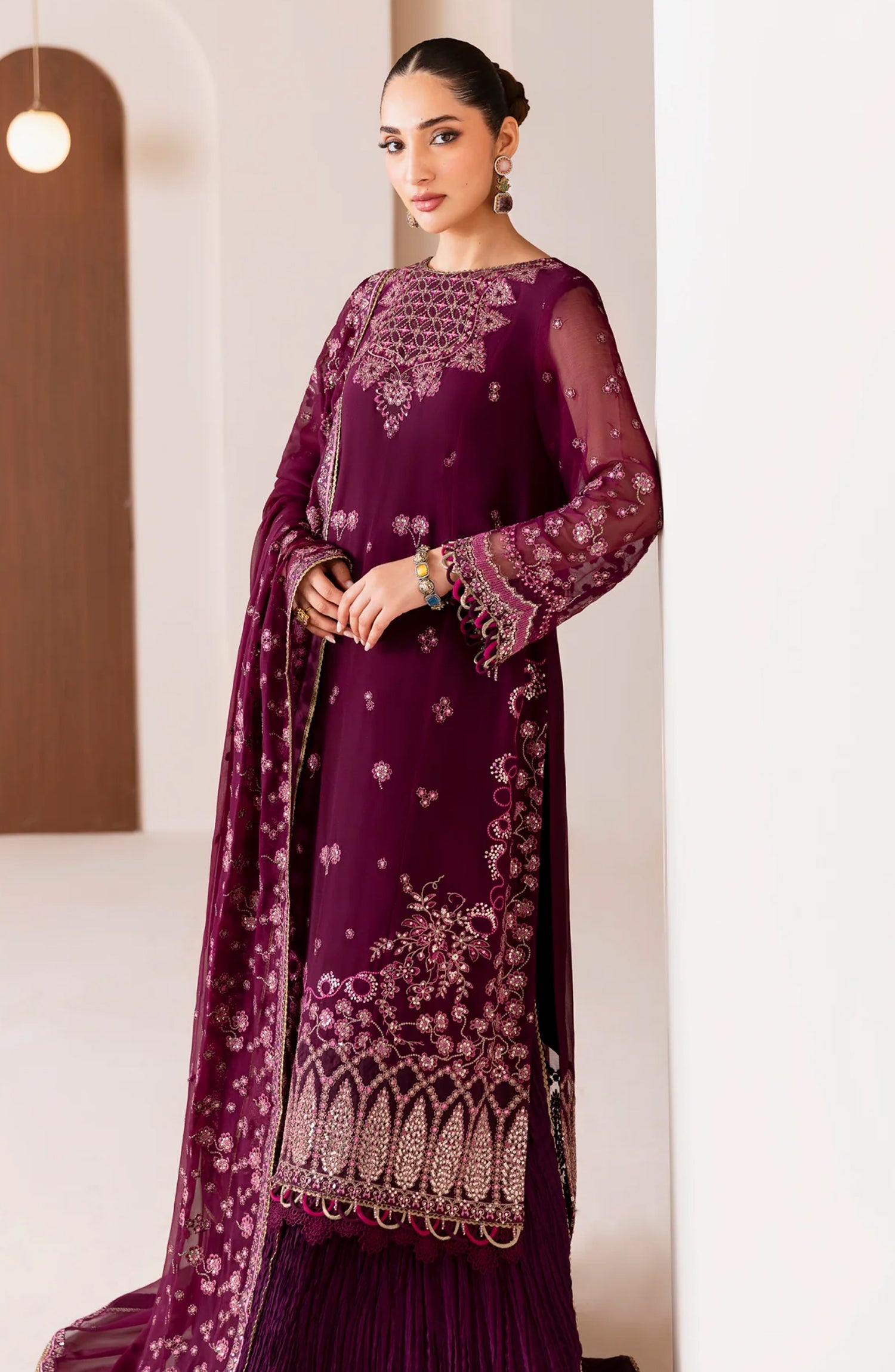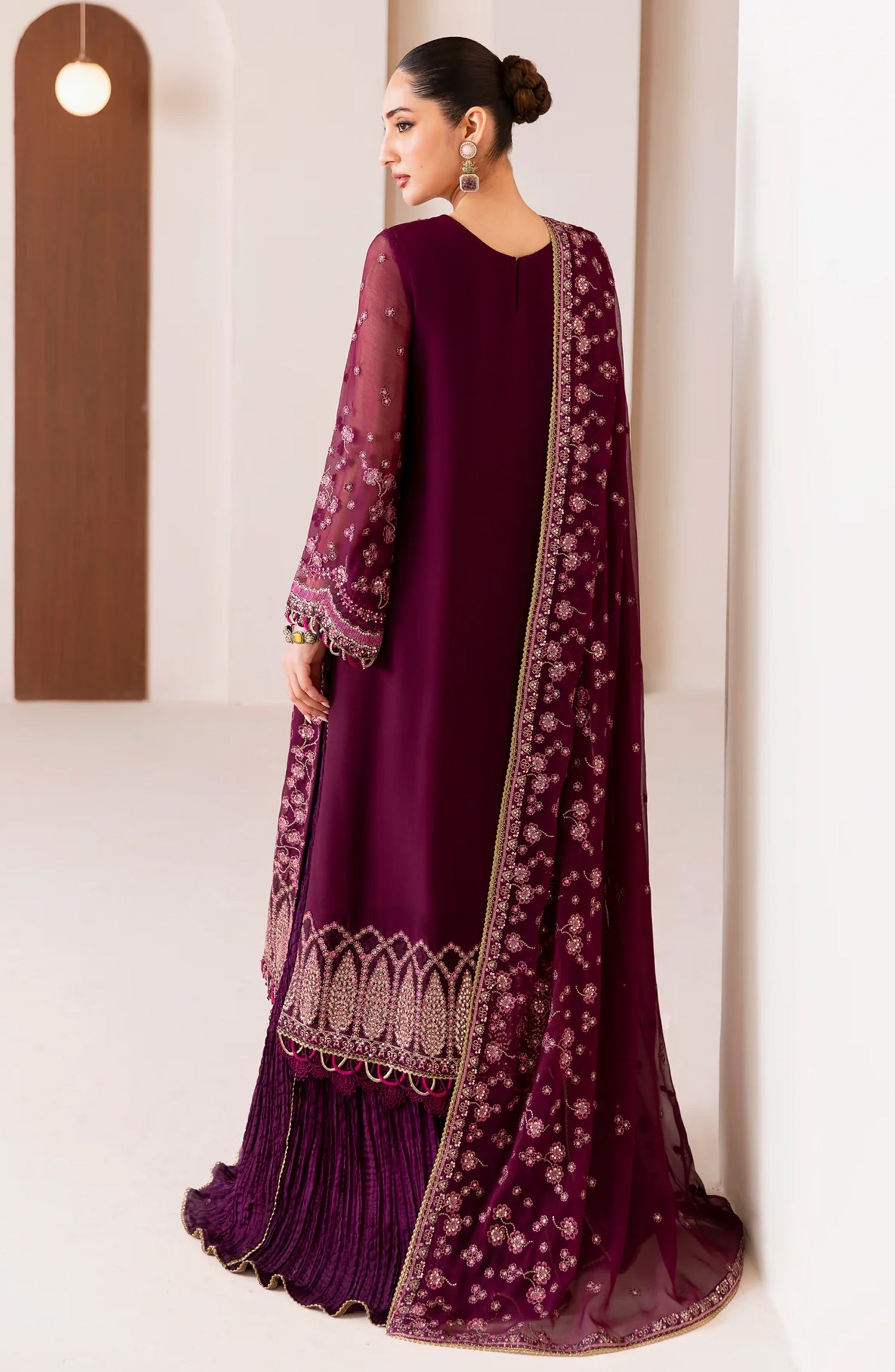 Xenia Formals Embroidered Chiffon Unstitched 3 Piece Suit - 05-Aroosh - XF25FES - Purple - Luxury Festive Collection