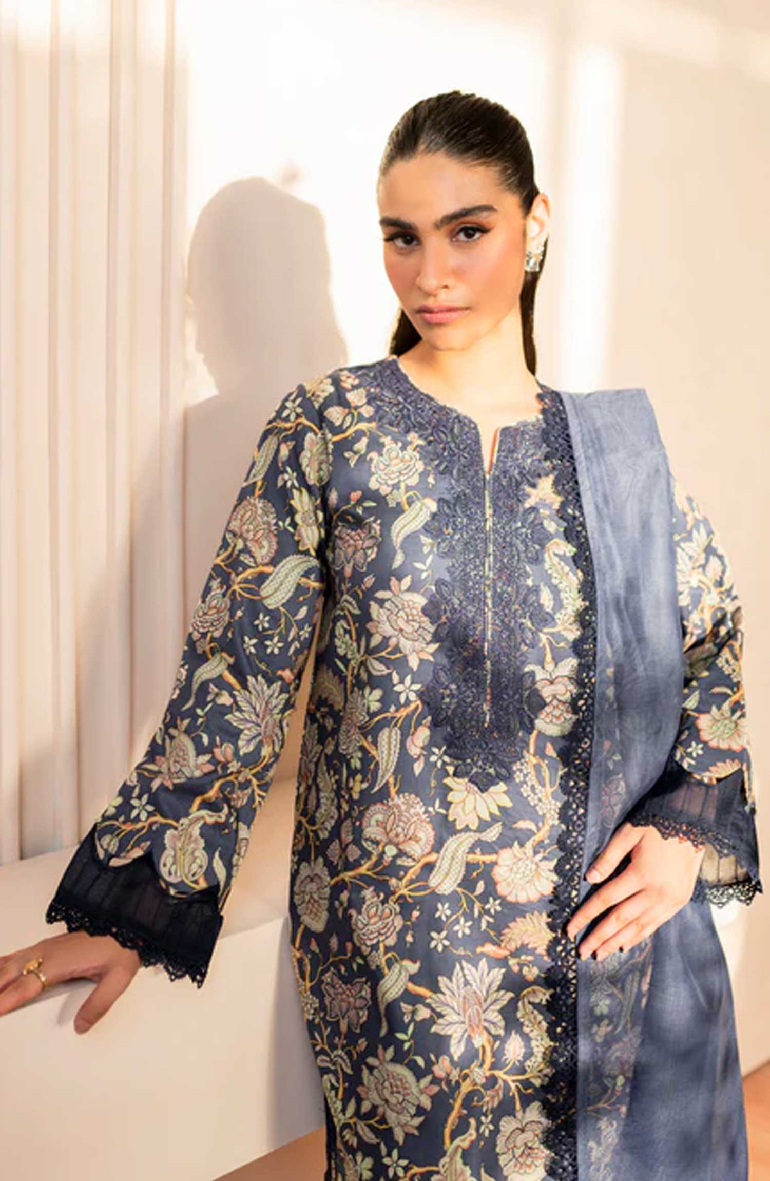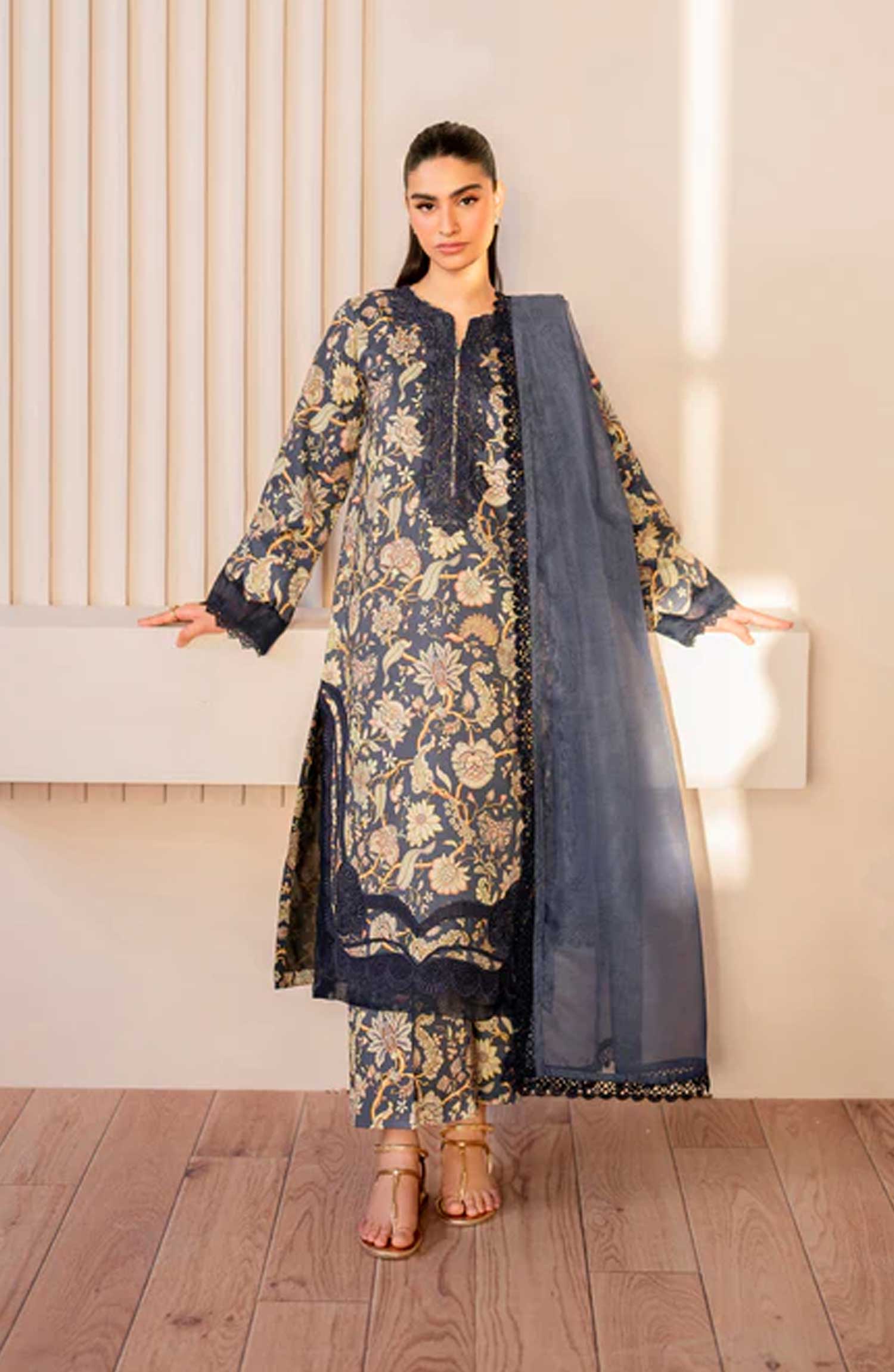 Xenia Formals Printkari 2025 - Unstitched Lawn Collection has been styled in the image for photography and illustrative purposes.