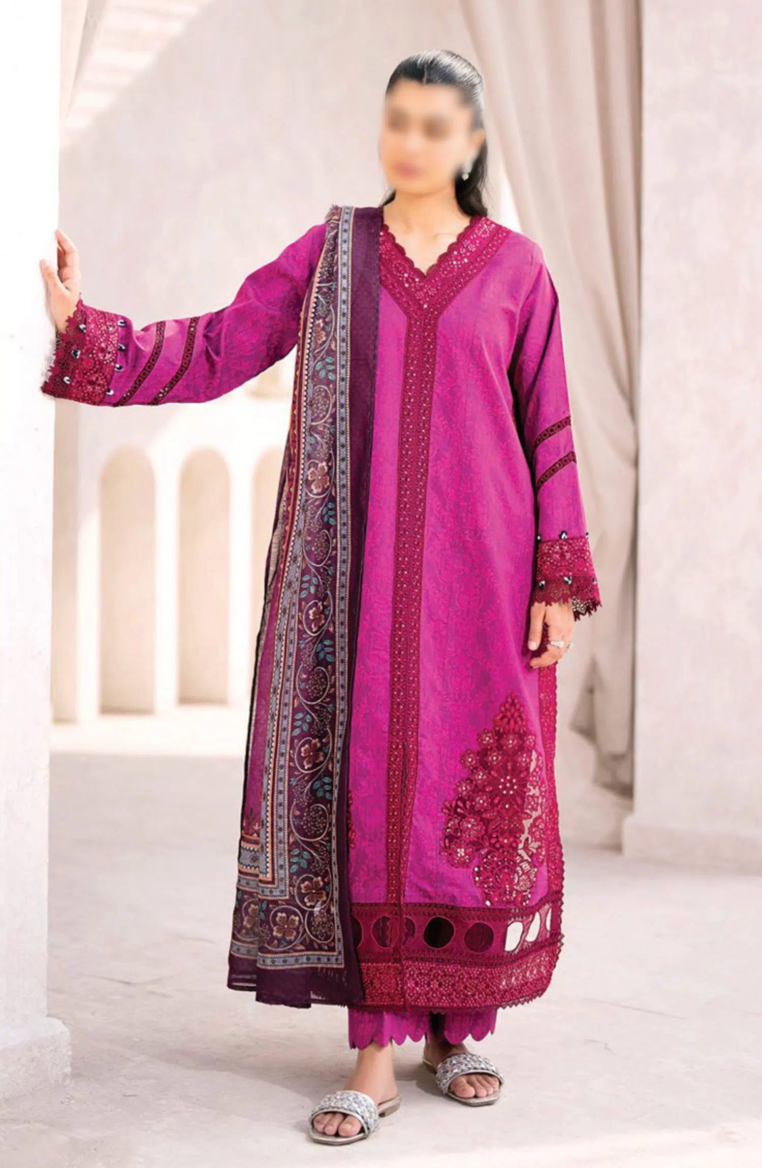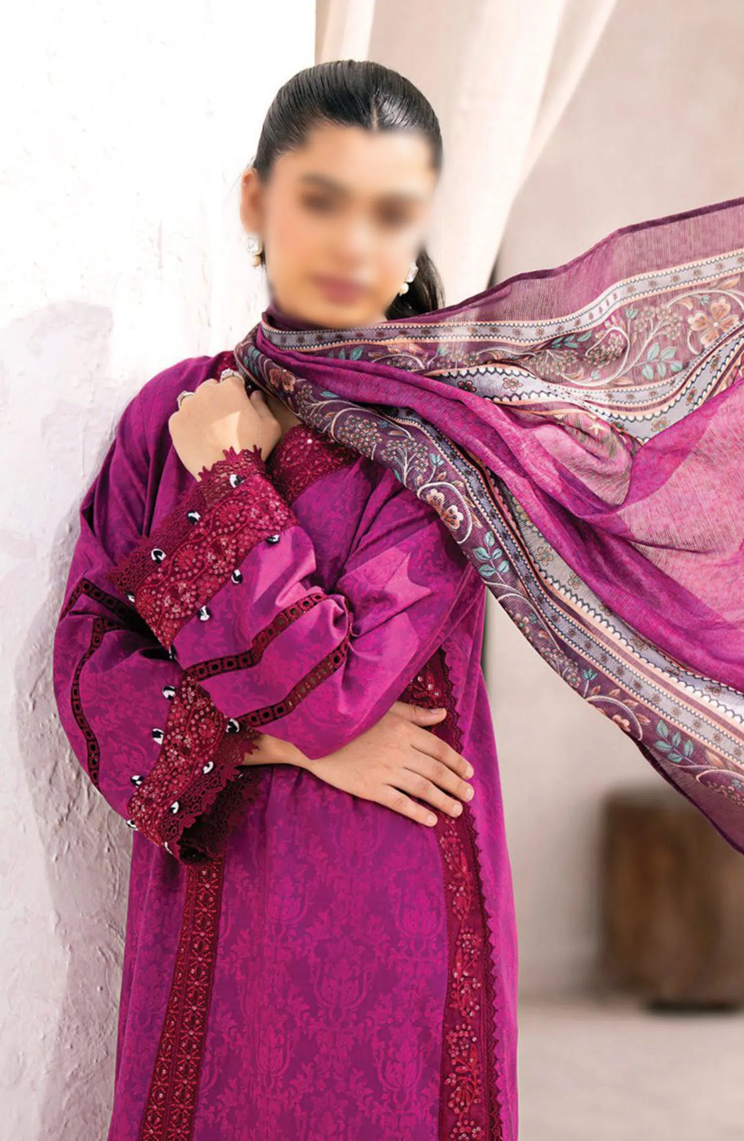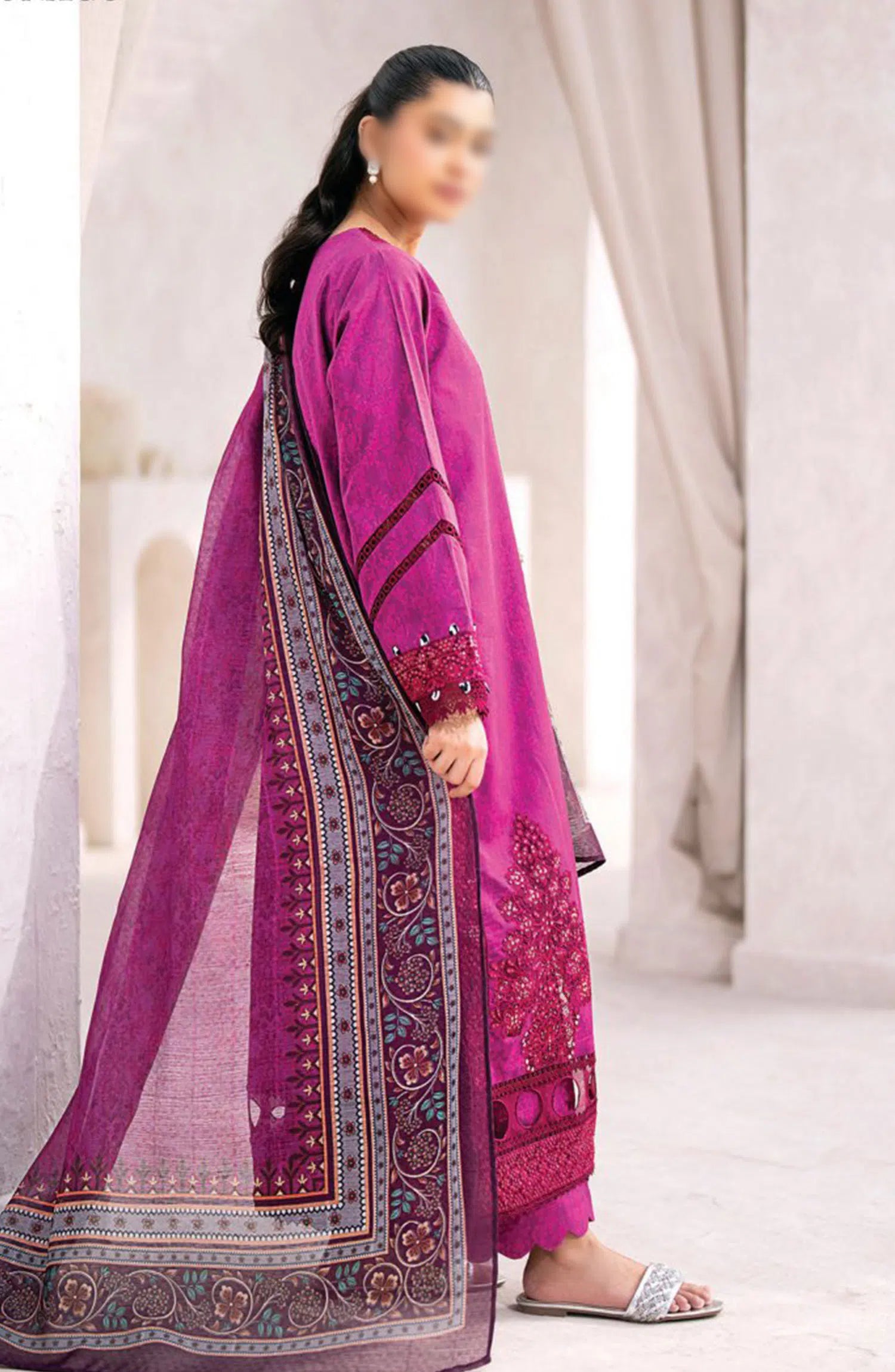 Xenia Formals Summer Soiree Unstitched Lawn Collection 2024 has been styled in the image for photography and illustrative purposes.
