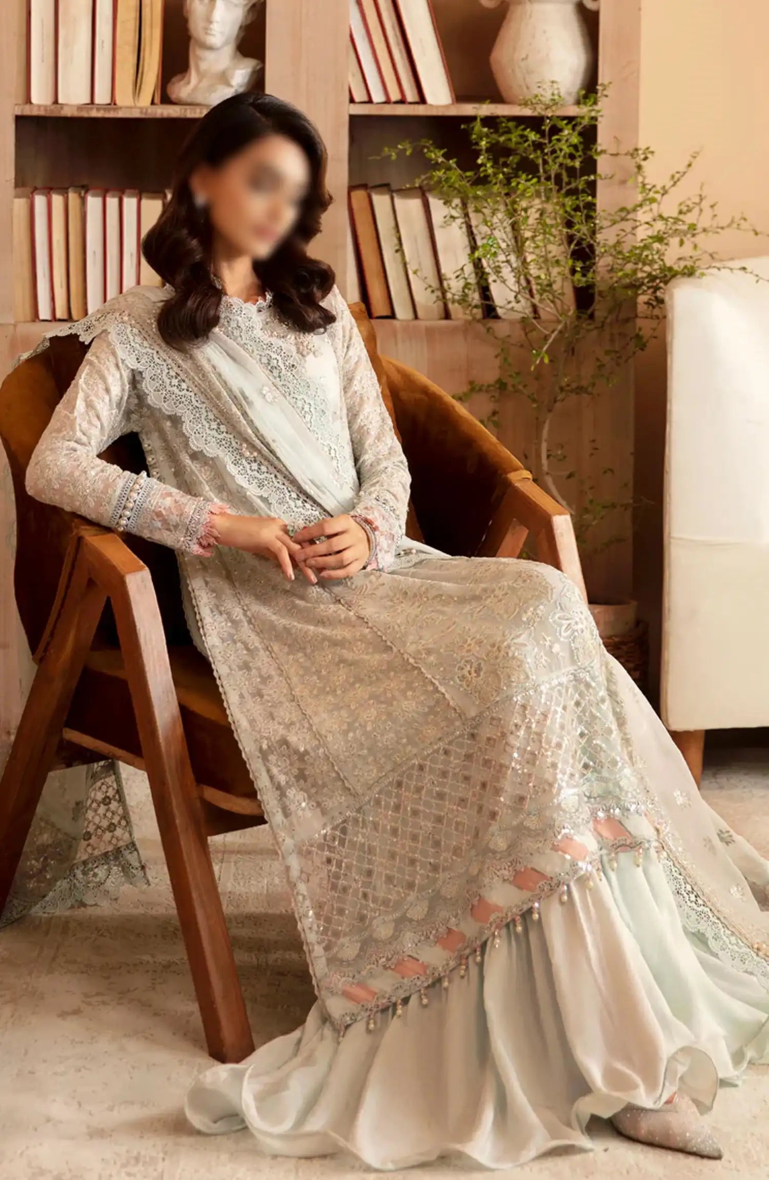 Xenia Raahi Unstitched Luxury Collection 2024 has been styled in the image for photography and illustrative purposes.