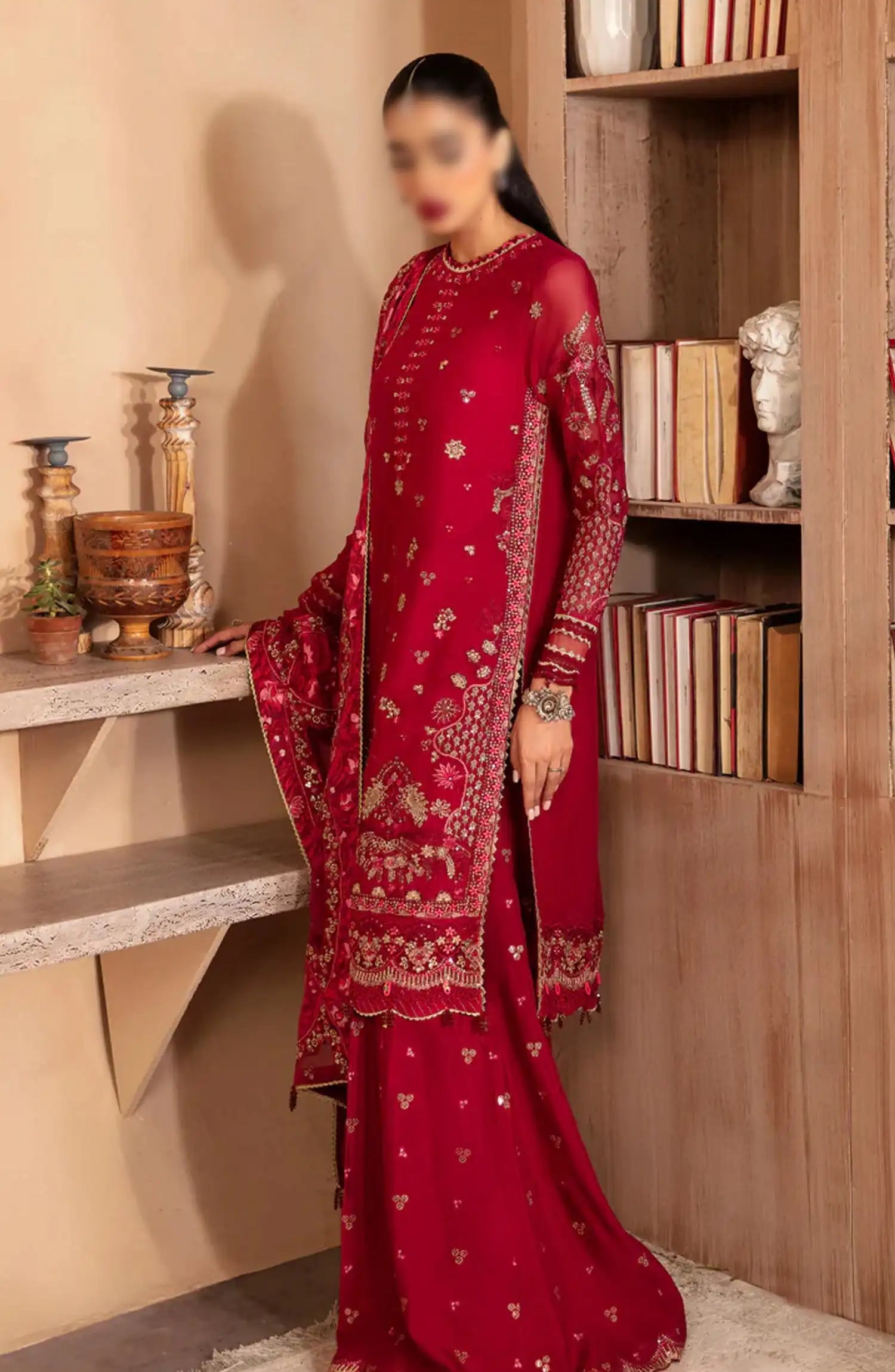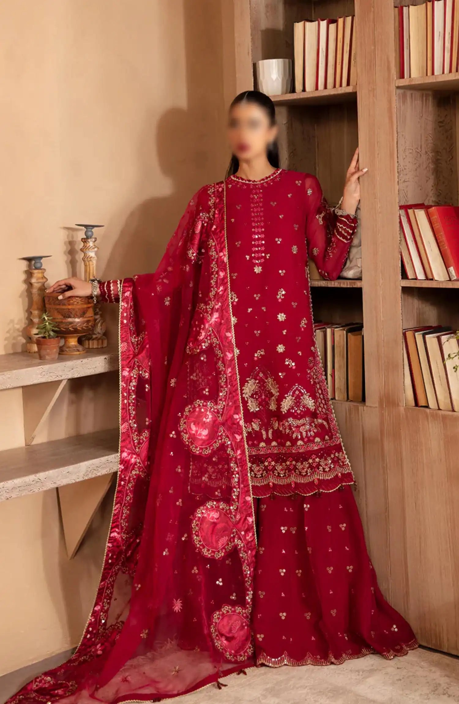 Xenia Raahi Unstitched Luxury Collection 2024 has been styled in the image for photography and illustrative purposes.