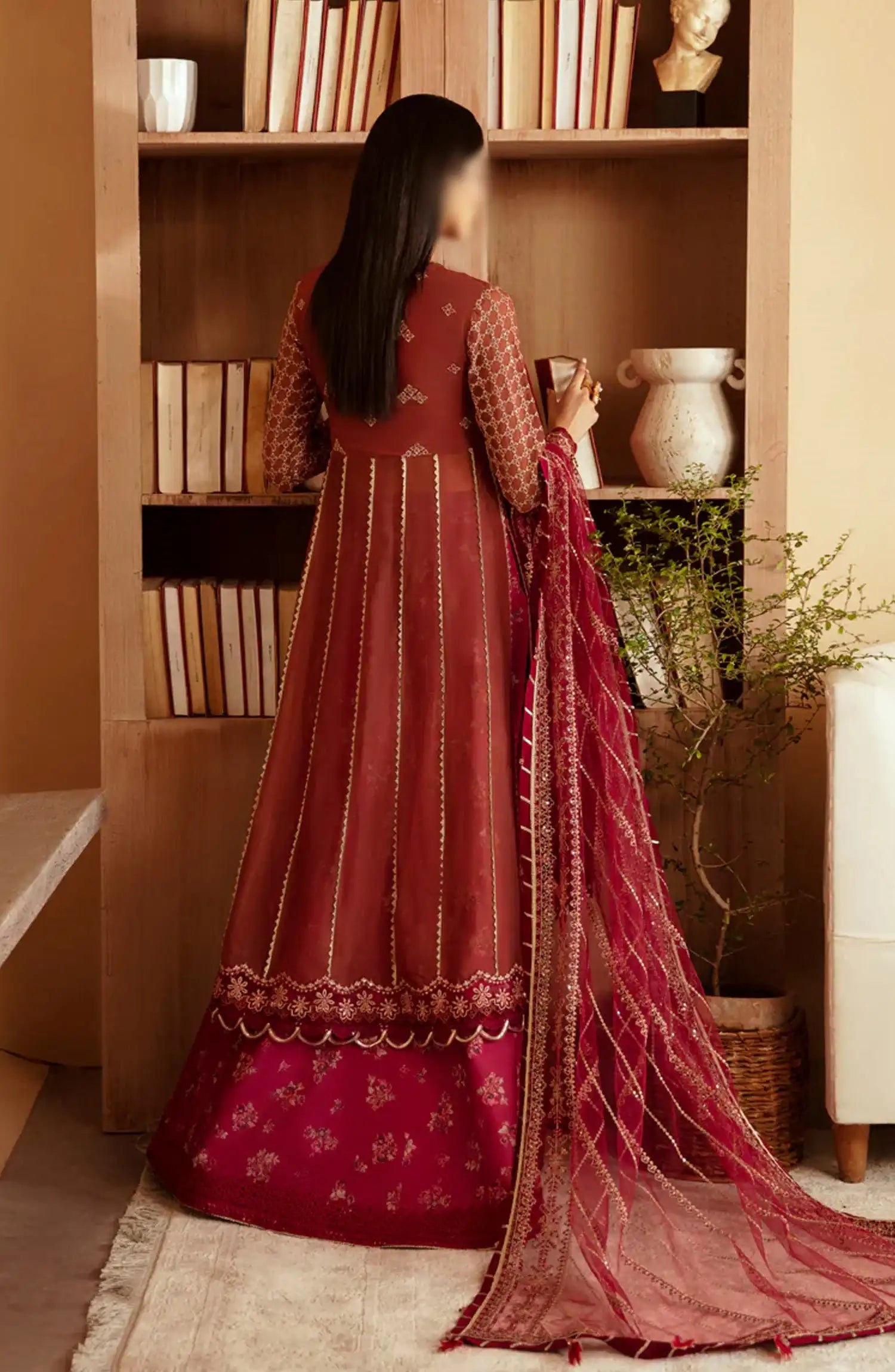 Xenia Raahi Unstitched Luxury Collection 2024 has been styled in the image for photography and illustrative purposes.