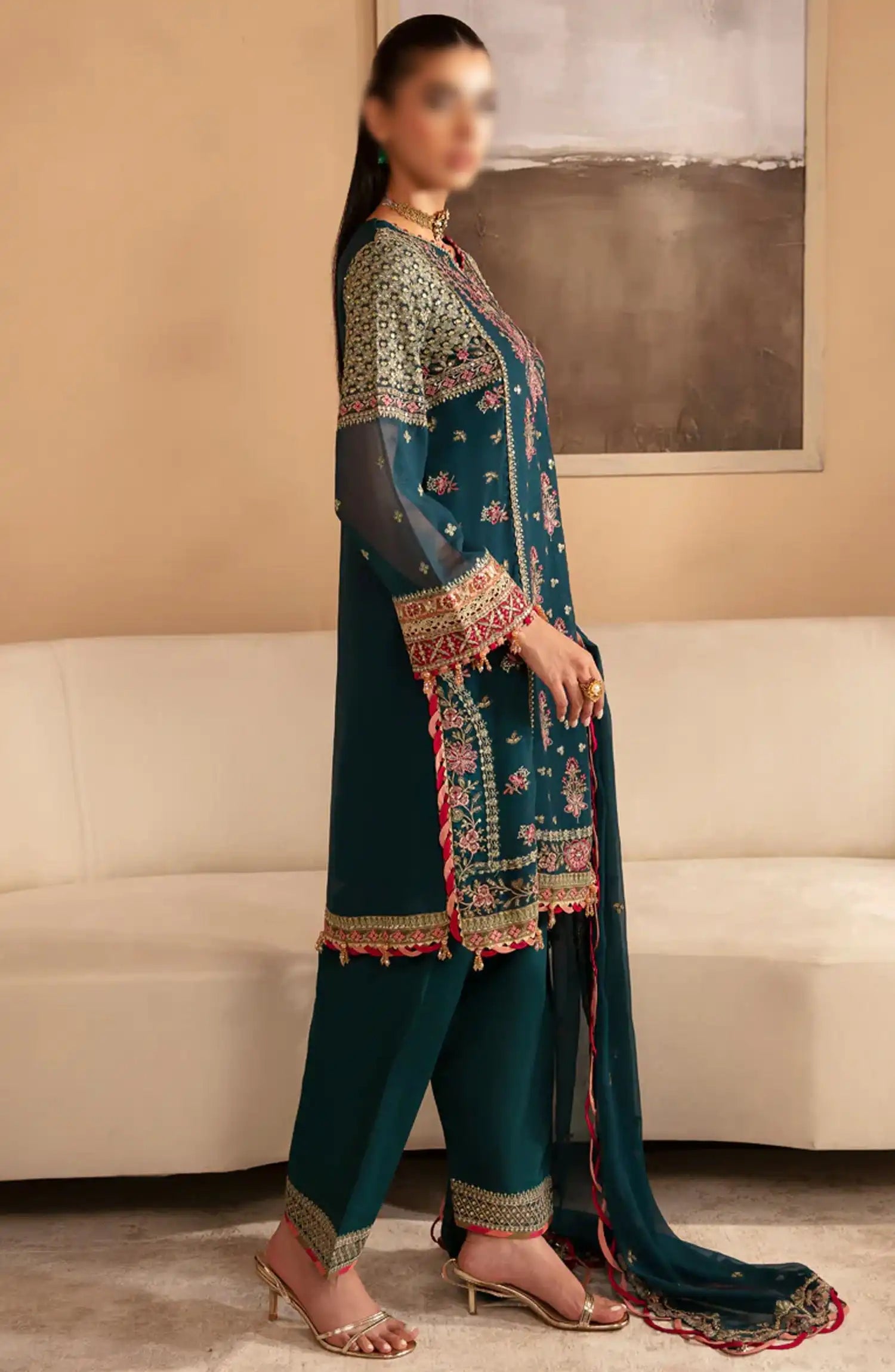 Xenia Raahi Unstitched Luxury Collection 2024 has been styled in the image for photography and illustrative purposes.
