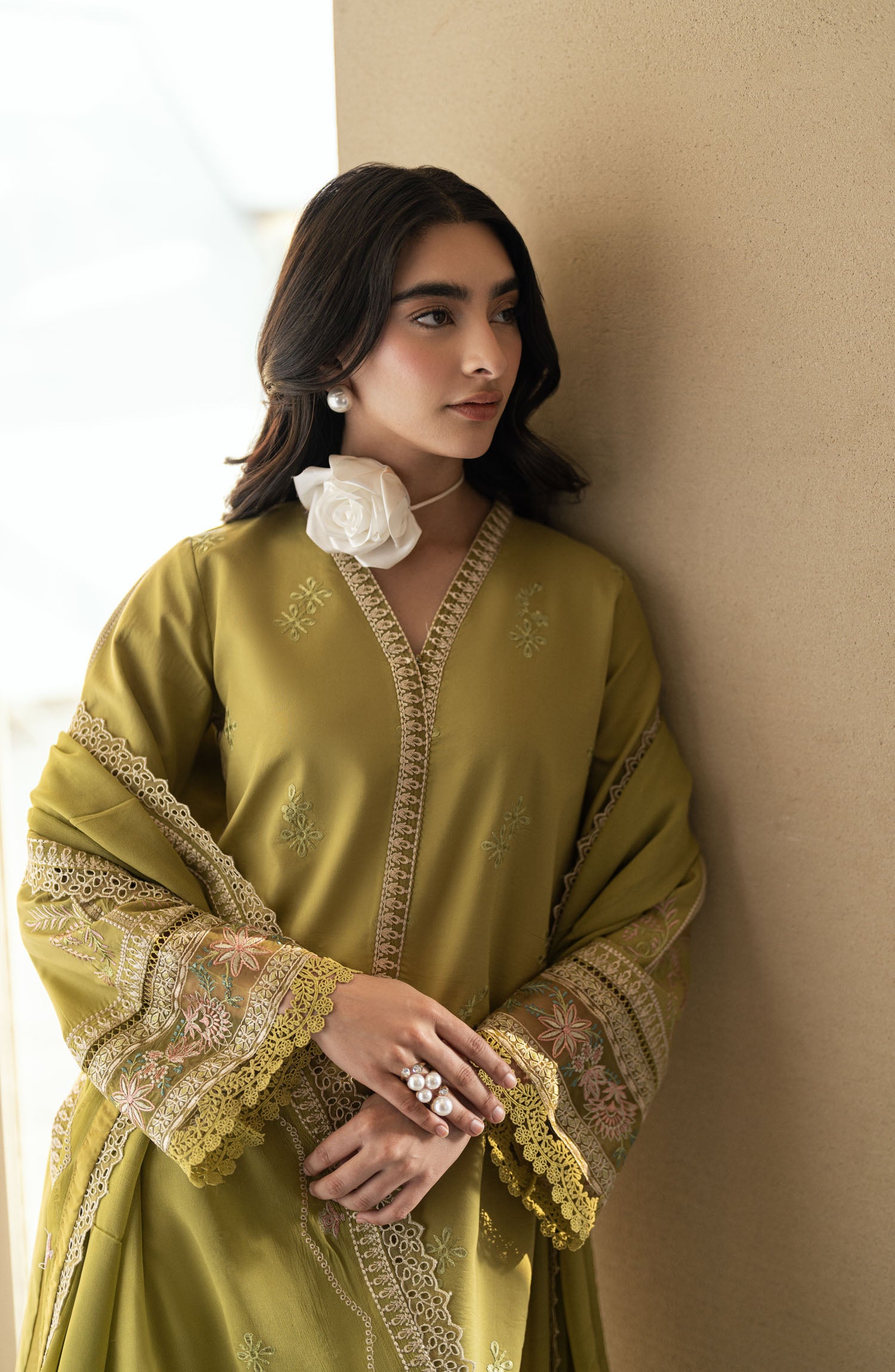 The standard style comes as a long-sleeved kameez with dupatta and trouser/shawlar.