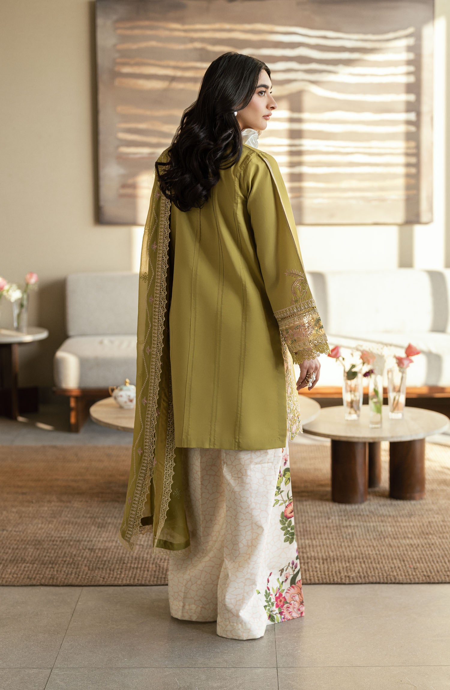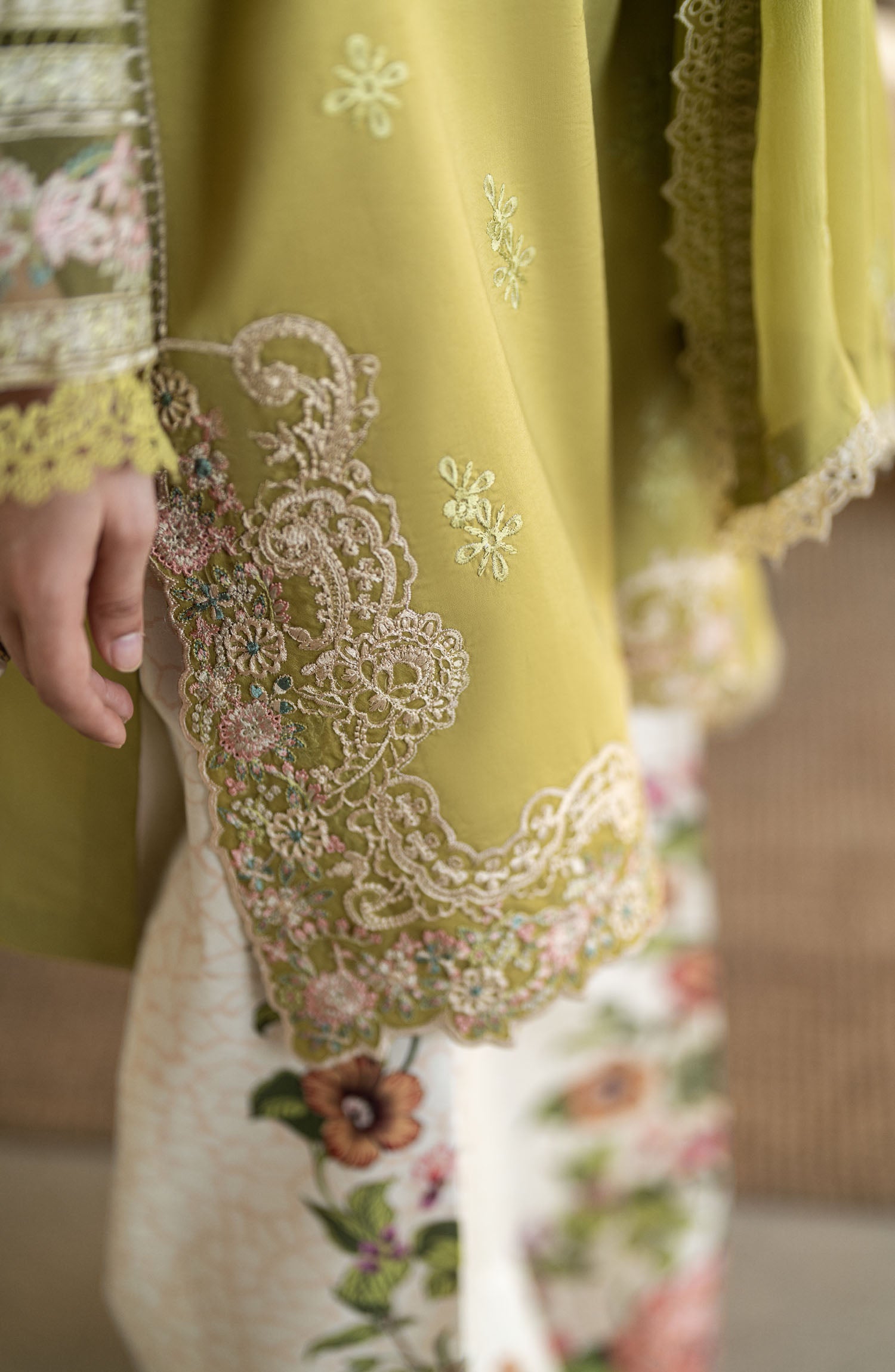 Embroidered Hem Corner Motifs On Organza 2 Piece