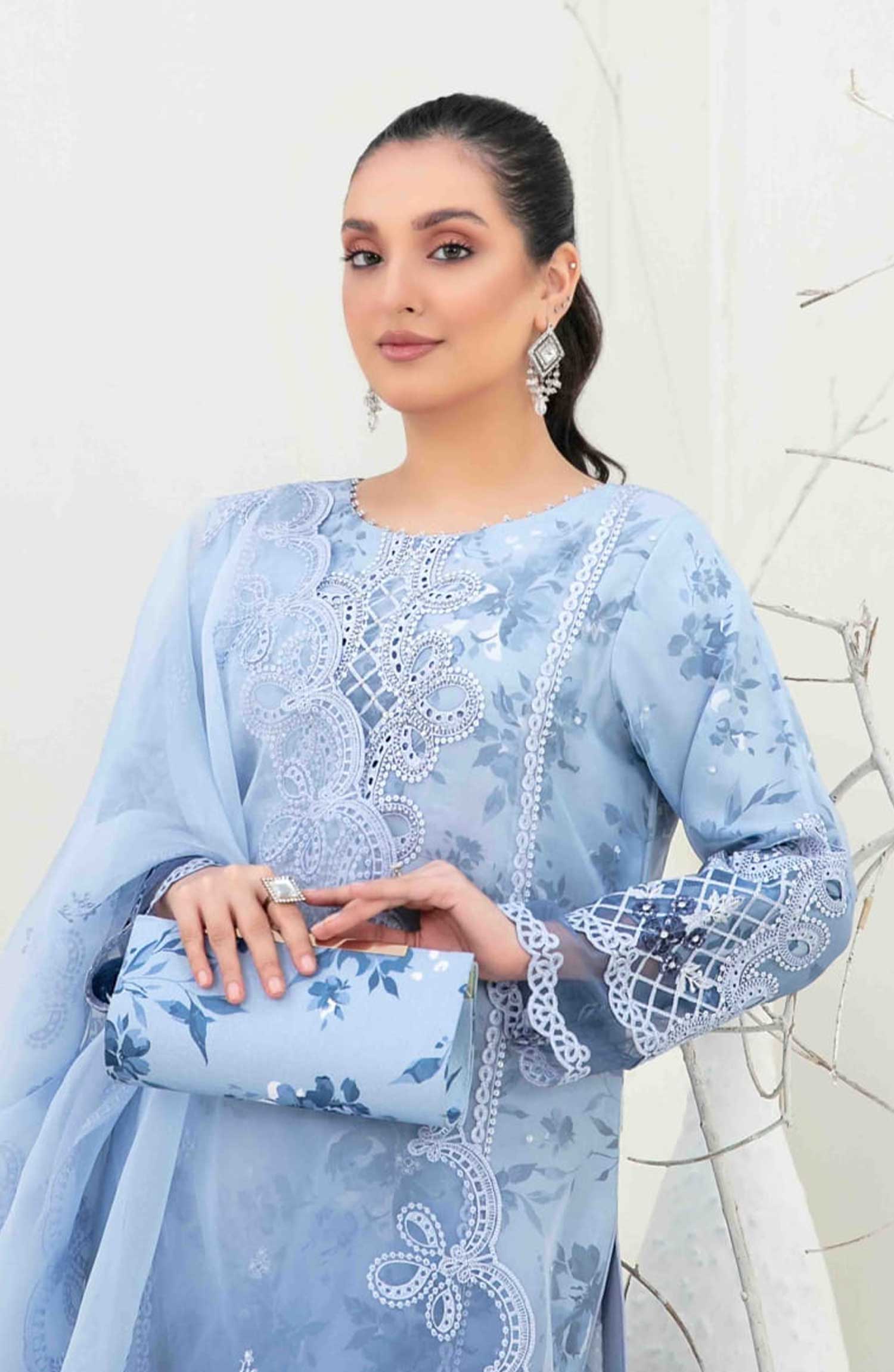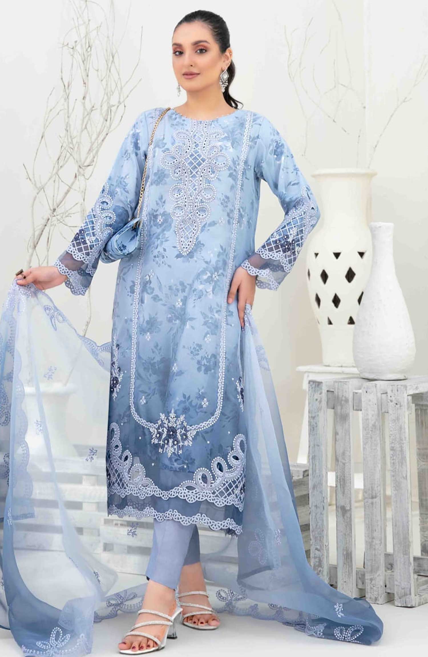 Home Yasna by Tawakkal Fabrics Embroidered Organza Unstitched 4 Piece - D 4033 - TF25Y - Blue - Festive Collection